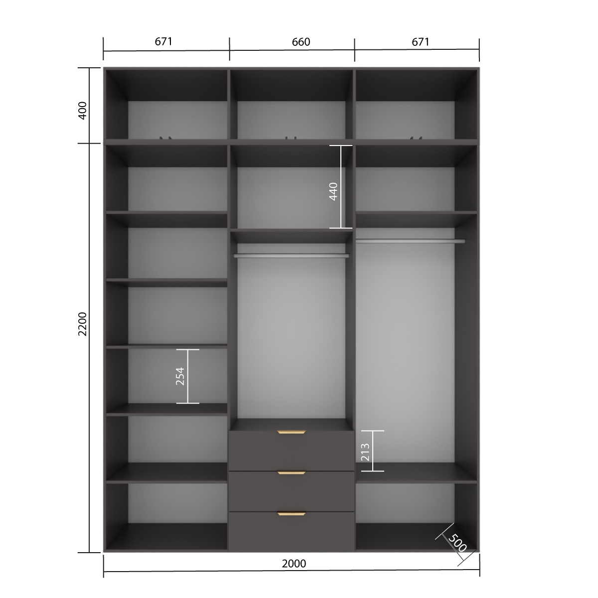 Набор Шкаф Фиеста + антресоль (Графит/Графит Софт) 2002*2600*500