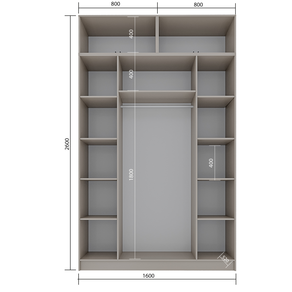 Размер: 1600х2200х520/1600х400х520