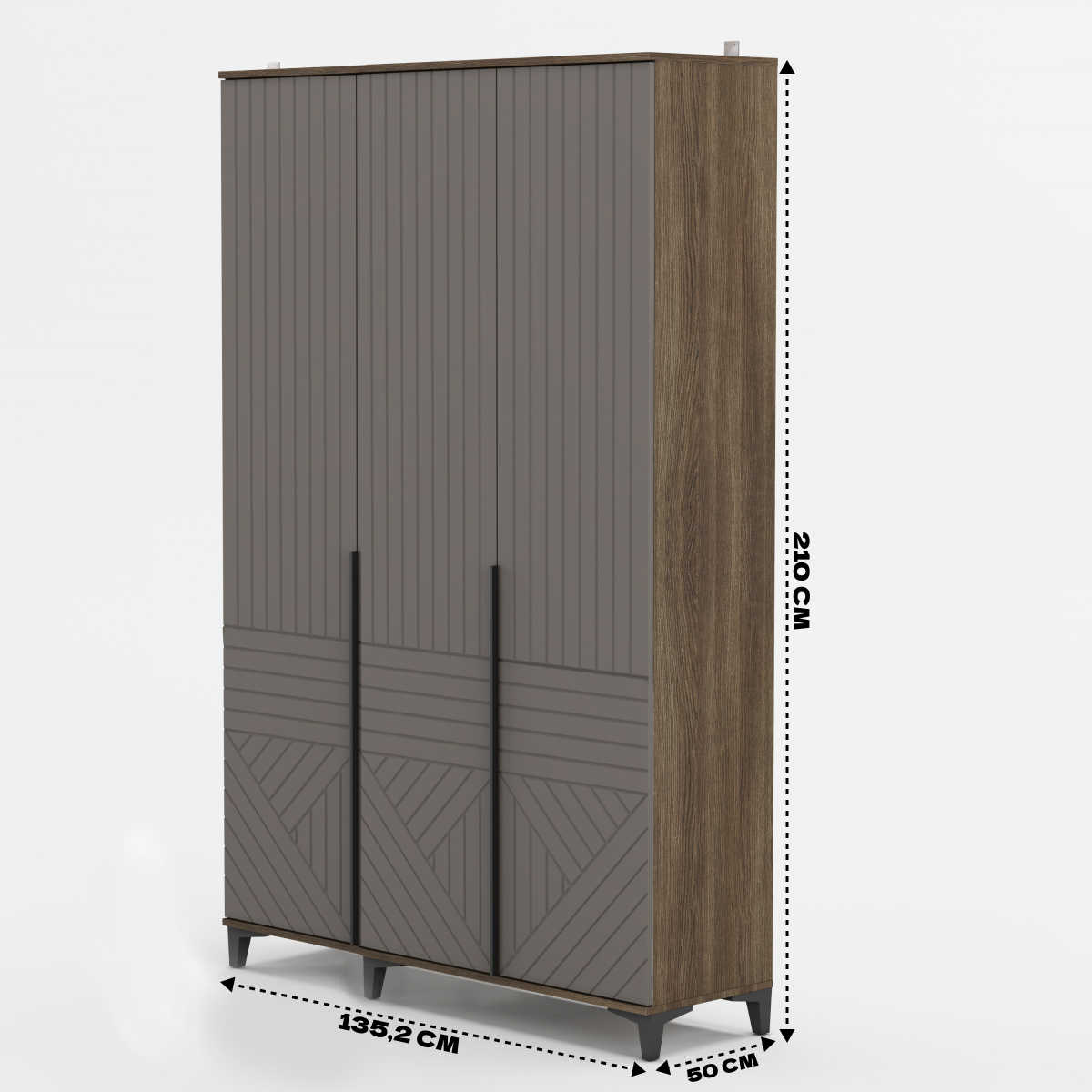Шкаф «Палау» имеет 3 створки, его размеры 1352х2100х500 (ШхВхГ). Эти размеры делают шкаф компактным, но в то же время вместительным. Корпус выполнен из ЛДСП, а фасад из МДФ, что обеспечивает прочность и долговечность конструкции. Шкаф имеет 10 полок, а также оснащен отсеком с длинной штангой для одежды, что позволяет эффективно организовать пространство для хранения. Придать современный и стильный вид Шкафу «Палау» помогает наличие металлических накладных ручка-профиль и пластиковые опоры в черном цвете.