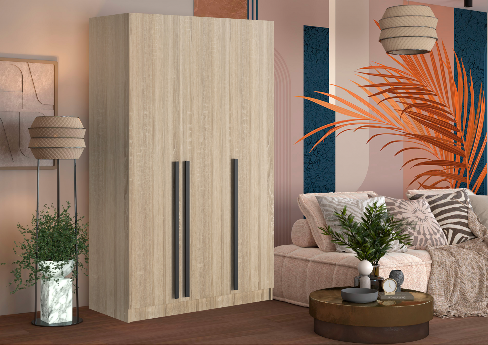 Шкаф Бостон 1200 трехстворчатый, выполнен в цвете Сонома. Распашной шкаф для одежды выполненн из практичного ЛДСП, предназначен для хранения одежды, обуви, головных уборов и аксессуаров. Для этого в шкафу имеется вместительное отделение с штангой и пятью практичными полками. Удлиненные ручки МДФ черного цвета придают оригинальности простому лаконичному дизайну шкафа. Инструкция и вся необходимая фурнитура предусмотрена в комплекте.