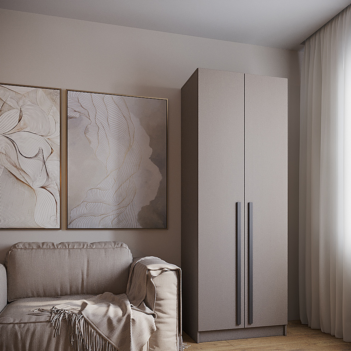 Шкаф Бостон 800*2200*520 (Бежевый / Глиняно серый)