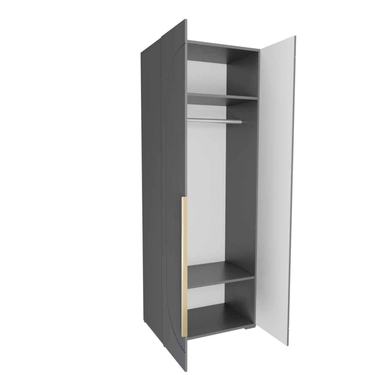 Шкаф Фиеста 80 см в цвете графит с фасадами из МДФ и корпусом из прочного ЛДСП – идеальное решение для организации хранения в спальне или прихожей. Этот вместительный распашной шкаф с габаритами 80,2х220×50 см предлагает оптимальное сочетание элегантного дизайна и практичной функциональности.