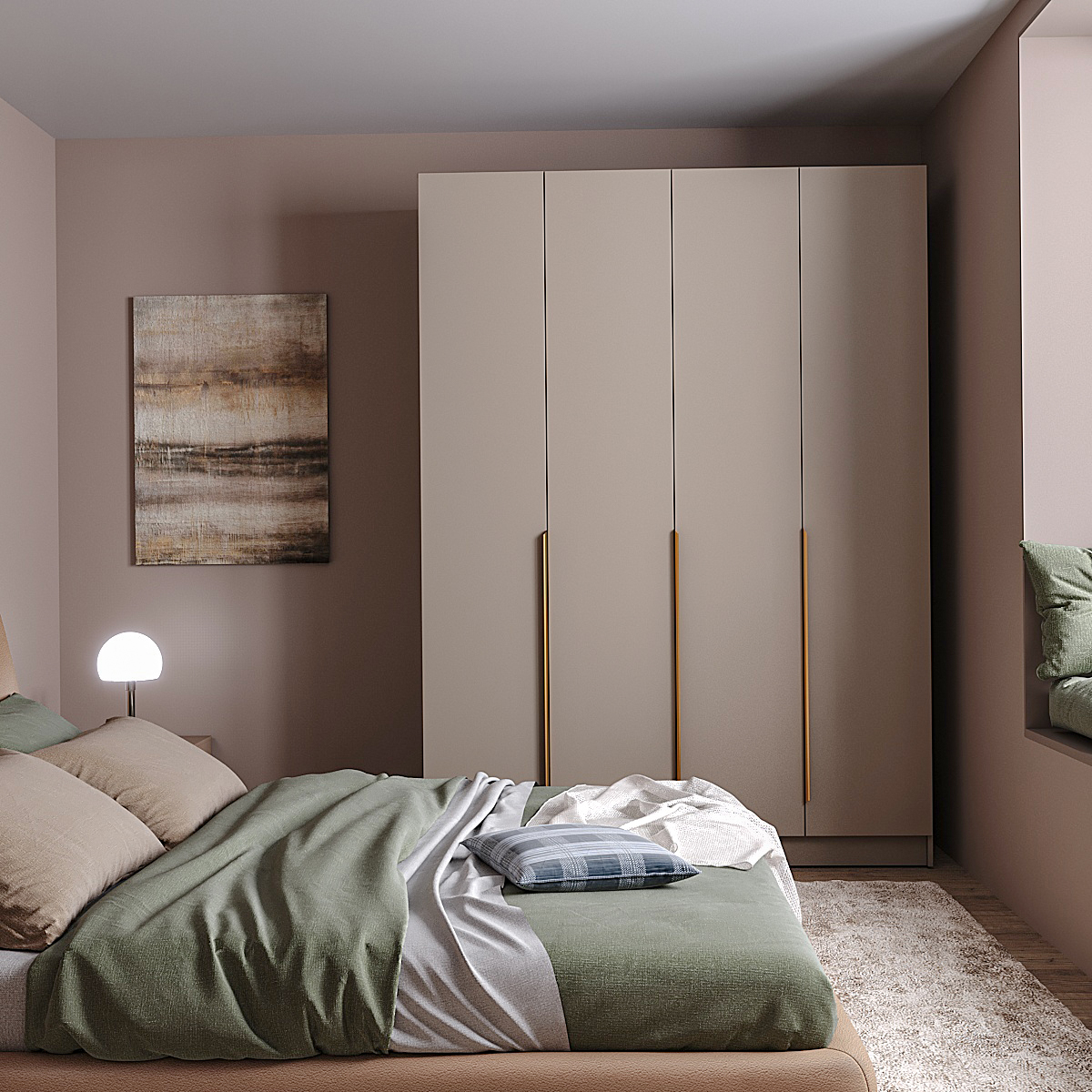Шкаф Голд Бостон 1600 четырехстворчатый, выполнен в Бежевом (Глиняный Серый) цвете. Распашной шкаф для одежды выполненн из практичного ЛДСП, предназначен для хранения одежды, обуви, головных уборов и аксессуаров. Для этого в шкафу имеется вместительное отделение с штангой и деветью практичными полками. Удлиненные металлические профиль ручки (3 шт) в золотом цвете придают оригинальность и эстетичность простому лаконичному дизайну шкафа. Размеры шкафа: 1600х2200х520 (ШхВхГ). Инструкция и вся необходимая фурнитура предусмотрена в комплекте.
