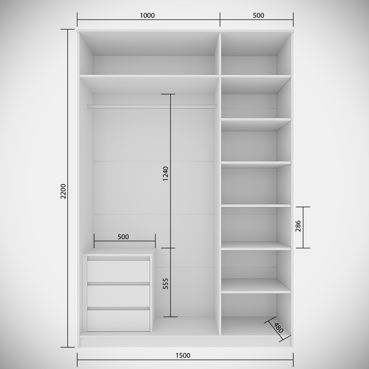 Шкаф распашной Мика 1500 с ящ. внутри (Белый) 1500х2200х480