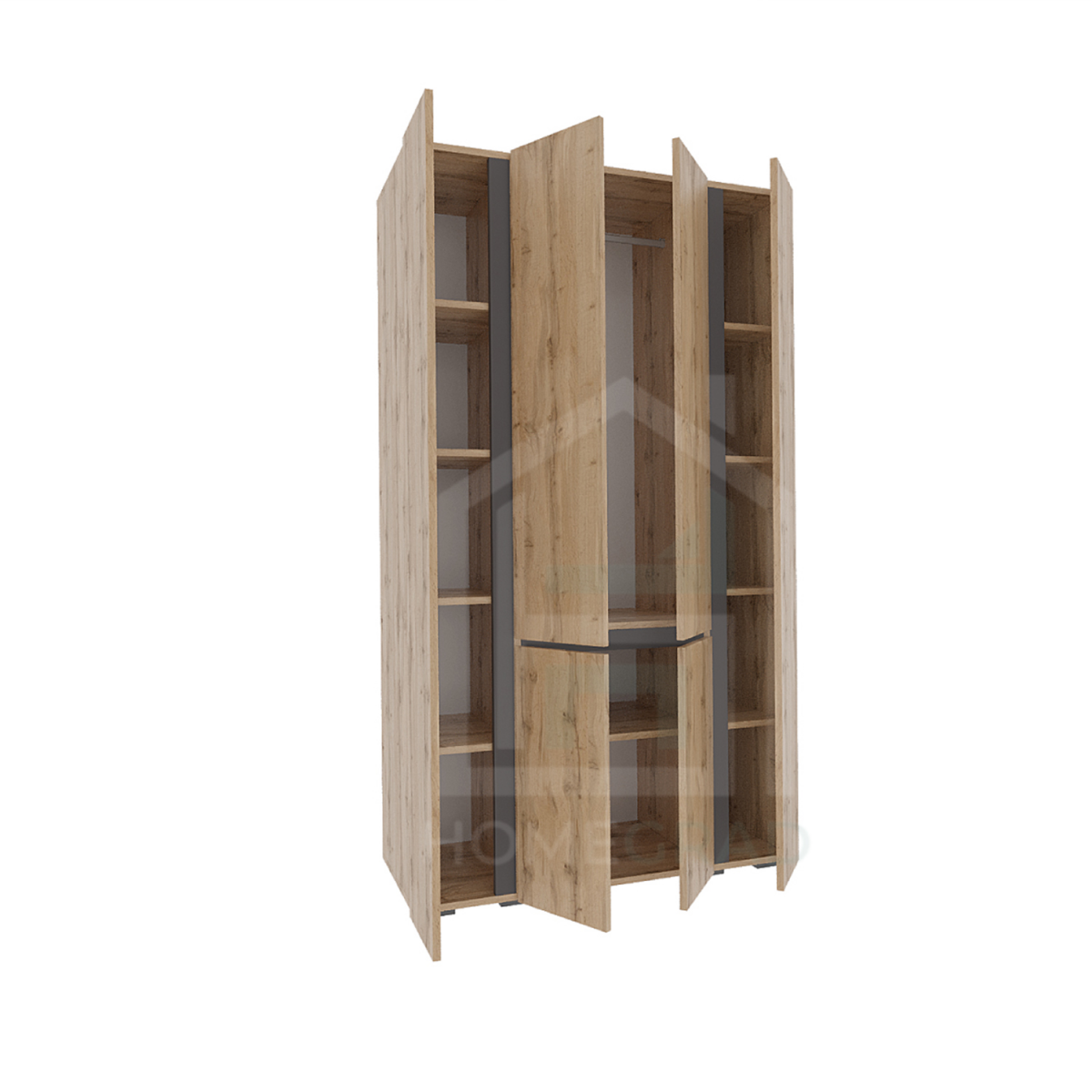 Распашной четырехстворчатый шкаф "Сура2", оснащен одним выдвежным ящиком, а выполнен в цвете Дуб Вотан с вставка цвета Графит. Отлично подойдет для одежды и белья. За распашными дверцами штанга и 4 полки, в нижней части шкафа распологается вместительный ящик. Выдвижной ящик оснащен шариковыми направляющими. Размеры шкафа 1200х2100х480(ШхВхГ). Шкаф выполнен из прочного и качественного материала - ЛДСП. Соединение элементов мебельной конструкции с помощью эксцентриков. Штанга — хром овал для плечиков. На фасадах ящиков отсутствуют ручки, функцию ручек выполняет фасад.