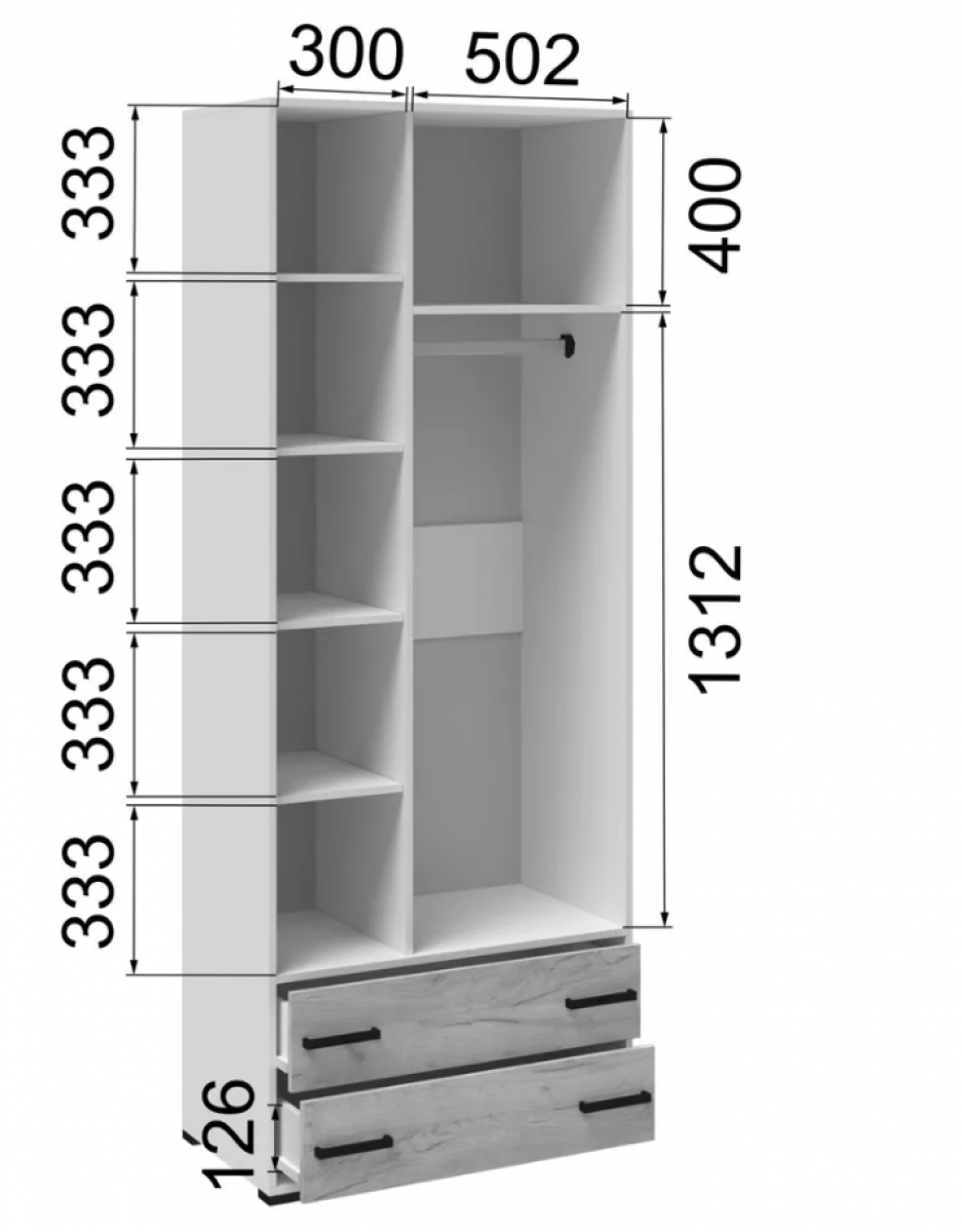 Двустворчатый распашной шкаф из подростковой серии "Лючия" представляет из себя комбинированные секции с различным назначением. Он имеет в своем составе: два нижних выдвижных ящика для хранения вещей и белья, секцию с пятью удобными полками за распашной дверцей, платяная секция с большой верхней полкой и металлической штангой для одежных вешалок. Шкаф Лючия изготовлен из надежного материала - ЛДСП, что гарантирует долговечность при сохранении внешнего вида и легкого ухода за мебелью. Выдвижные ящики оснащены роликовыми Boyard / Marshall направляющими. Шкаф выполнен в двух современных оттенках - Белый и Ателье светлое. Размер шкафа: 850х2200х450 (ШхВхГ). Инструкция и вся необходимая фурнитура предусмотрена в комплекте.