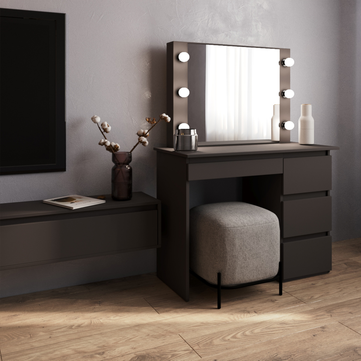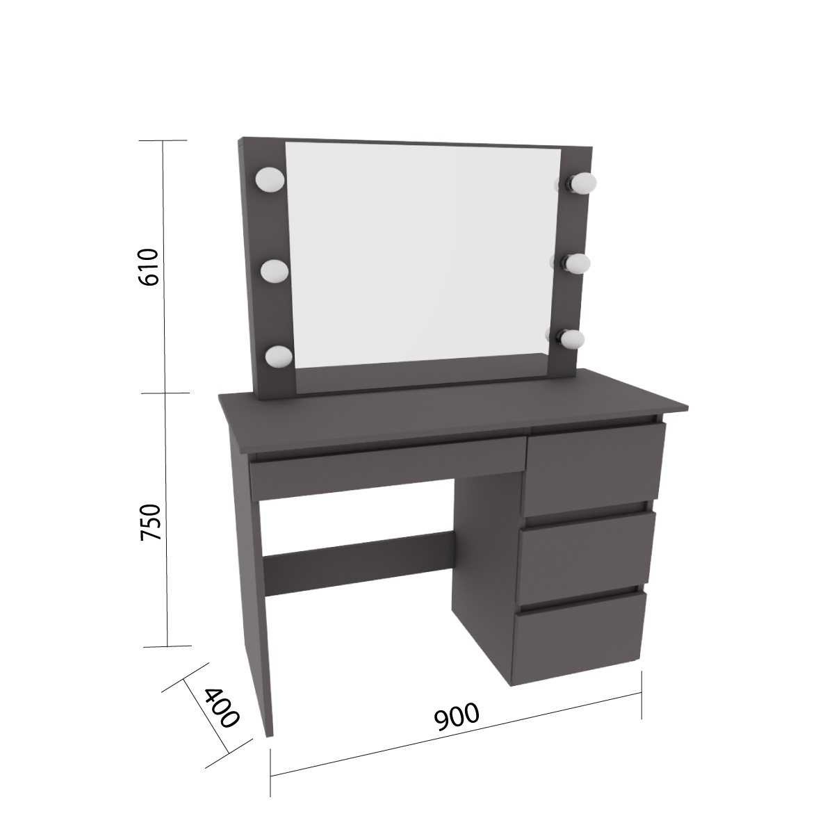 Стол косметический с подсветкой Сура 900х1360х400 Графит