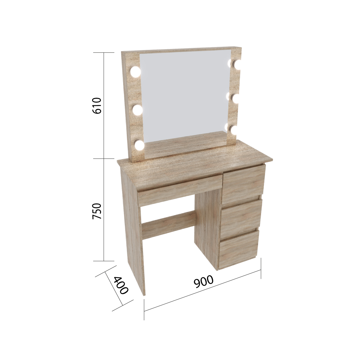 Стол косметический с подсветкой Сура 900х1360х400 Сонома