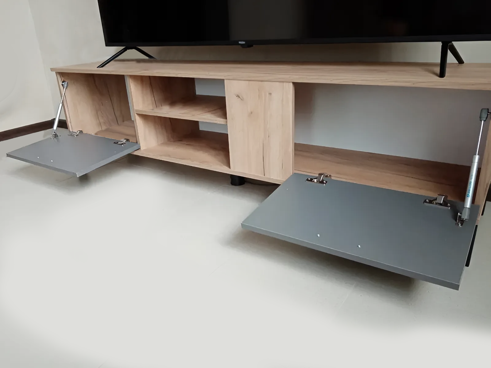 Тумба ТВМ-5 под ТВ выполнена в современных оттенках дуб крафт золотой, графит, имеет распашные дверки. Тумба позволяет хранить различные аксессуары, кабели, документы внутри ящика и за дверками, что помогает сохранять визуальную чистоту и порядок в гостиной комнате. Тумба выполнена под дерево из качественного ЛДСП. Тумба ТВМ 5: ножки - опоры пластиковые черного цвета , ручки металлическая черные. Максимальная распределенная нагрузка на верхнюю крышку тумбы - не более 15 кг. выполнен из качественного материала - ЛДСП «Kronospan».
