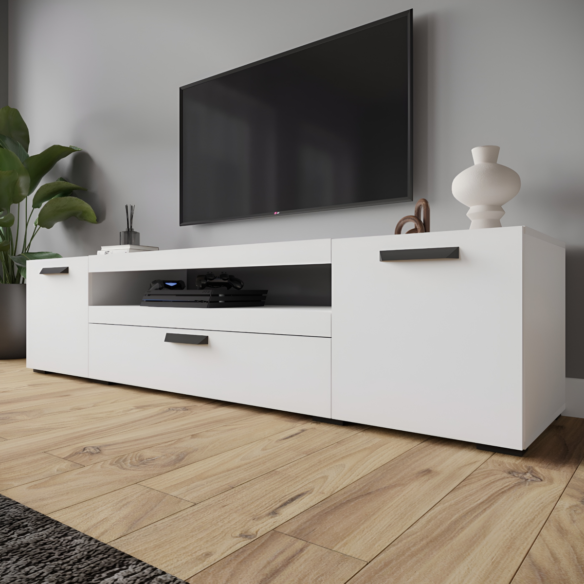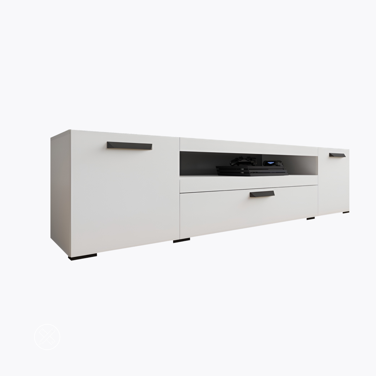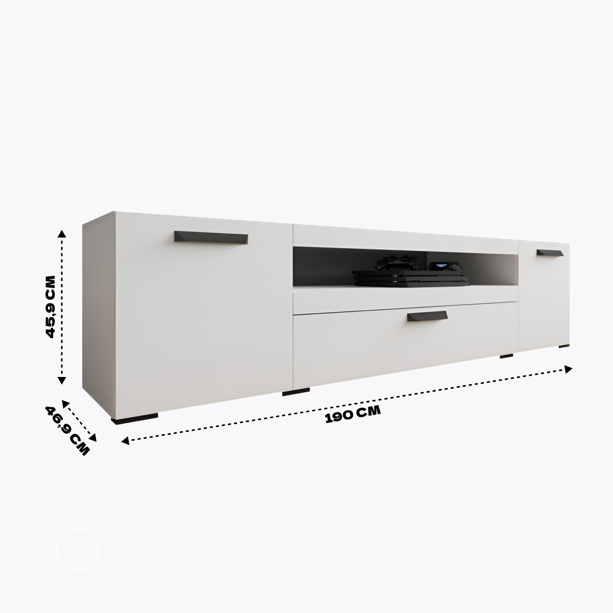 Тумба ТВМ-8 предоставляет не только площадку для размещения вашего телевизора, но также оборудована ящиком и полками, что делает ее отличным выбором для хранения различных мультимедийных устройств, дисков, пультов дистанционного управления и других предметов. Изготовленная из качественного ЛДСП с тиснением «Древесные поры» от «Kronospan», тумба имеет кромку 0,4 мм. Тумба ТВМ - 8 представлена в Белом цвете, оснащена просторной столешницей, на которой вы сможете разместить свой телевизор, а также отделами с дверками и выдвижным ящиком для хранения ваших аксессуаров, журналов и других мелочей. Максимальная распределенная нагрузка на верхнюю крышку тумбы составляет не более 15 кг. Особенностью тумбы является наличие полки, что добавляет ей функциональности и удобства использования. Размеры тумбы: 459х1900х469 мм. Вес тумбы составляет 50 кг. Тумба ТВМ-8 оснащена металлическими петлями и роликовыми направляющими от Gelony/Marshall. Они обеспечивают плавное и бесшумное открывание ящиков. Инструкция и вся необходимая фурнитура предусмотрена в комплекте.