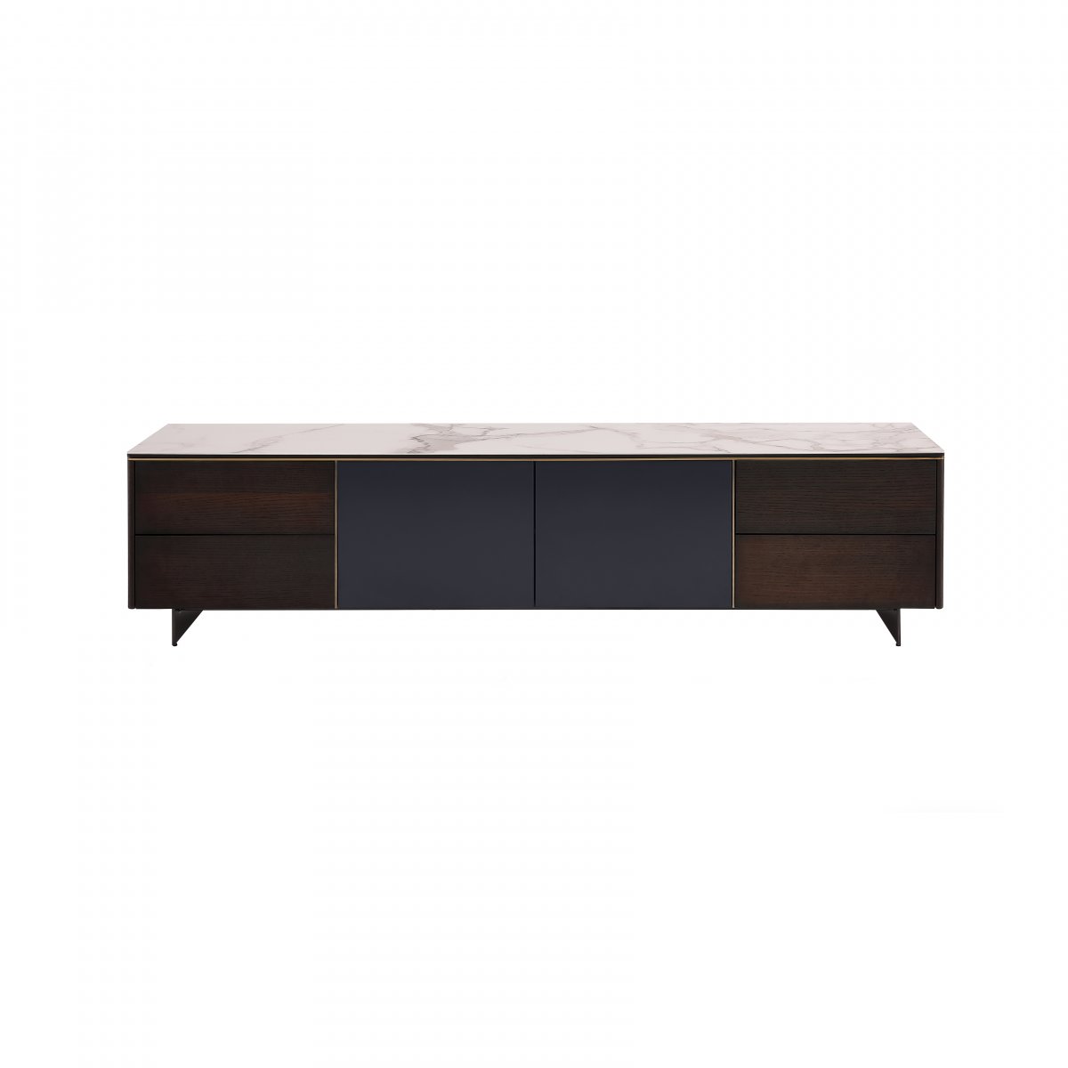 В мире, где размеры телевизоров постоянно растут, мы создали тумбу нового формата. Ее главные принципы — удлиненный силуэт и приземистая высота. Такая конструкция гарантирует безупречную и безопасную установку любого, даже самого большого современного телевизора — на поверхность или на стену над ней.