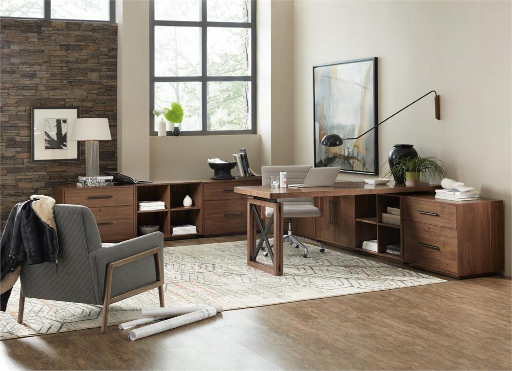 Интересное офисное кресло, выполненное в современном стиле. Такое кресло несомненно сумеет вписаться практически в любой интерьер и станет его отличным дополнением. Основание кресла, как и подлокотники, изготовлено из дерева, для обивки используется ткань. Деревянные подлокотники частично обиты тканью, и такой прием придается креслу особый шик. Кресло оснащено роликами и регулируется по высоте.