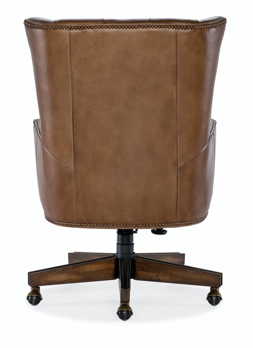 Шикарное офисное кресло, выполненное в традиционном стиле. Основание кресла выполнено из темного дерева, материал обивки - кожа. Кресло дополнительно декорировано пуговицами - ими украшена спинка, и аккуратными гвоздиками. Такое кресло несомненно сумеет не просто вписаться практически в любой интерьер, но и станет его настоящим украшением. Оснащено роликами.