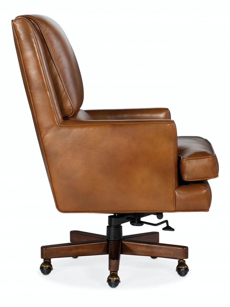 Прекрасное офисное кресло, выполненное в классическом традиционном стиле. Элегантная сдержанность исполнения позволит креслу гармонично вписаться практически в любой интерьер и стать его отличным дополнением. Деревянная основа отлично сочетается с кожаной обивкой. Кресло оснащено роликами и регулируется по высоте. Отличное приобретение для тех, кто ищет стильные решения для своего дома.