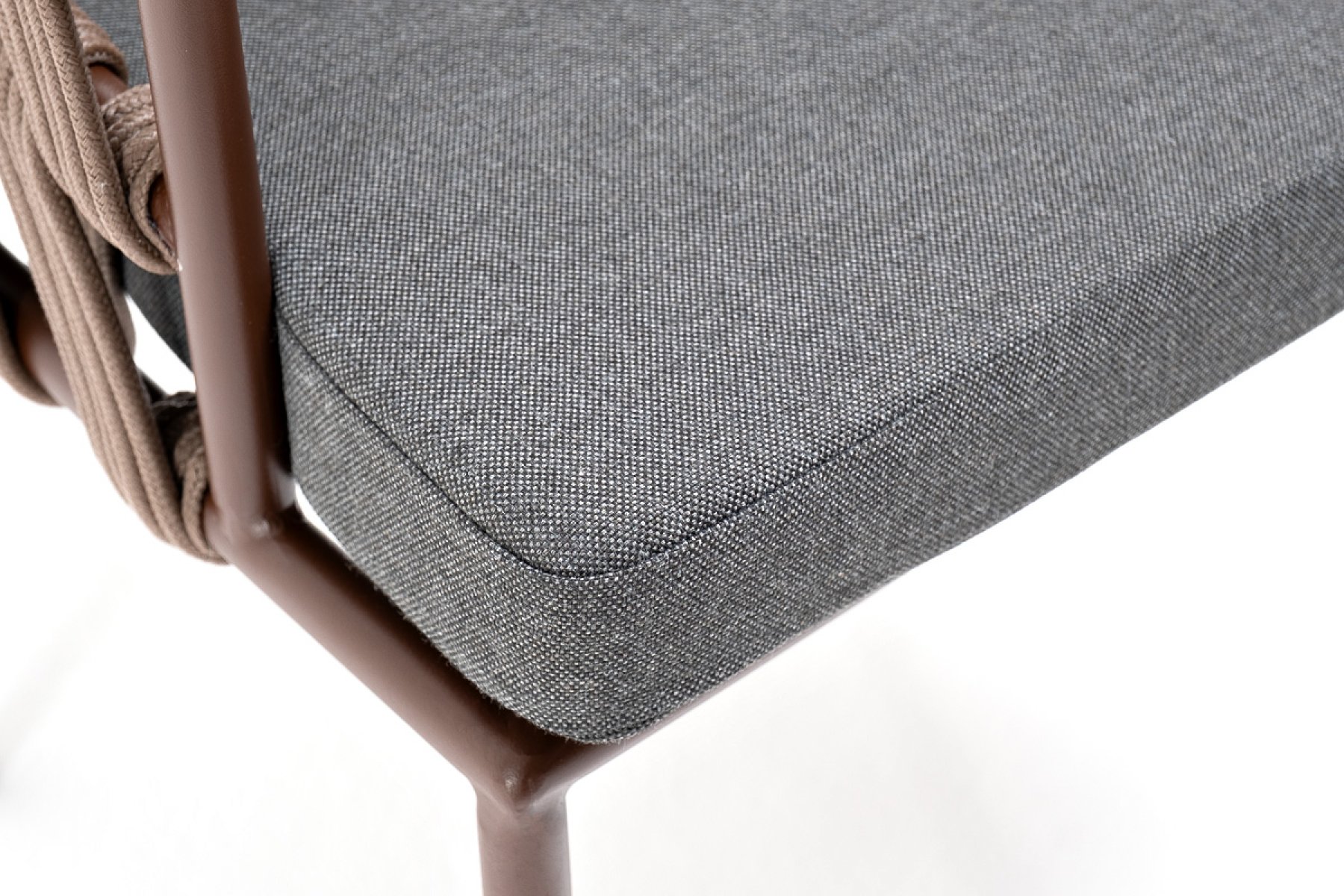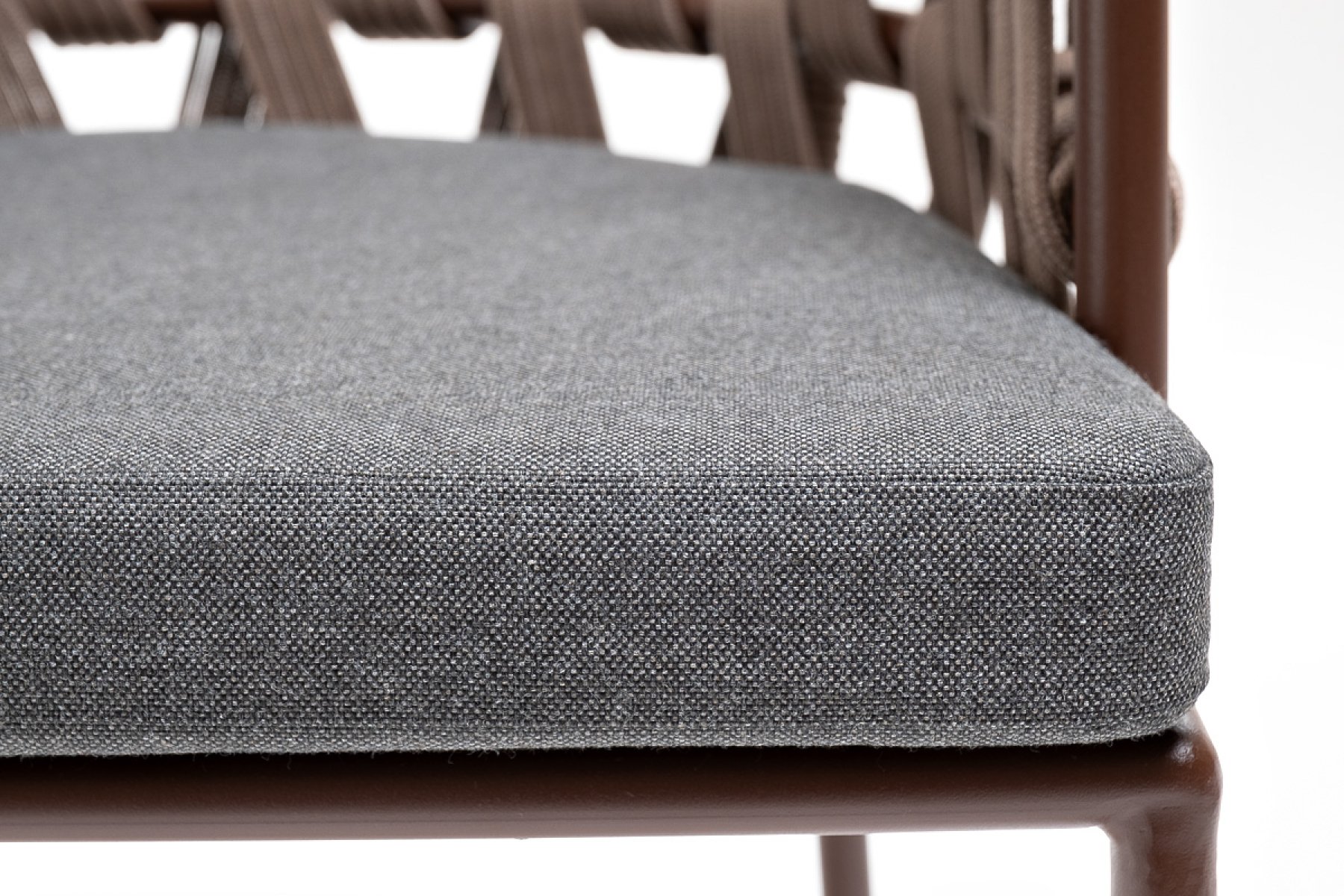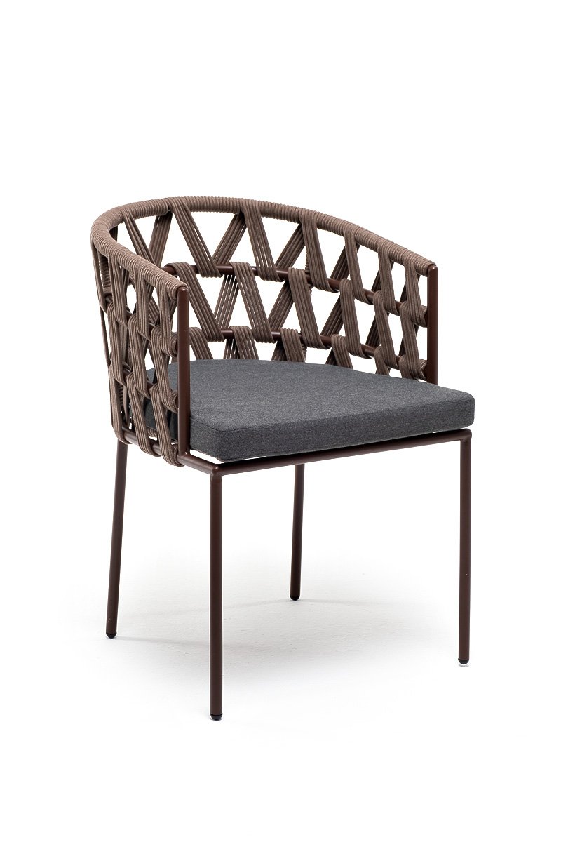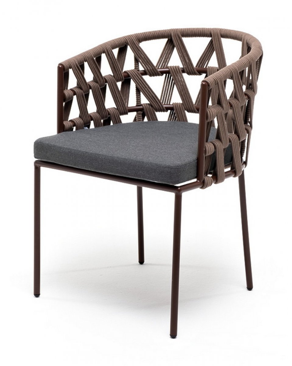 Диего стул плетеный из роупа, каркас из стали коричневый (RAL8016) муар, роуп коричневый круглый, ткань серая
