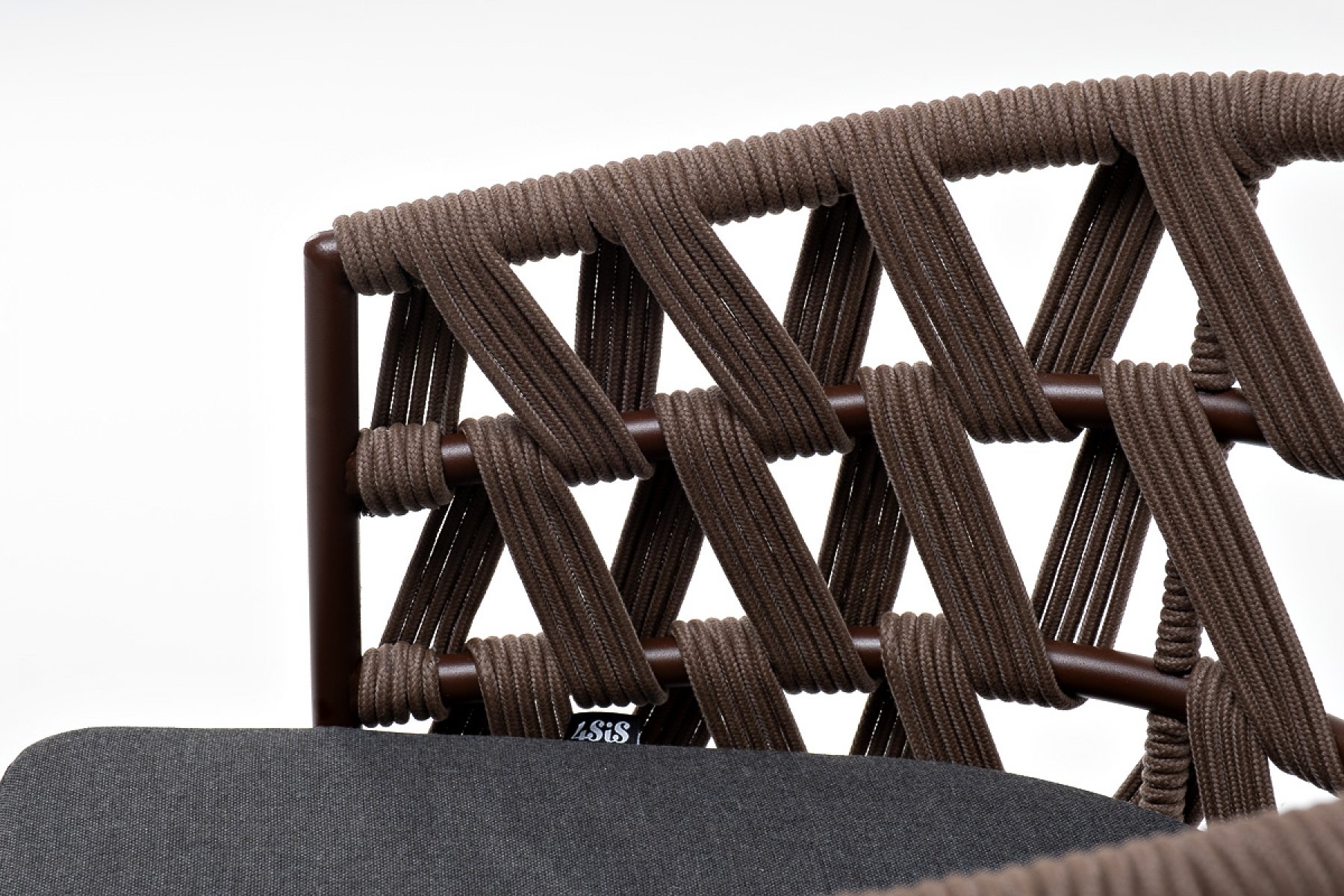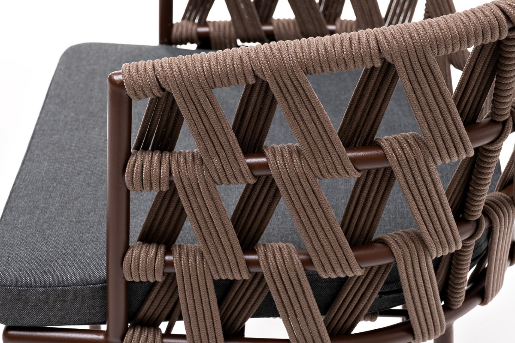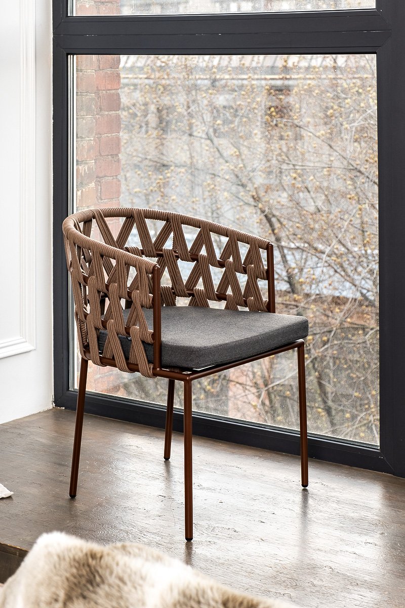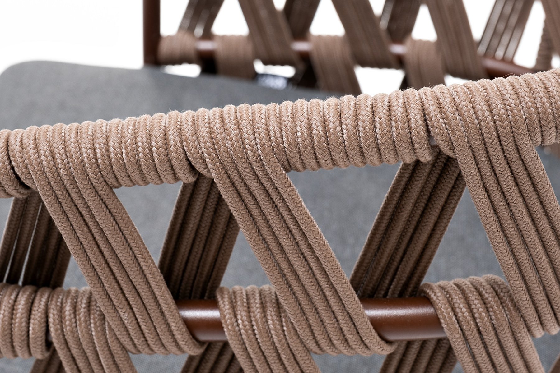 Диего стул плетеный из роупа, каркас из стали коричневый (RAL8016) муар, роуп коричневый круглый, ткань серая