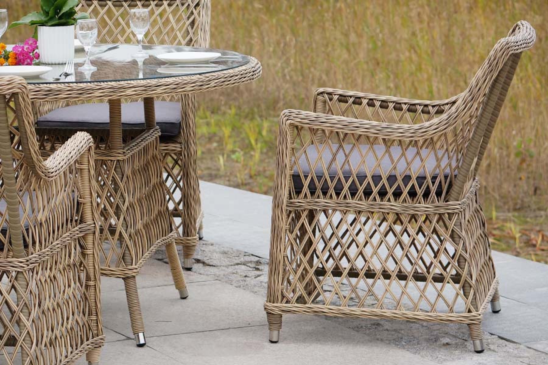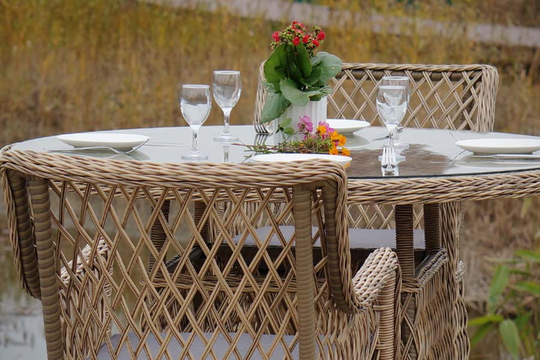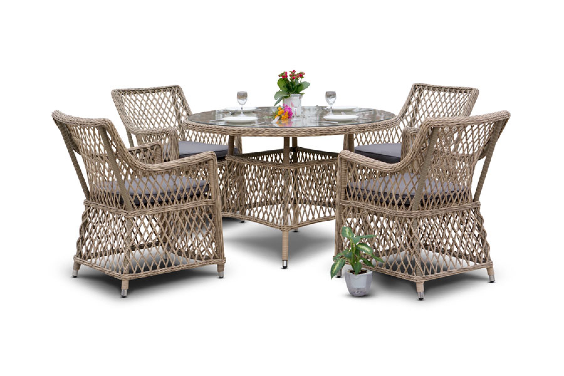 Доппио обеденная группа плетеная, цвет соломенный