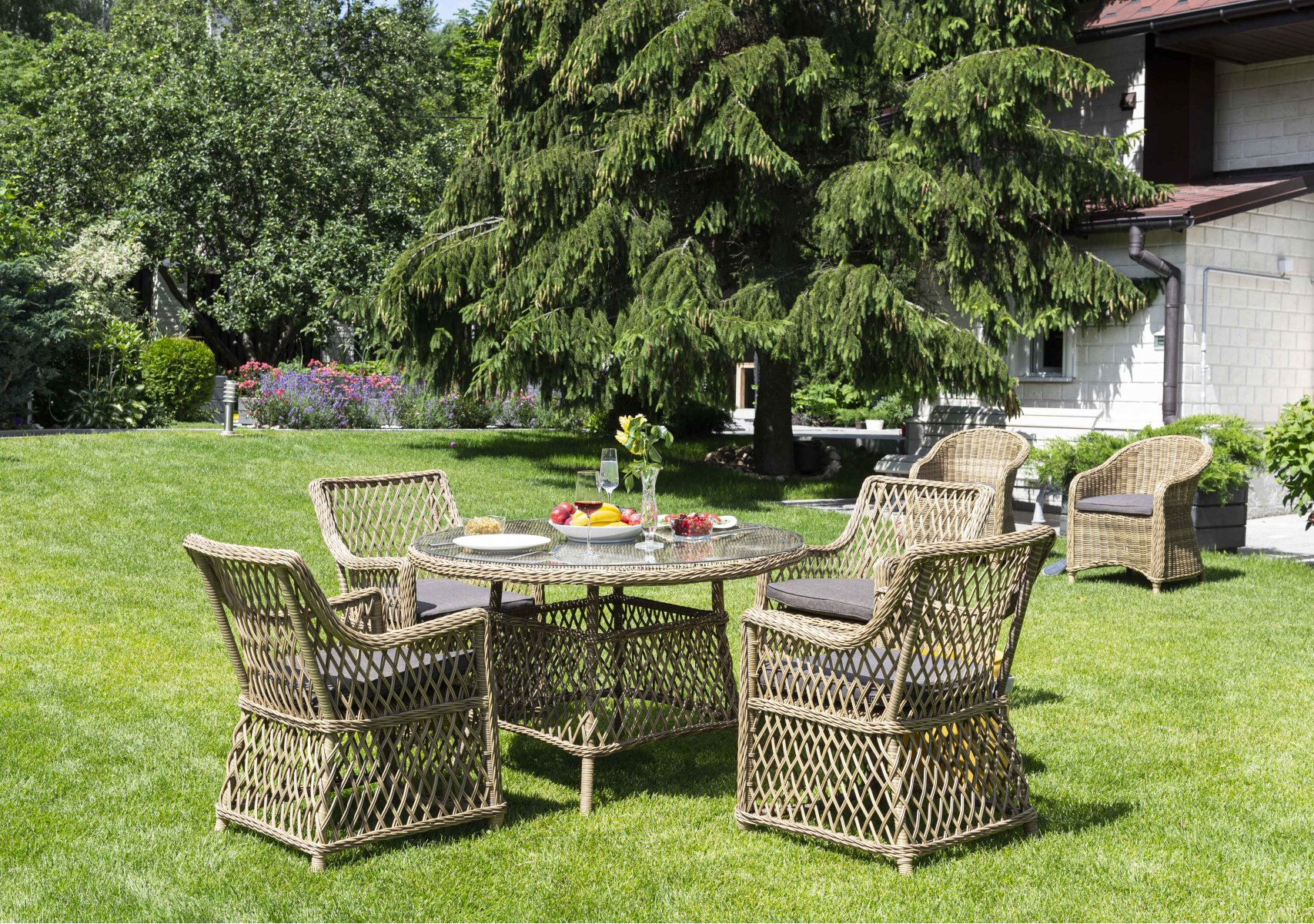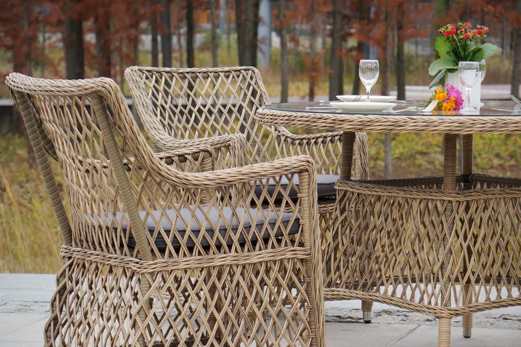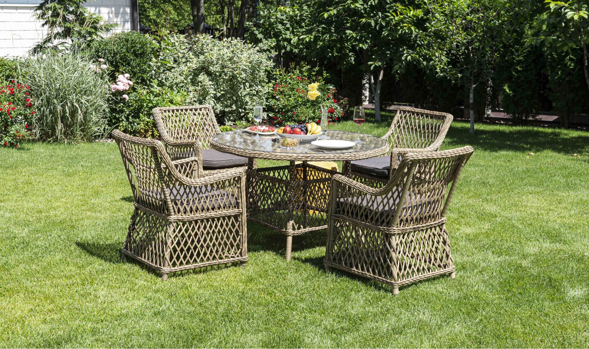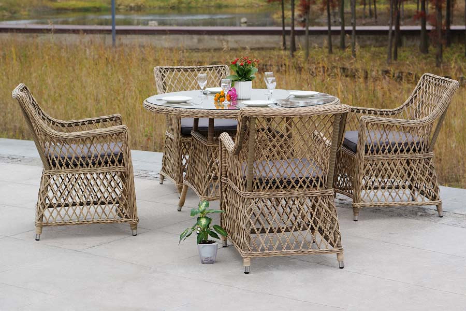 Доппио обеденная группа плетеная, цвет соломенный