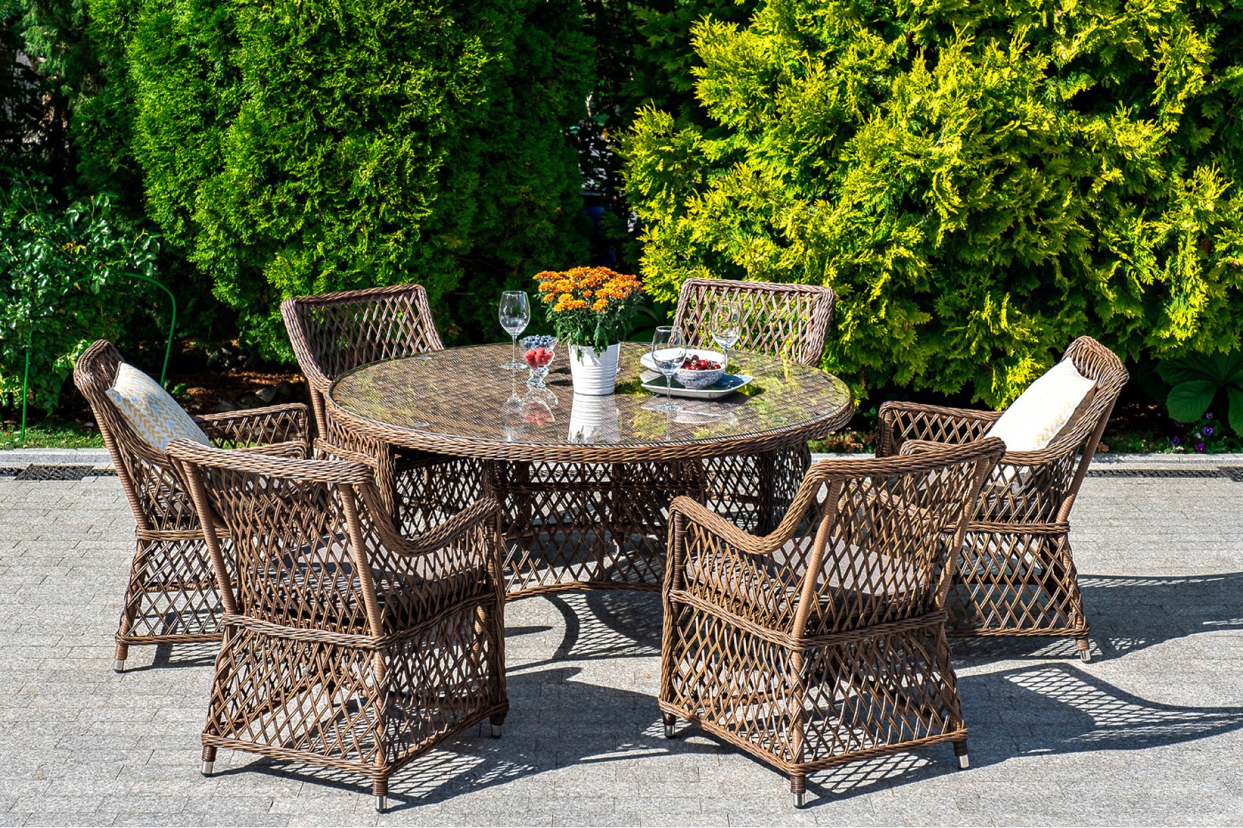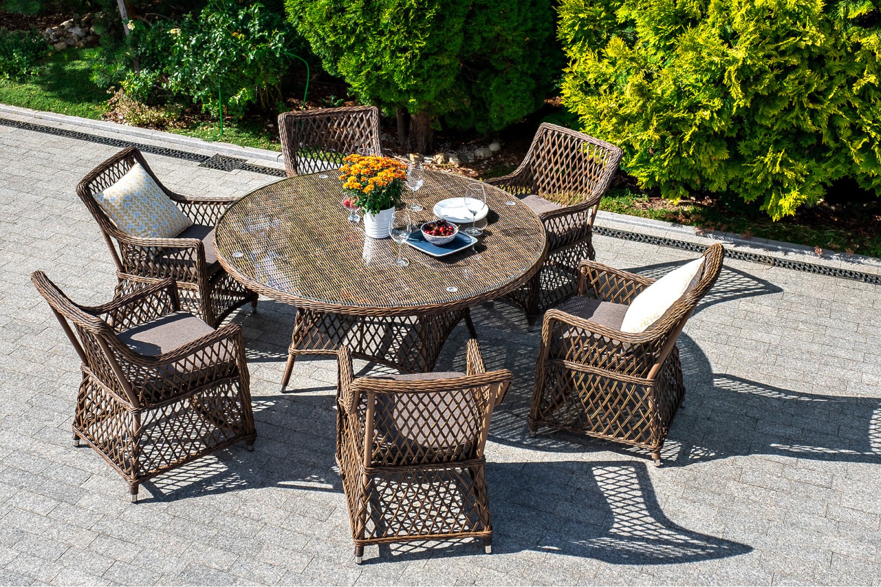 Эспрессо плетеный круглый стол, диаметр 150 см, цвет коричневый