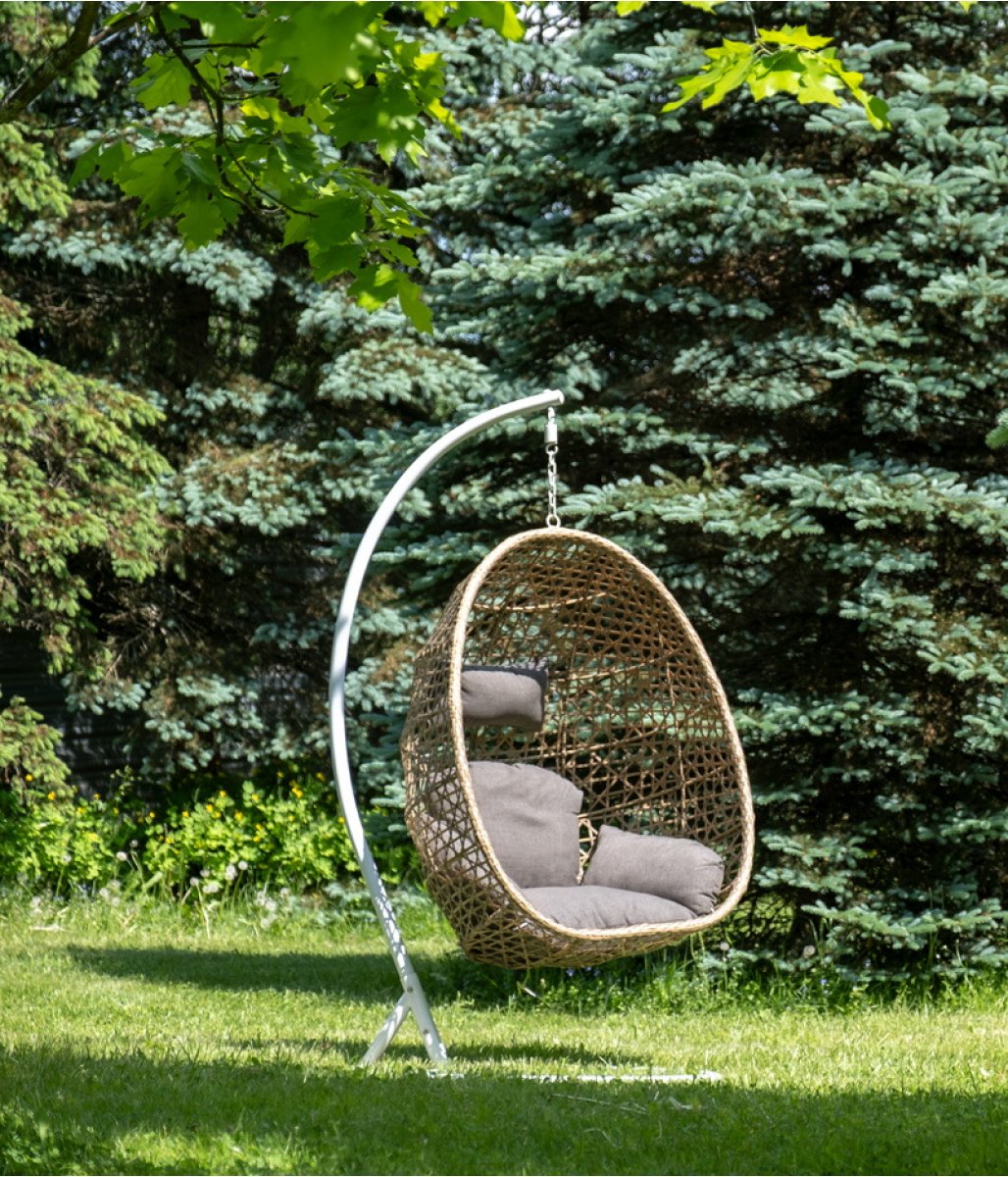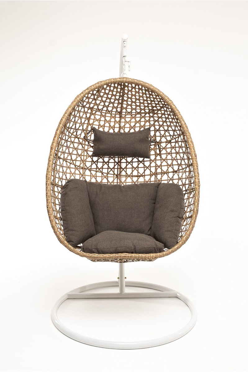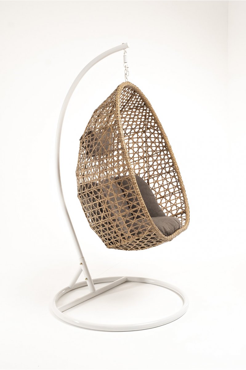 Флоренция подвесное кресло-кокон из искусственного ротанга, цвет соломенный с серой подушкой