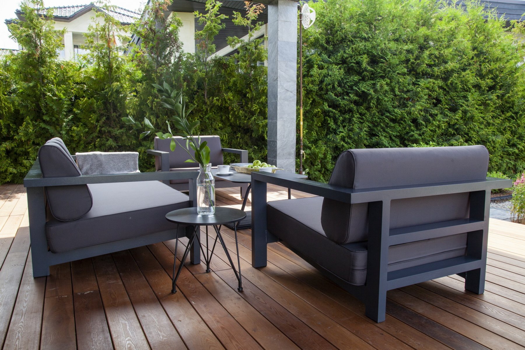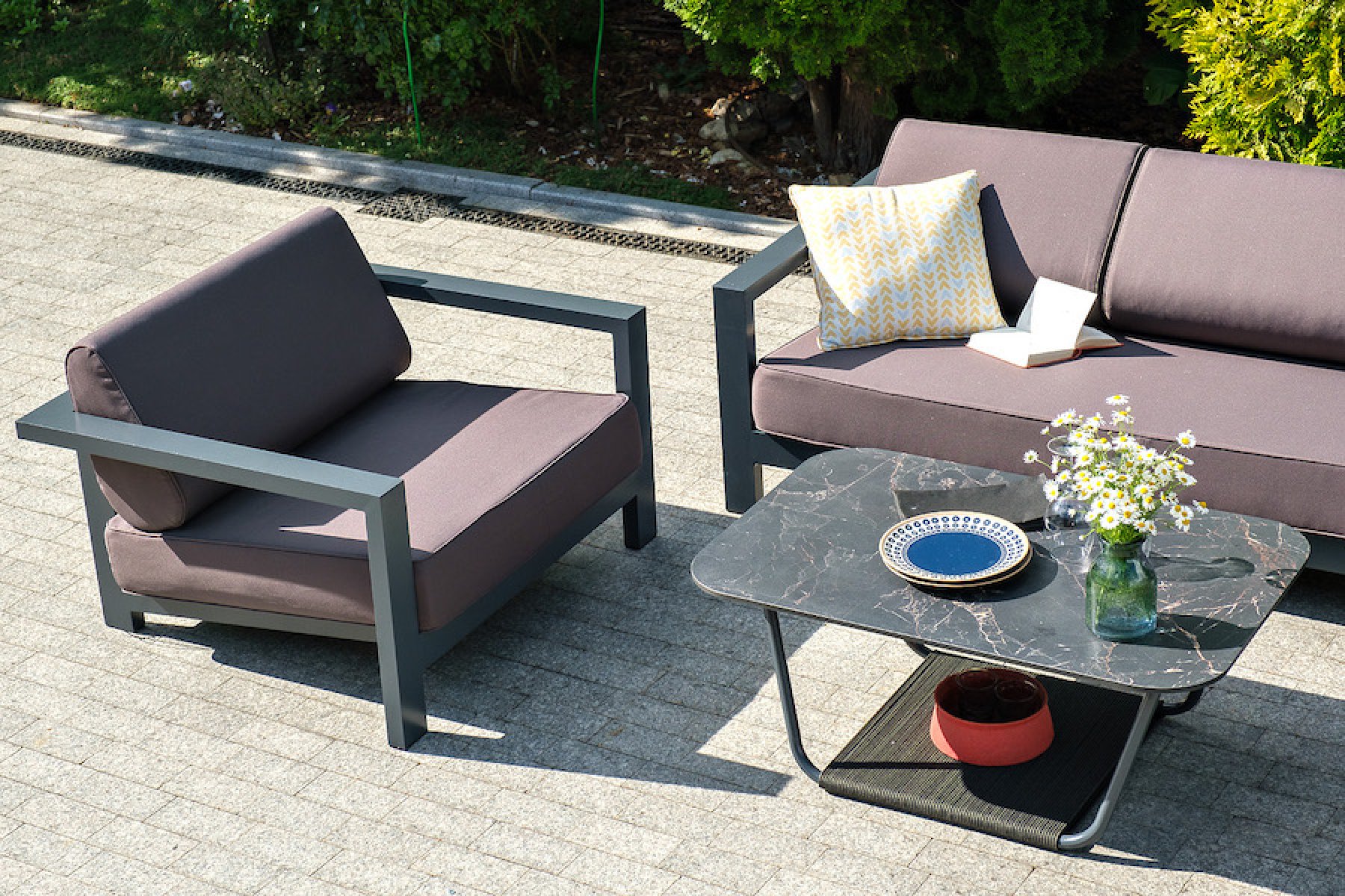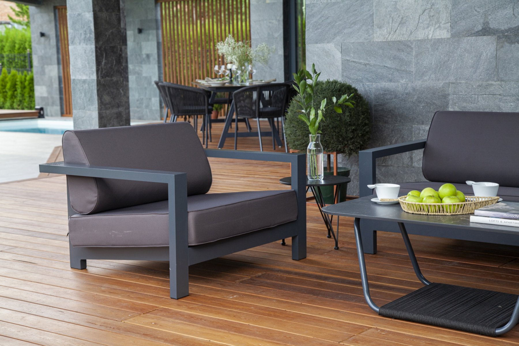 Гранада кресло алюминиевое, цвет темно-серый (RAL7024) муар, ткань темно-серая 027
