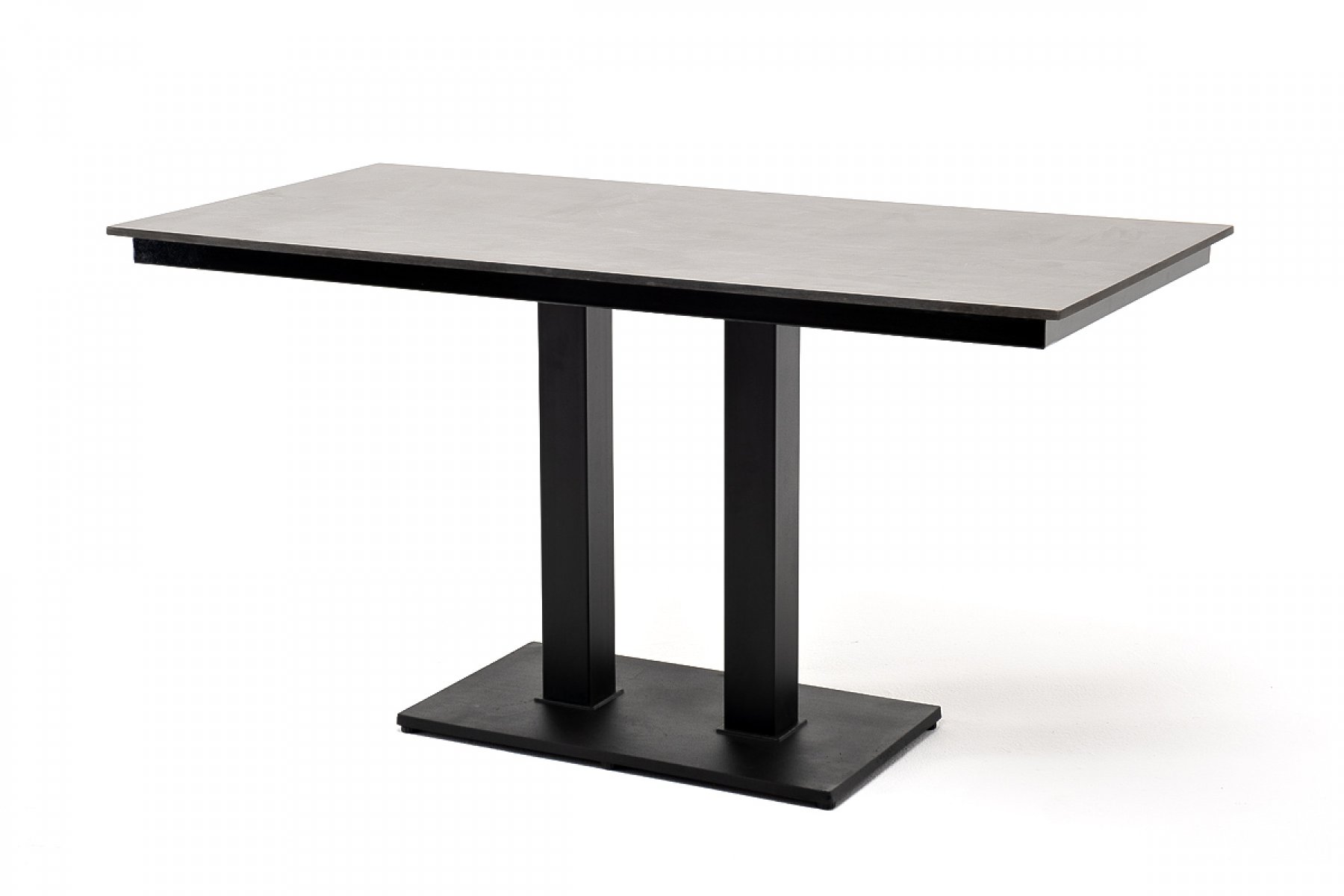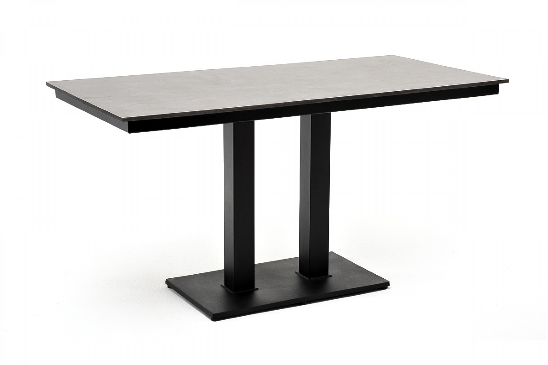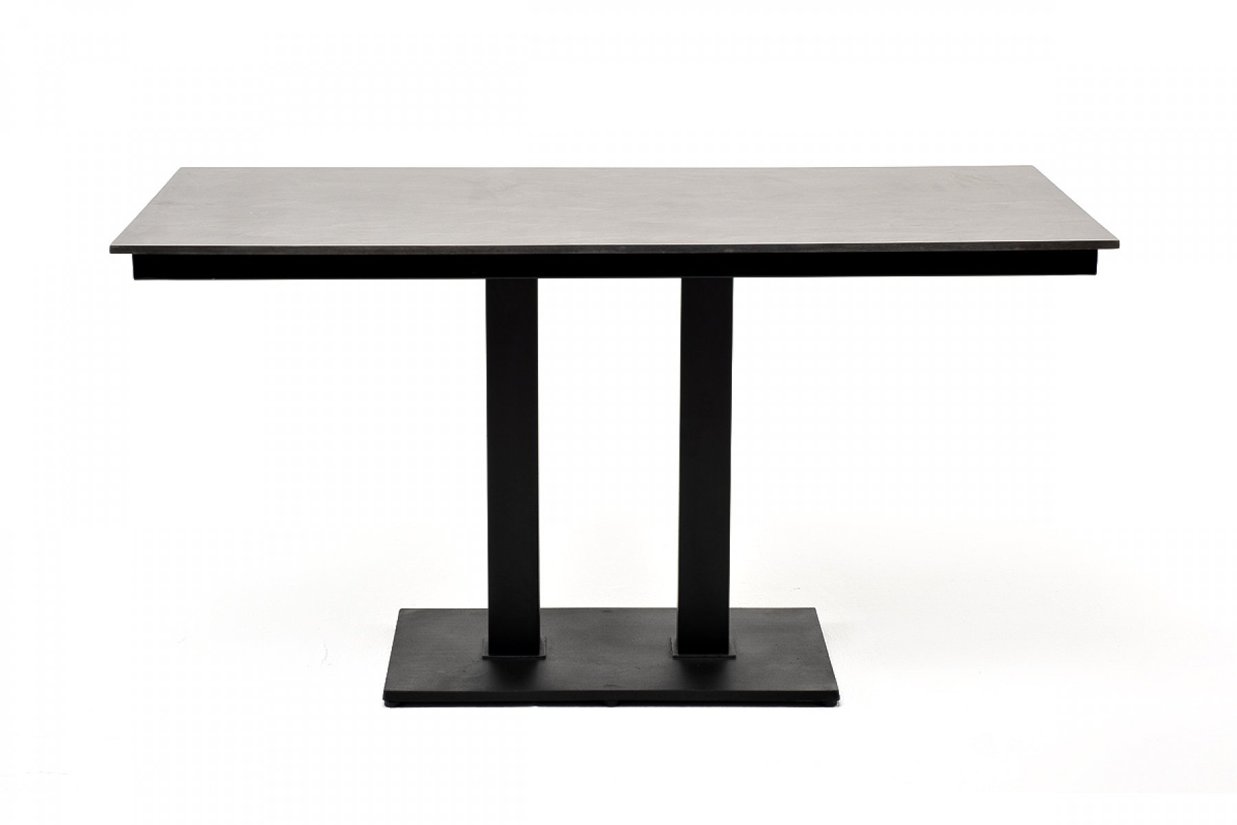 Каффе интерьерный стол из HPL квадратный 140х70см, цвет серый гранит, подстолье двойное черное чугун