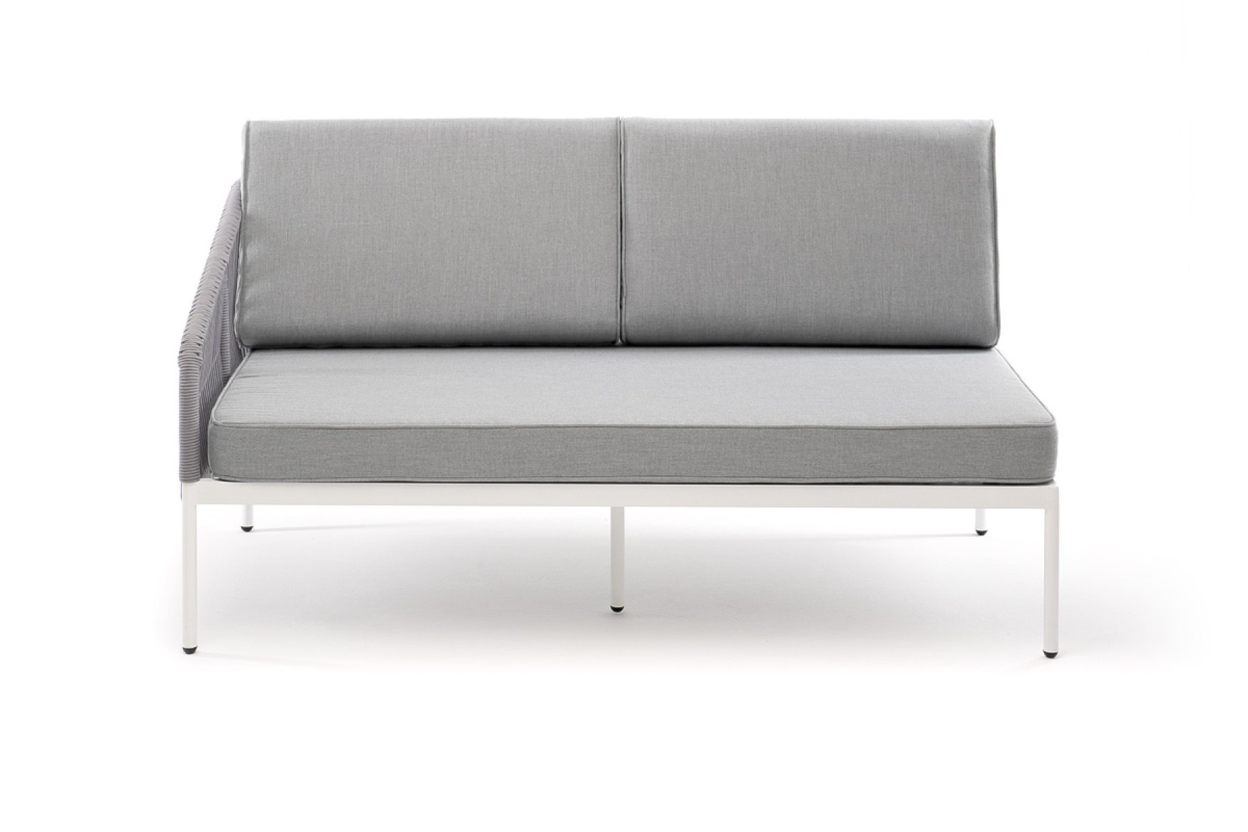 Канны правый модуль плетеный из роупа, каркас алюминий светло-серый (RAL7035) шагрень, роуп серый круглый, ткань серая 017