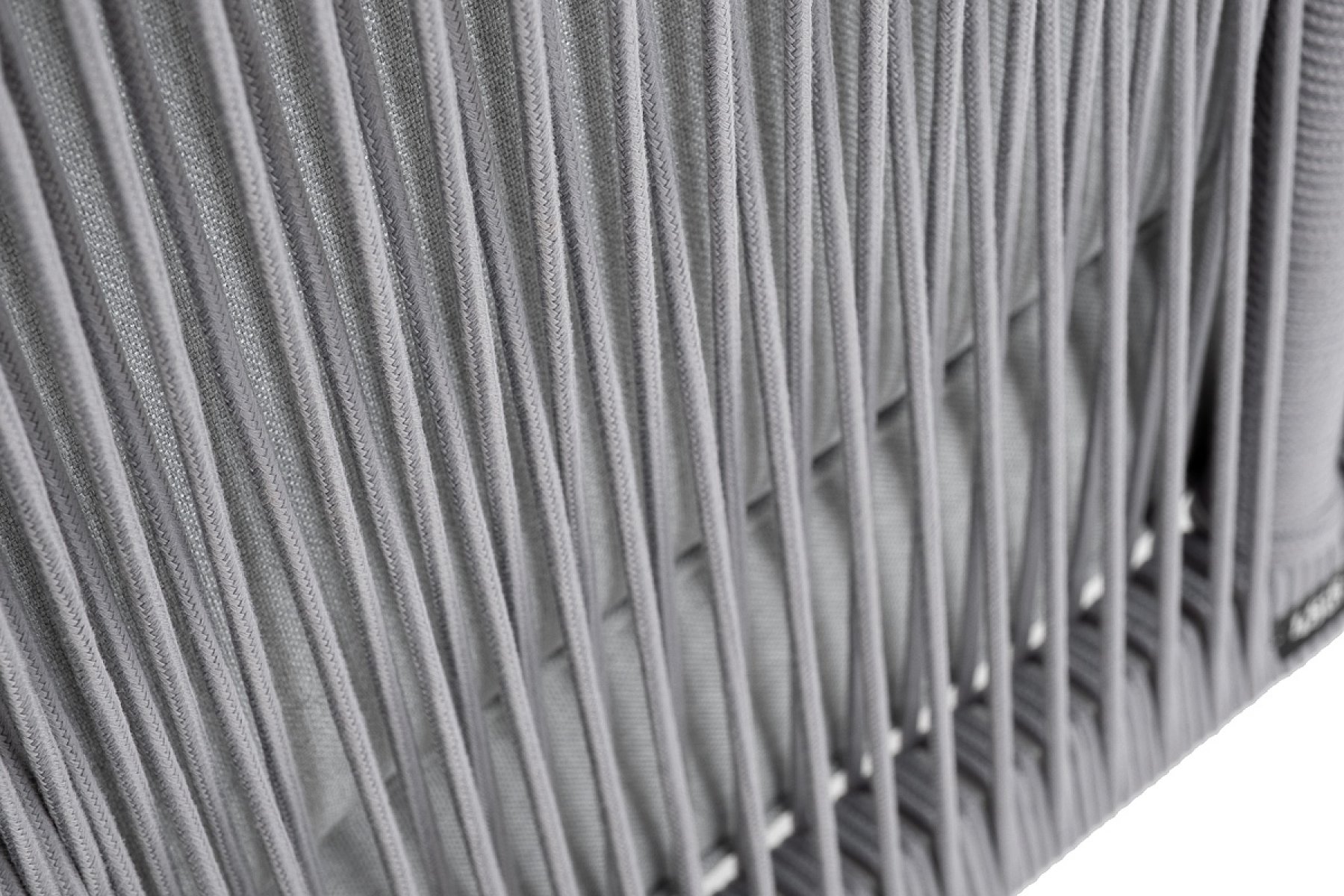 Канны угловой модуль плетеный из роупа, каркас алюминий белый шагрень, роуп светло-серый круглый, ткань светло-серая