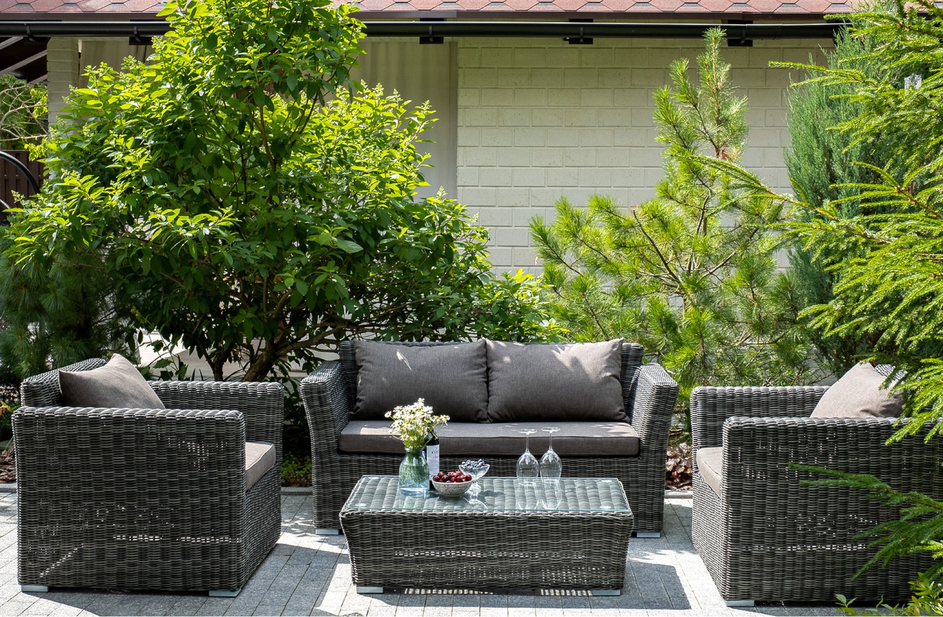 Капучино диван из искусственного ротанга двухместный, цвет графит