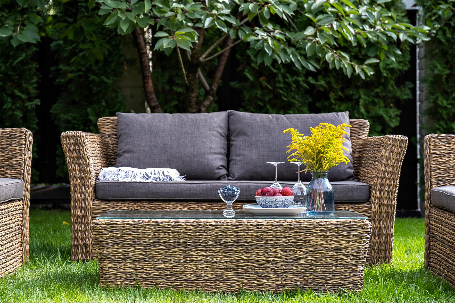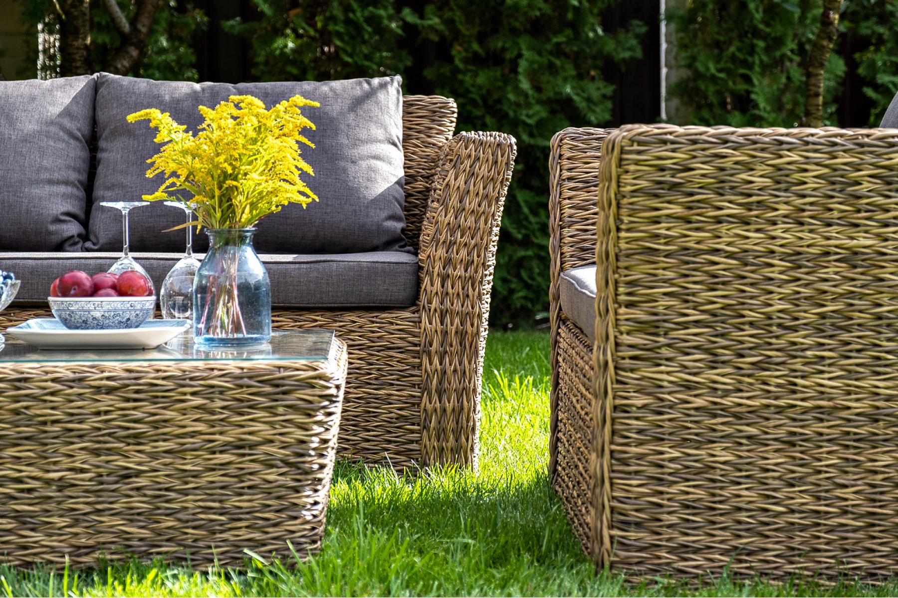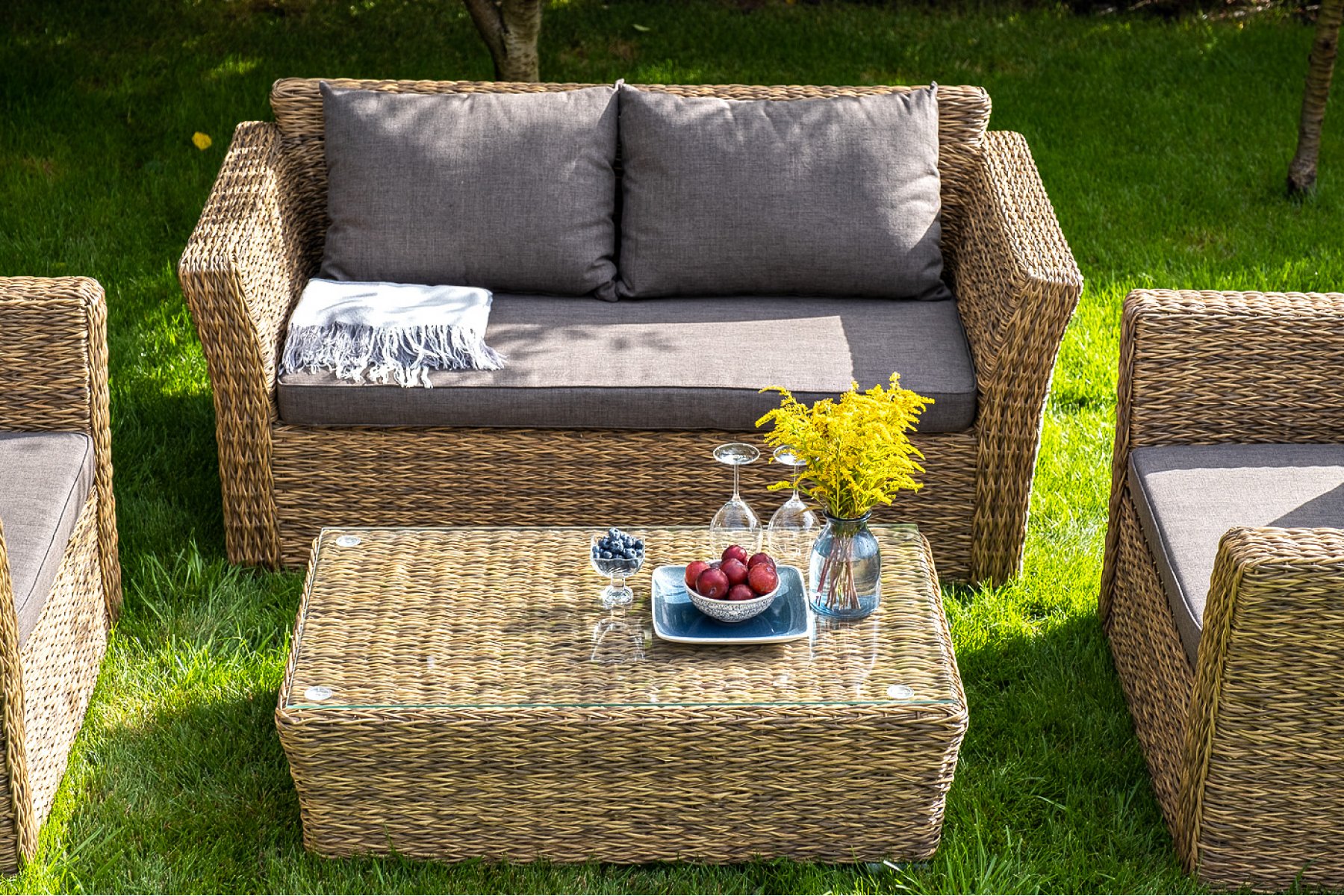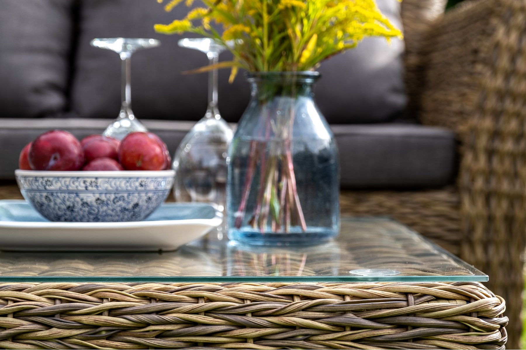 Капучино журнальный столик из искусственного ротанга (гиацинт), цвет соломенный