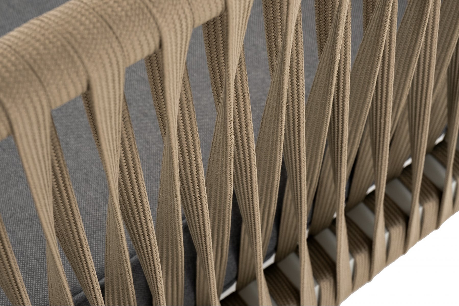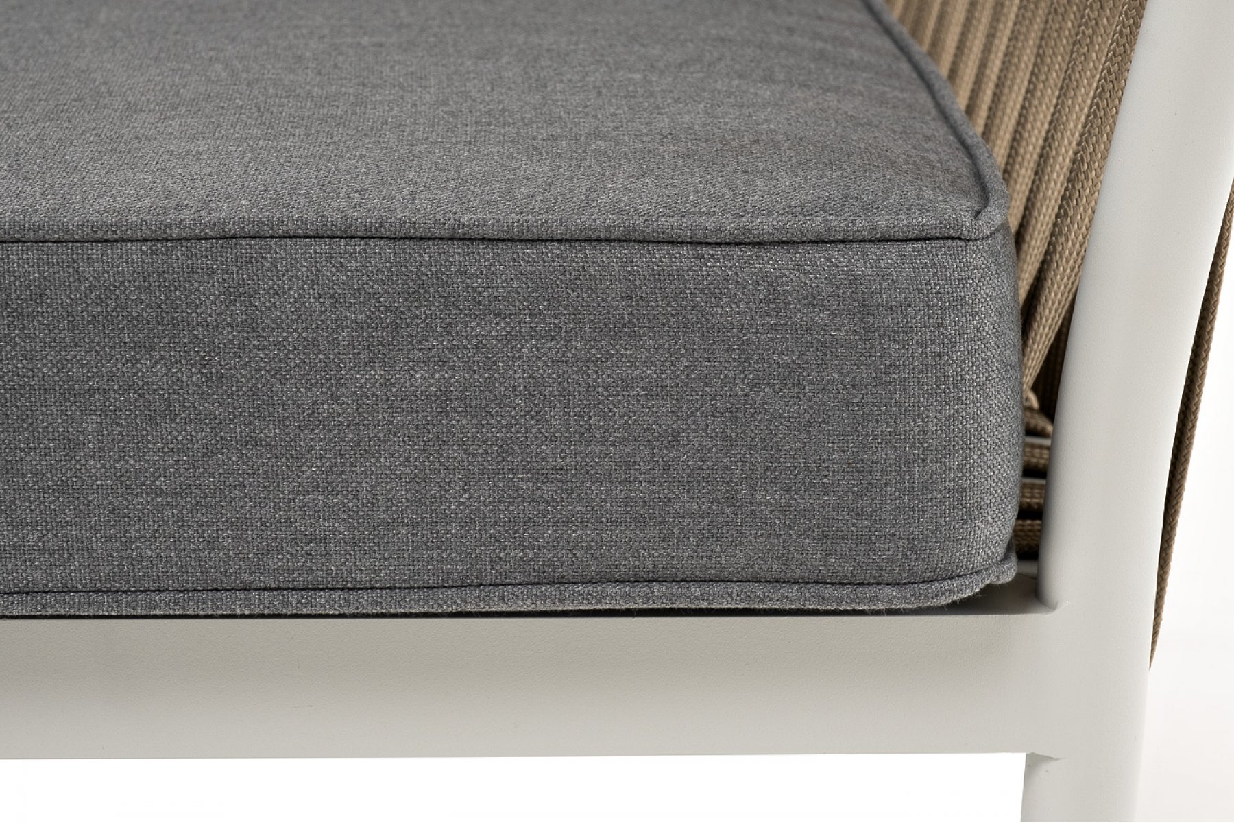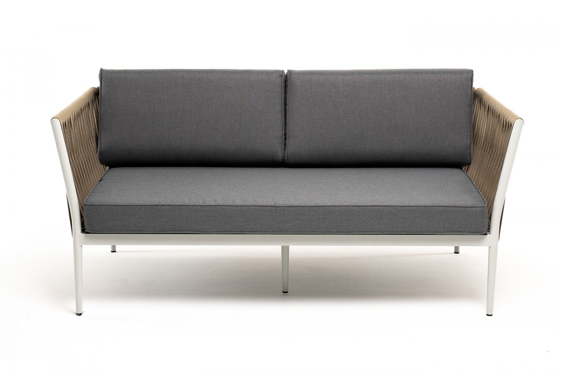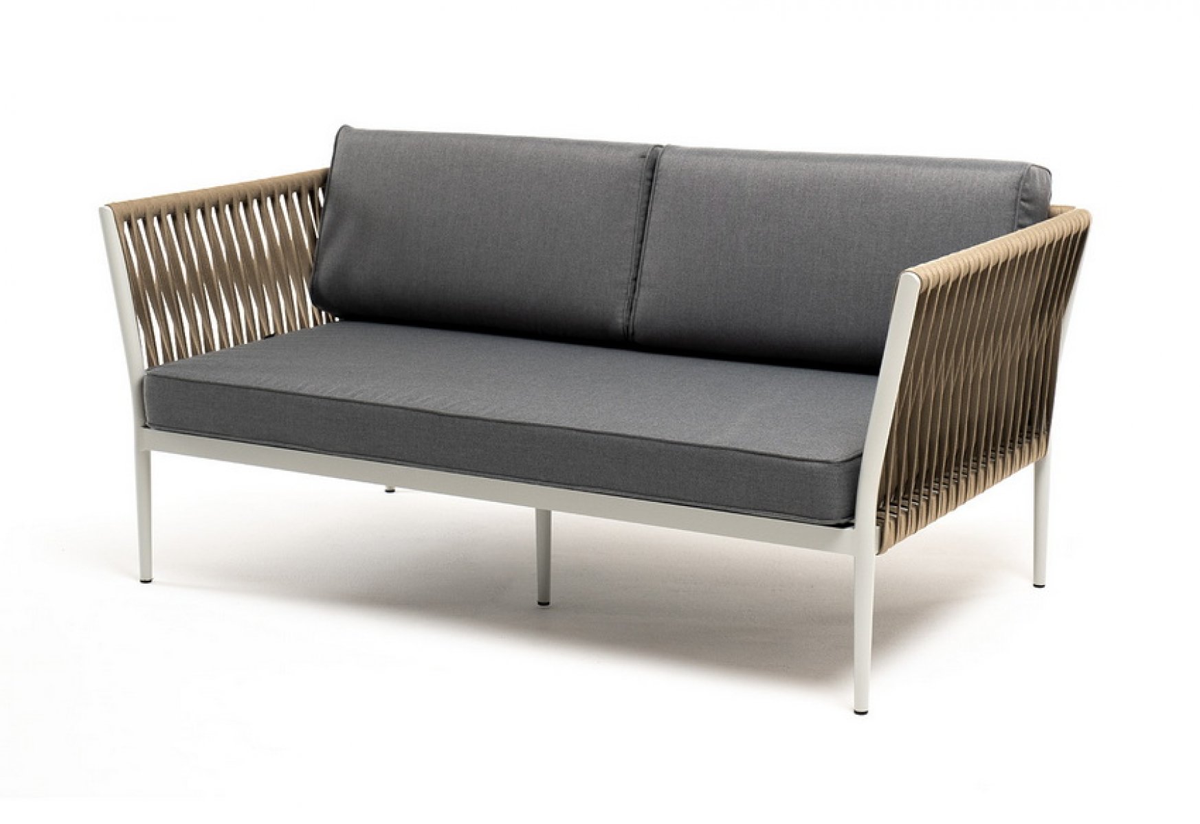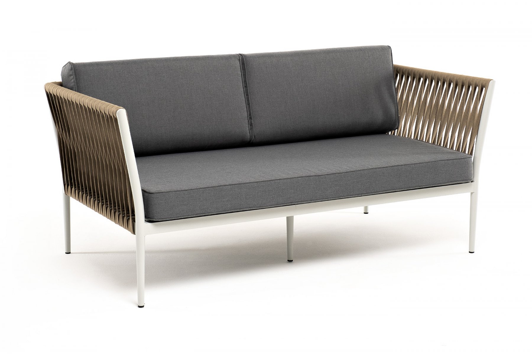 Касабланка диван 2-местный плетеный из роупа, каркас алюминий светло-серый (RAL7035) муар, роуп серо-коричневый 23мм, ткань серая 017