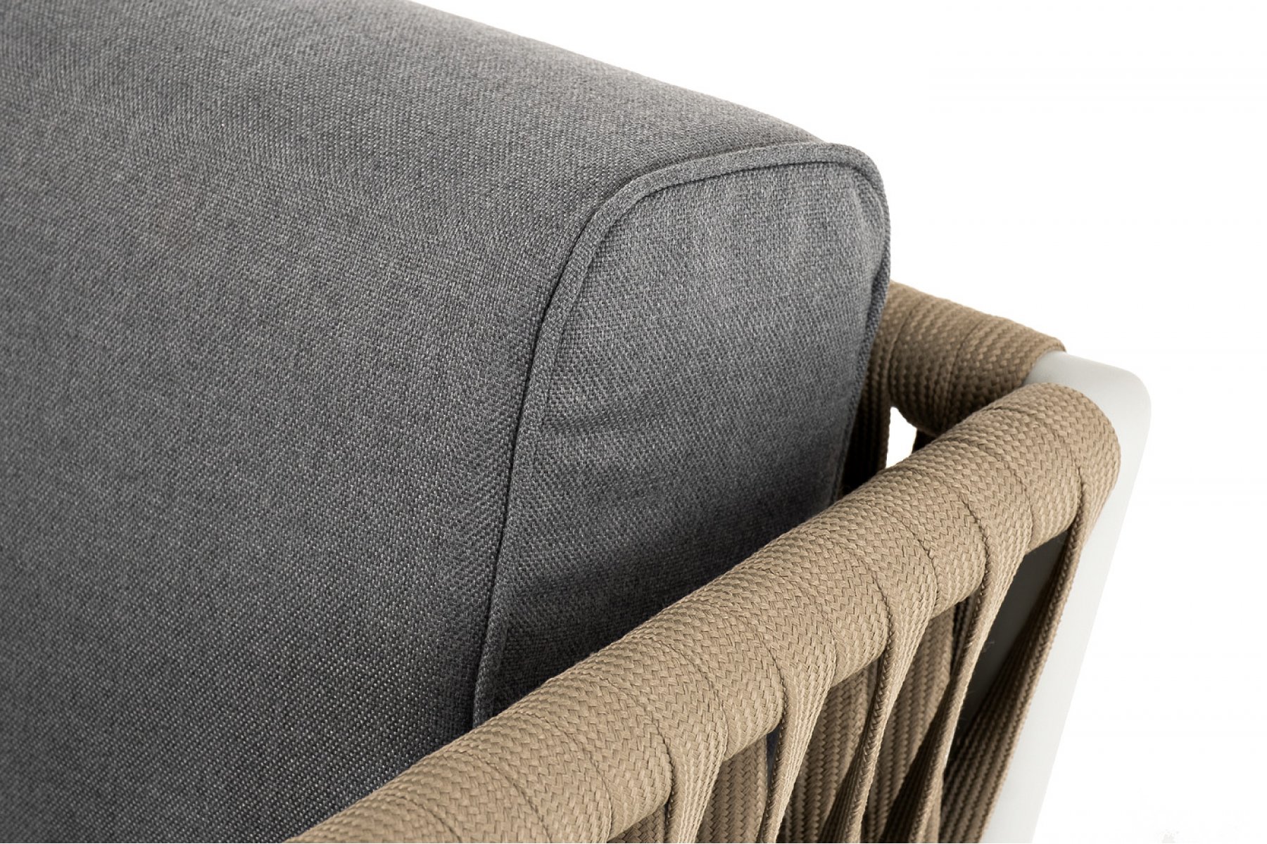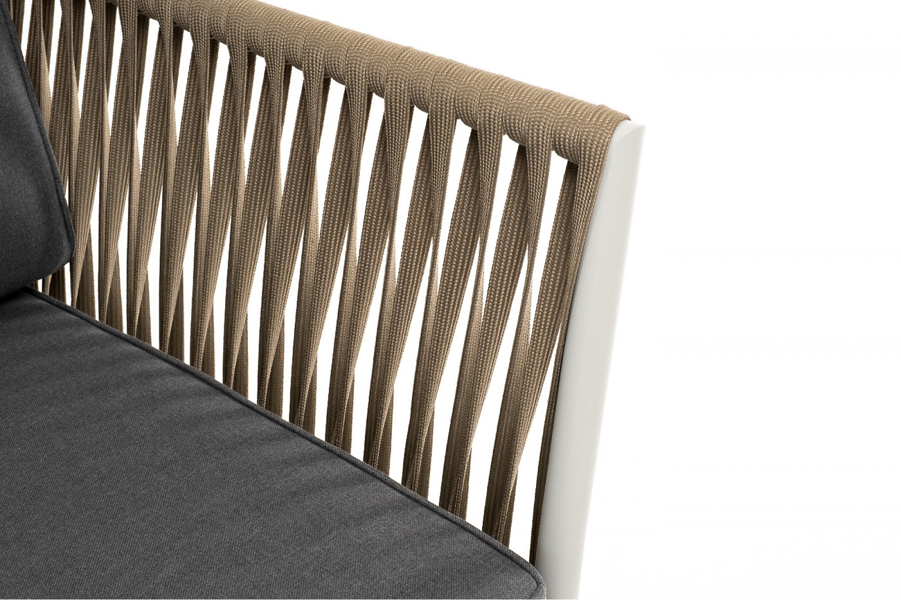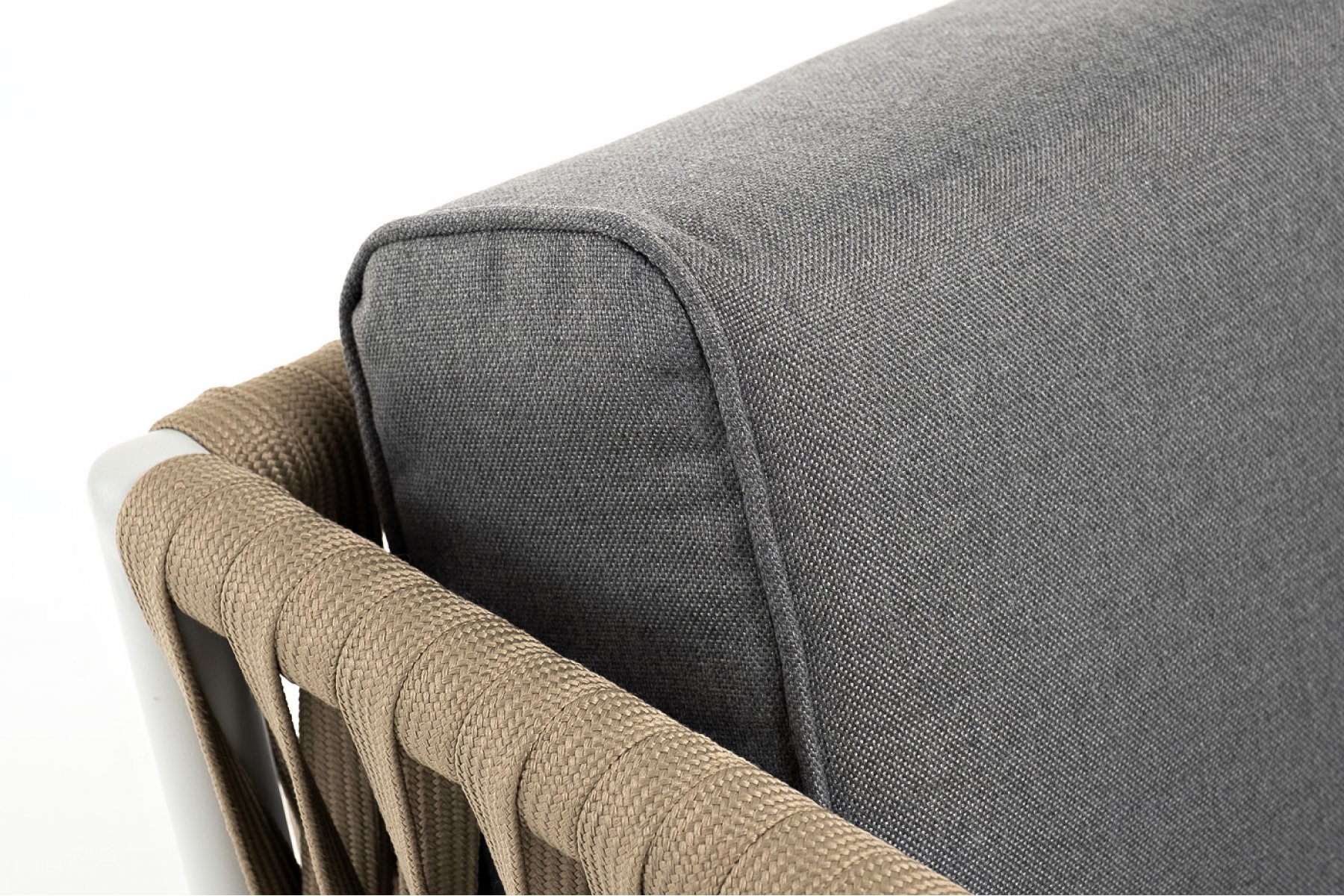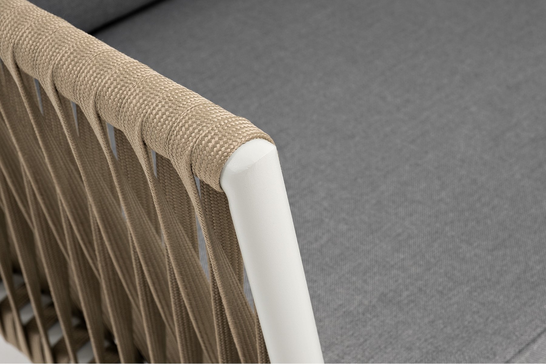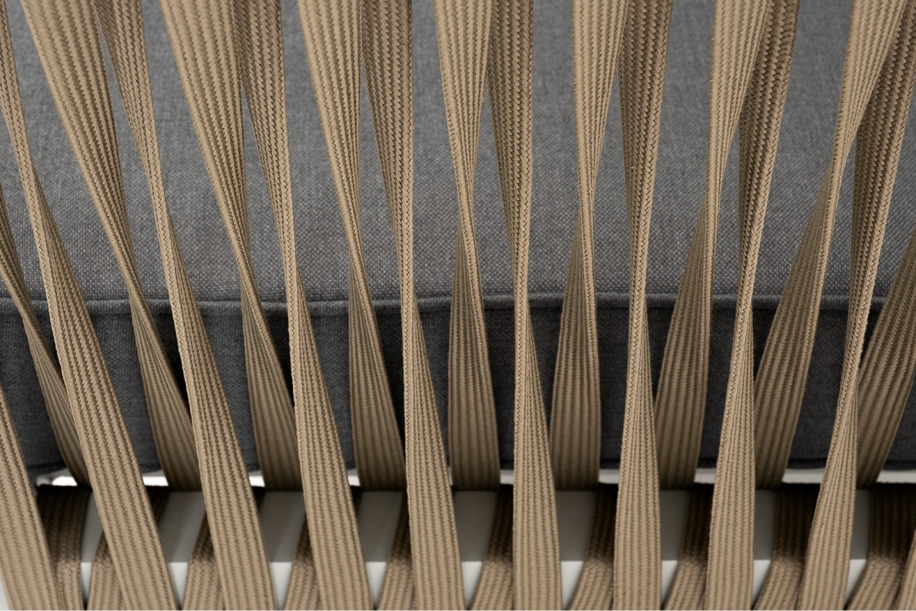 Касабланка диван 2-местный плетеный из роупа, каркас алюминий светло-серый (RAL7035) муар, роуп серо-коричневый 23мм, ткань серая 017