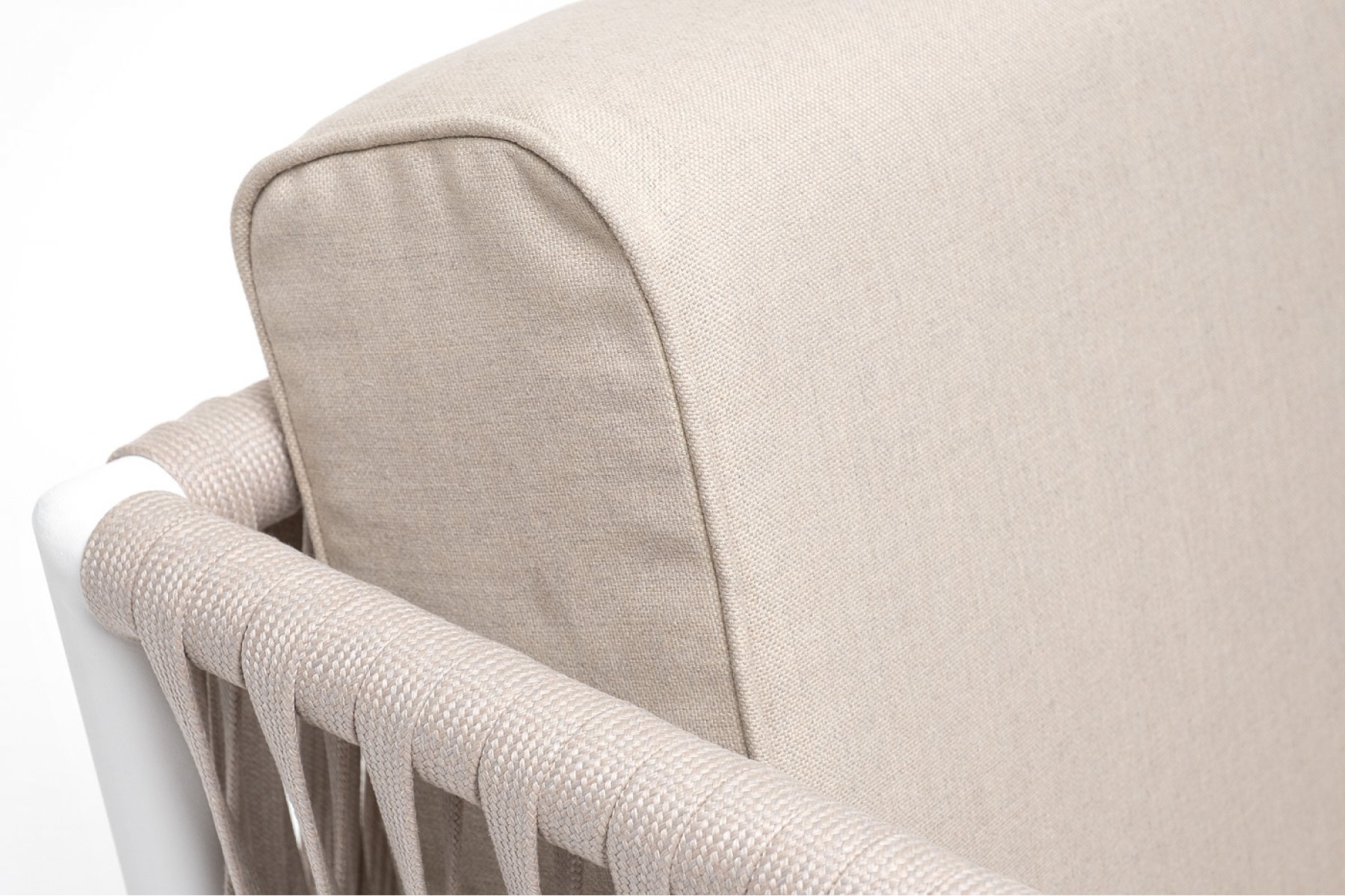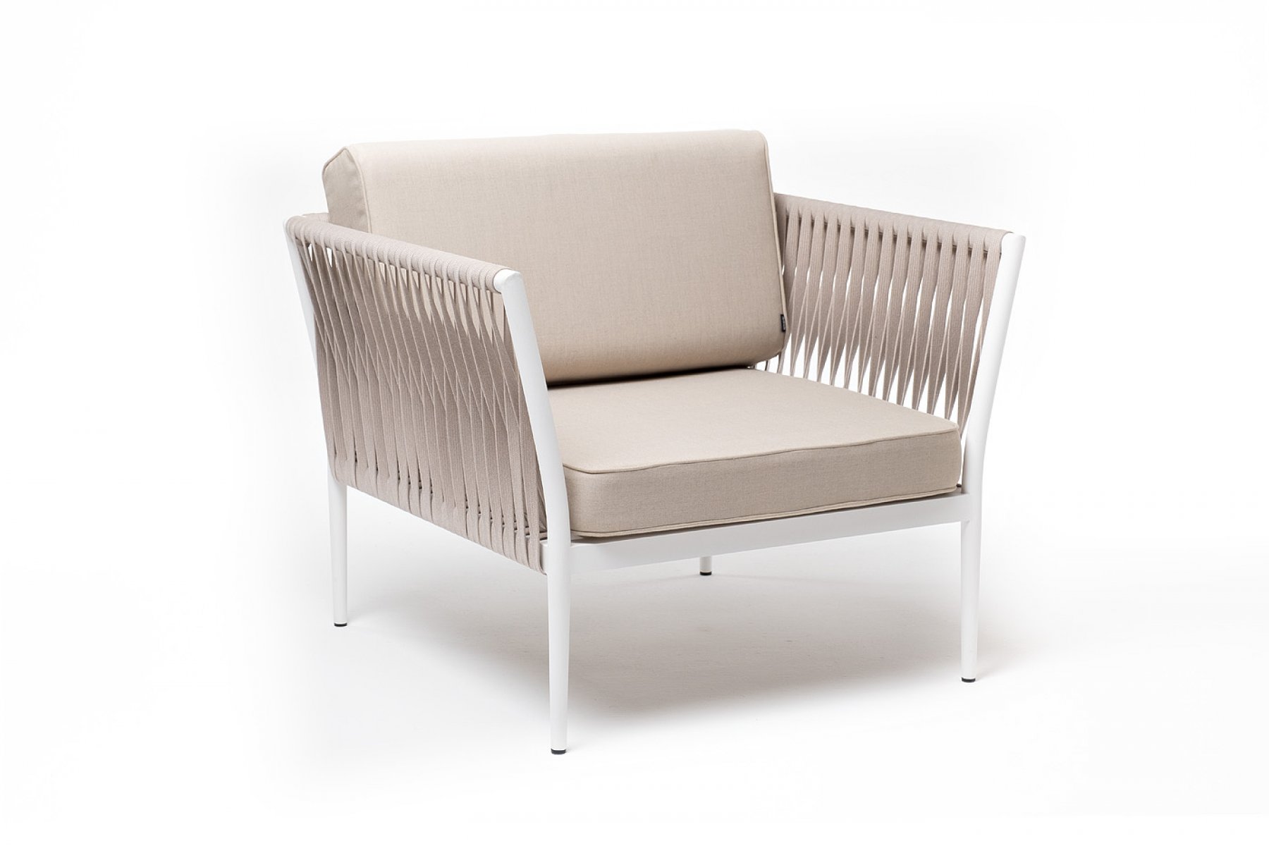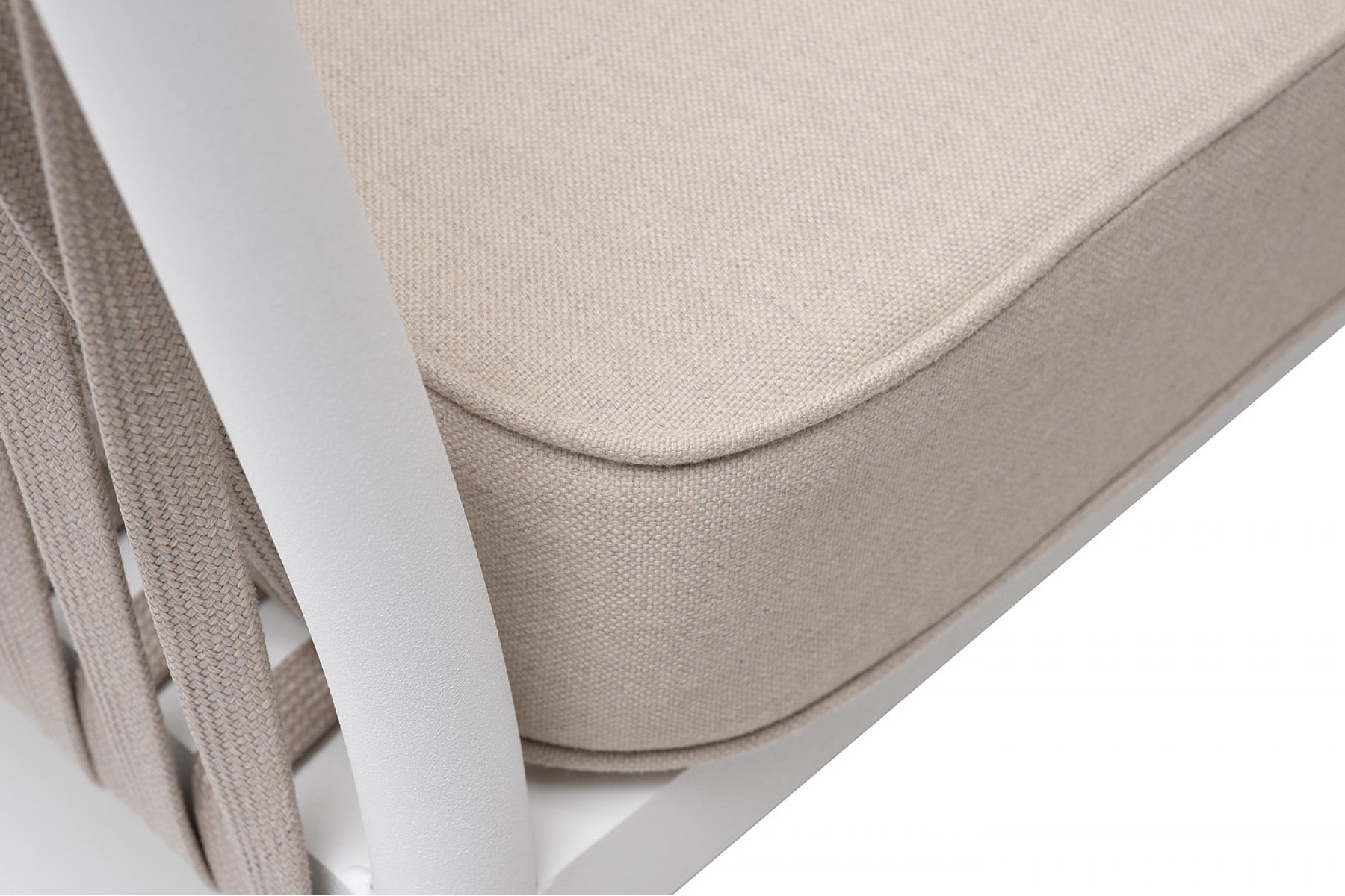 Касабланка кресло плетеное из роупа, каркас алюминий белый муар, роуп бежевый 20мм, ткань бежевая 052