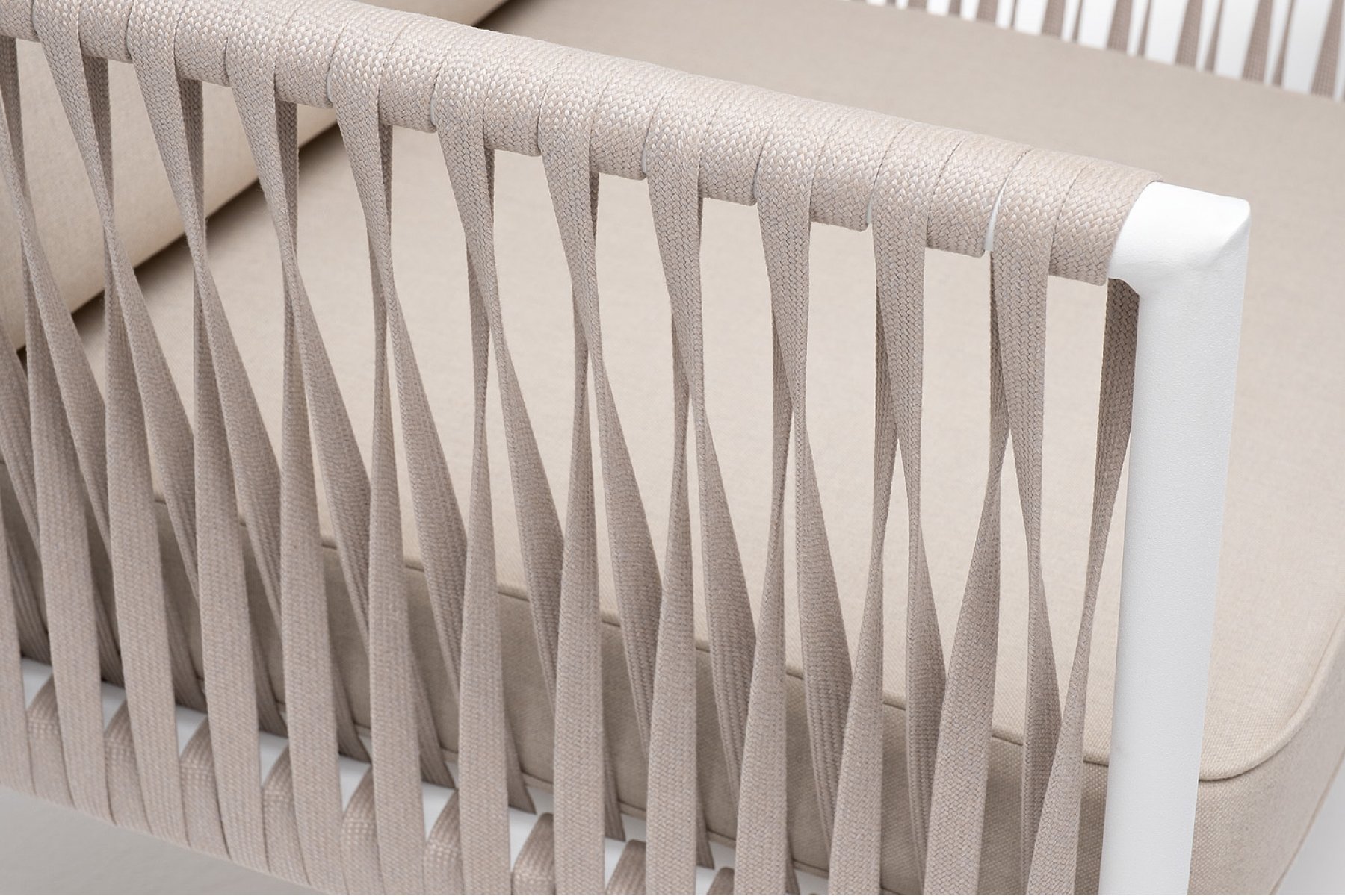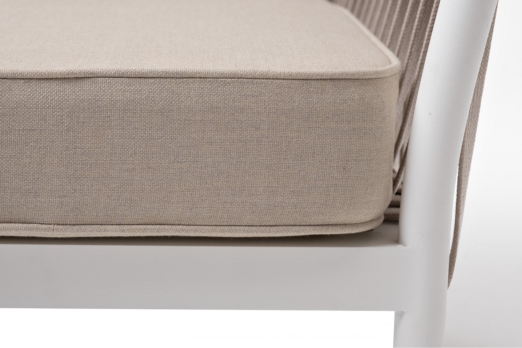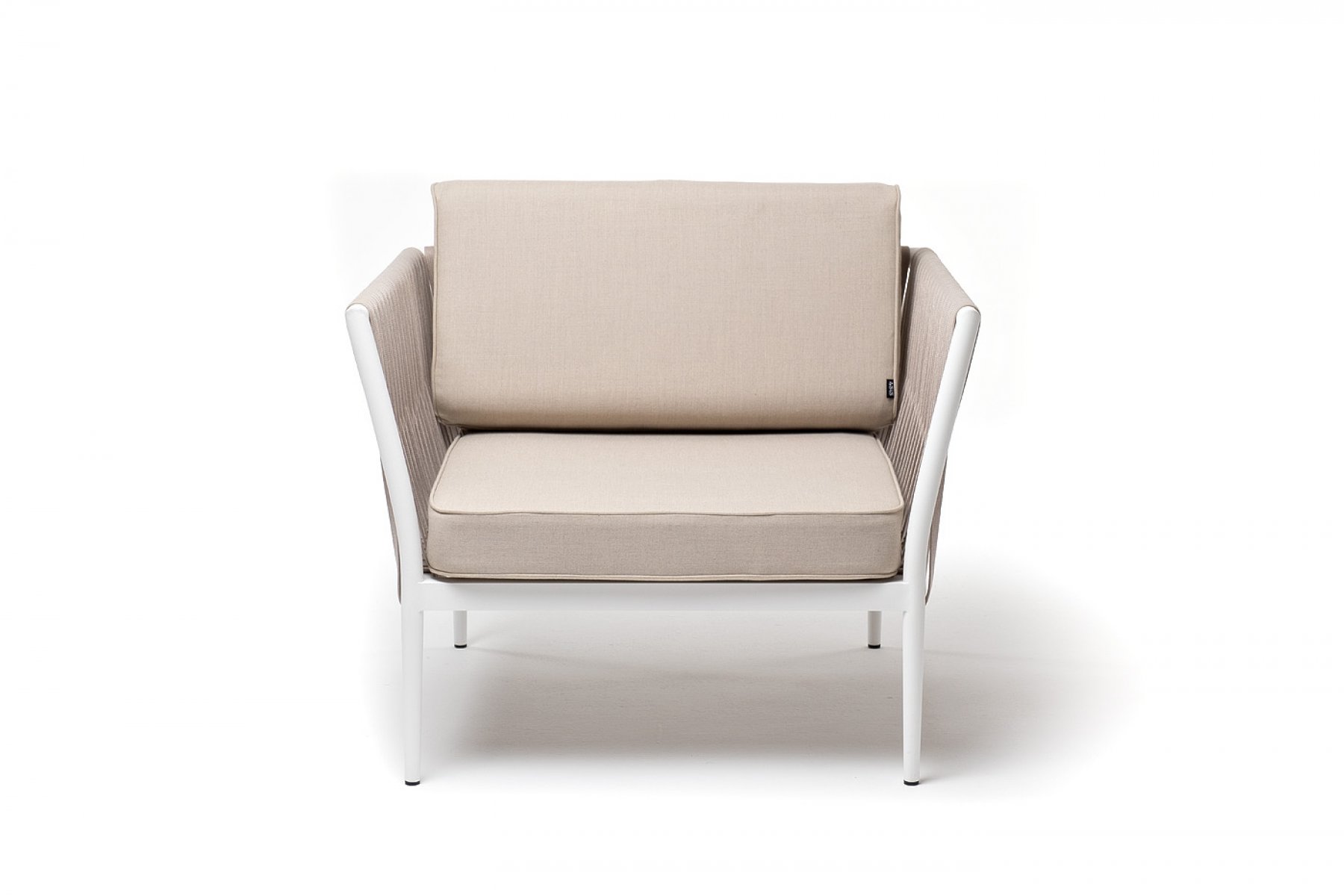 Касабланка кресло плетеное из роупа, каркас алюминий белый муар, роуп бежевый 20мм, ткань бежевая 052