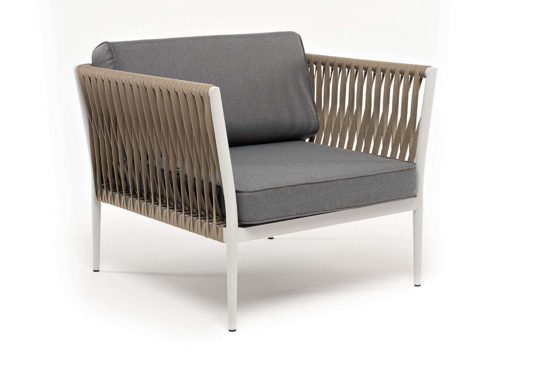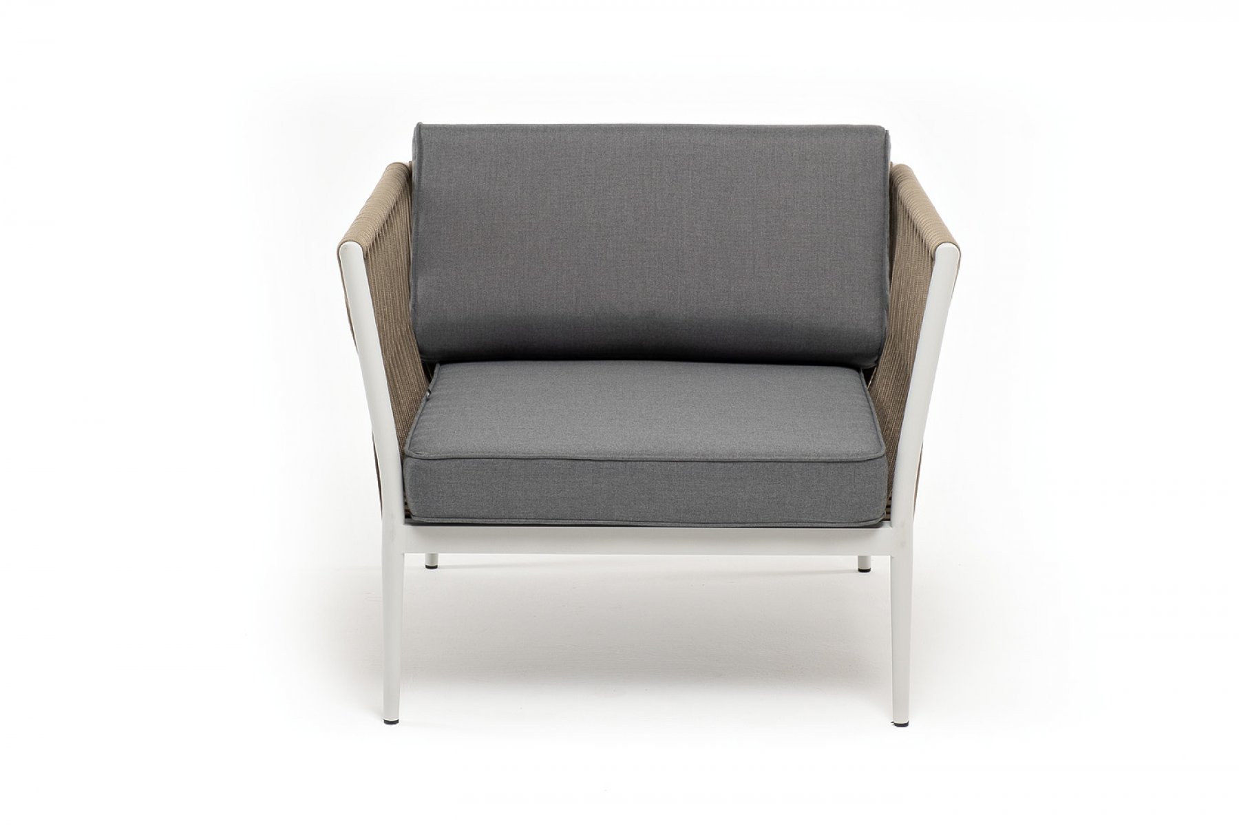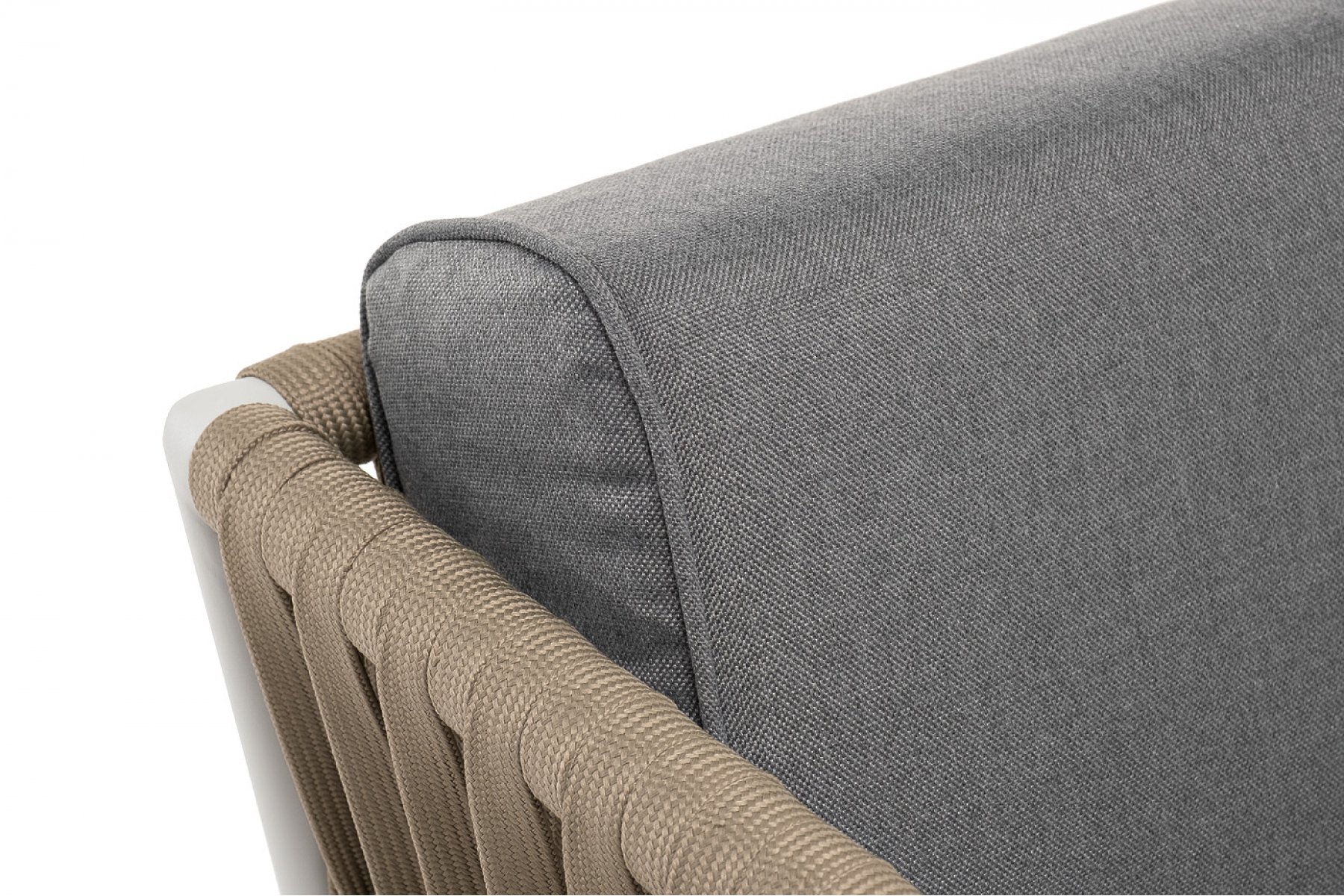 Касабланка кресло плетеное из роупа, каркас алюминий светло-серый (RAL7035) муар, роуп серо-коричневый 23мм, ткань серая 017