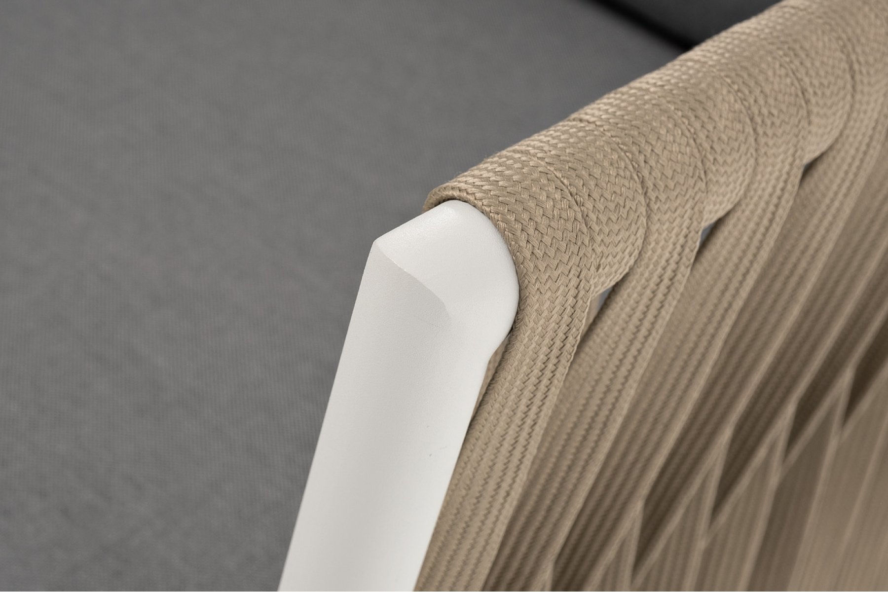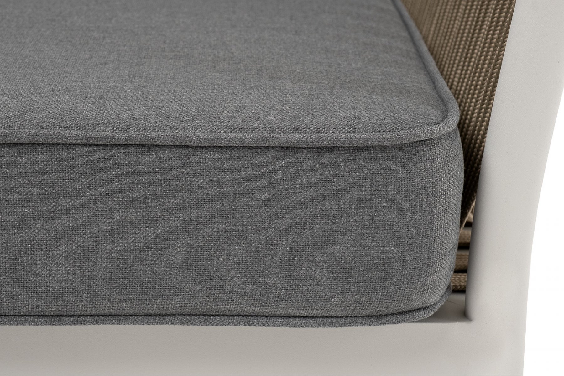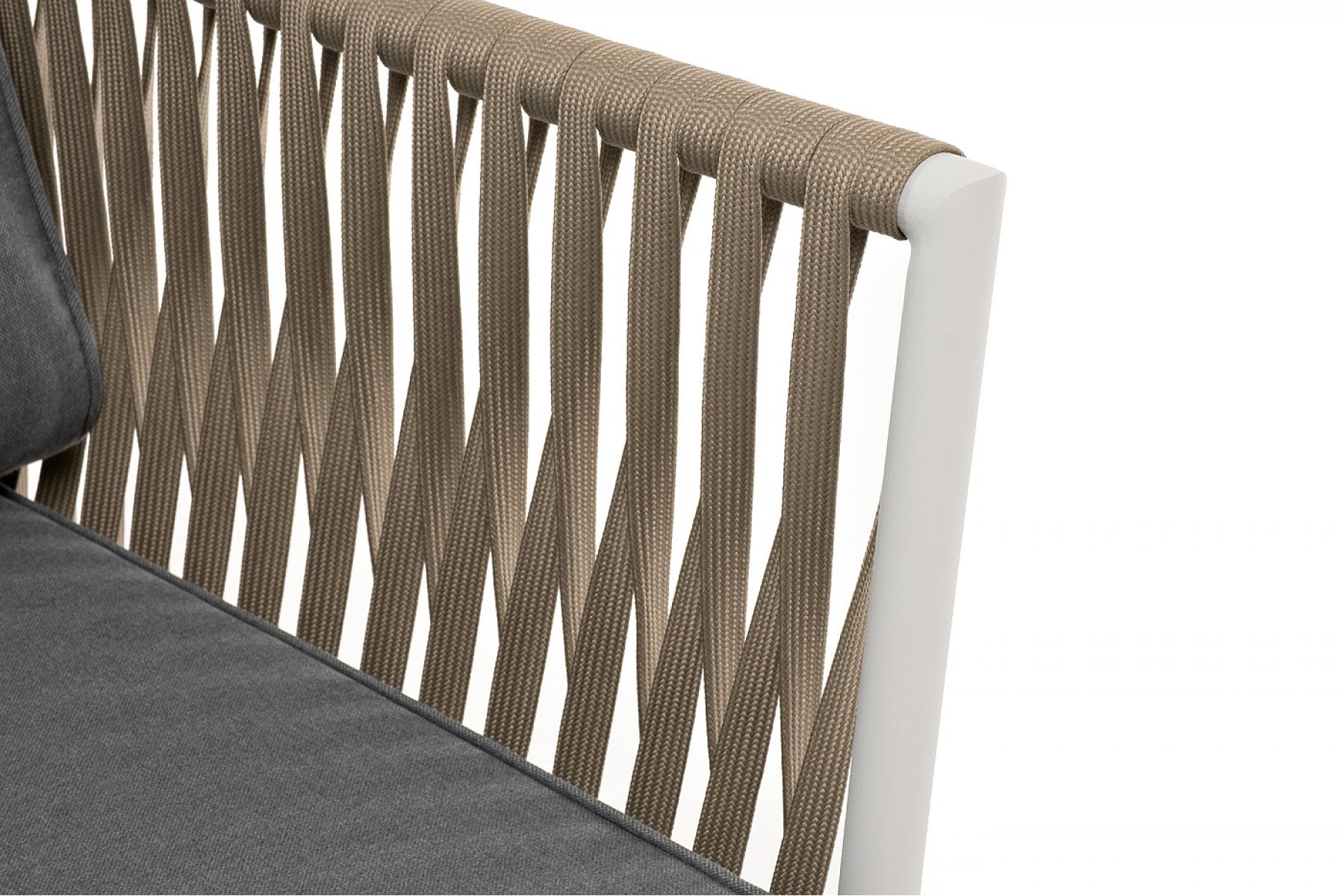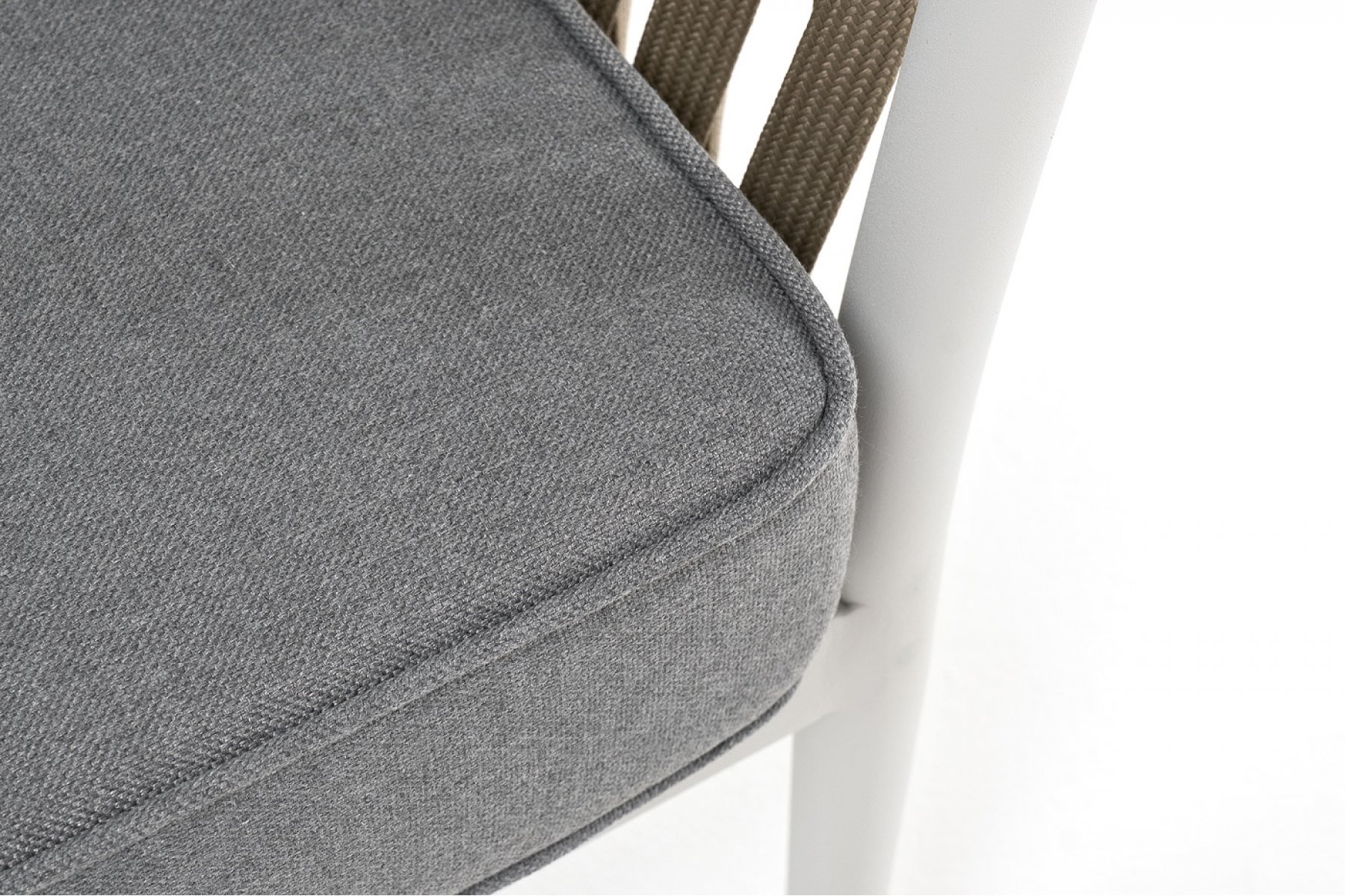 Касабланка кресло плетеное из роупа, каркас алюминий светло-серый (RAL7035) муар, роуп серо-коричневый 23мм, ткань серая 017