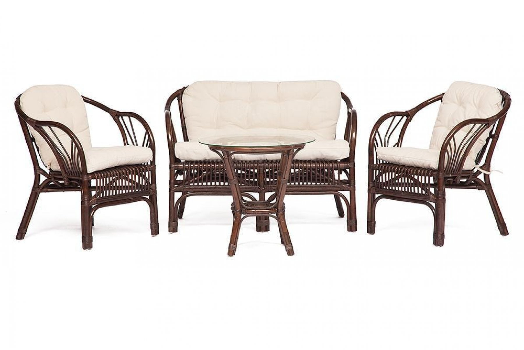 Материал: каркас - натуральный ротанг (высший сорт), столешница - закалённое стекло.
