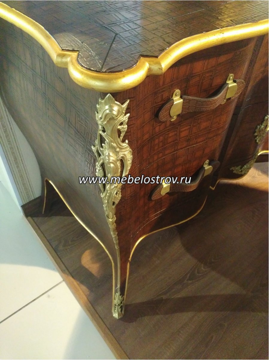 Отделка: Шпон ценных пород деревьев, инкрустация, латунь, ручная резьба, ручная роспись.