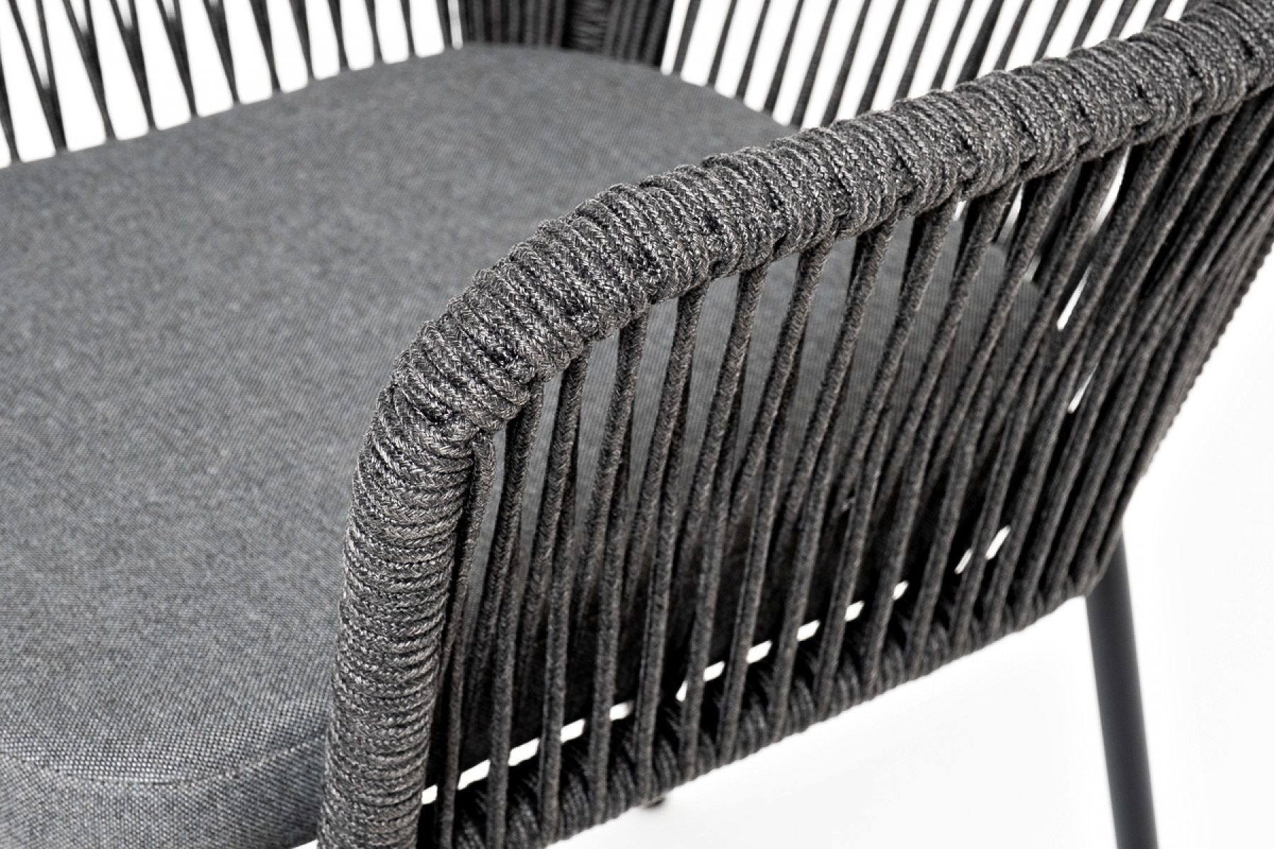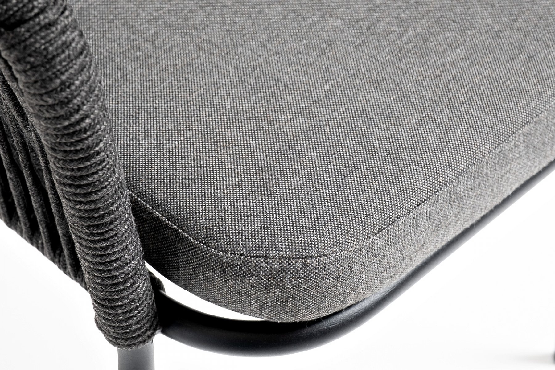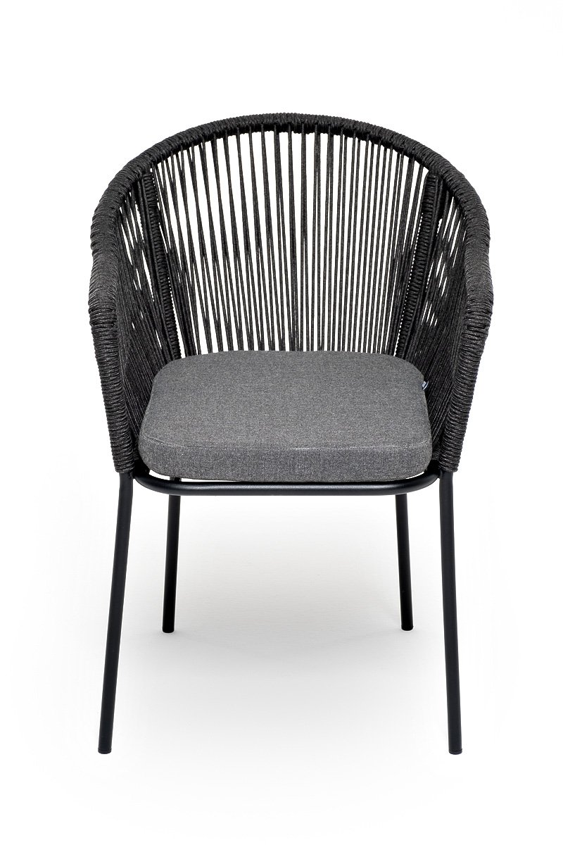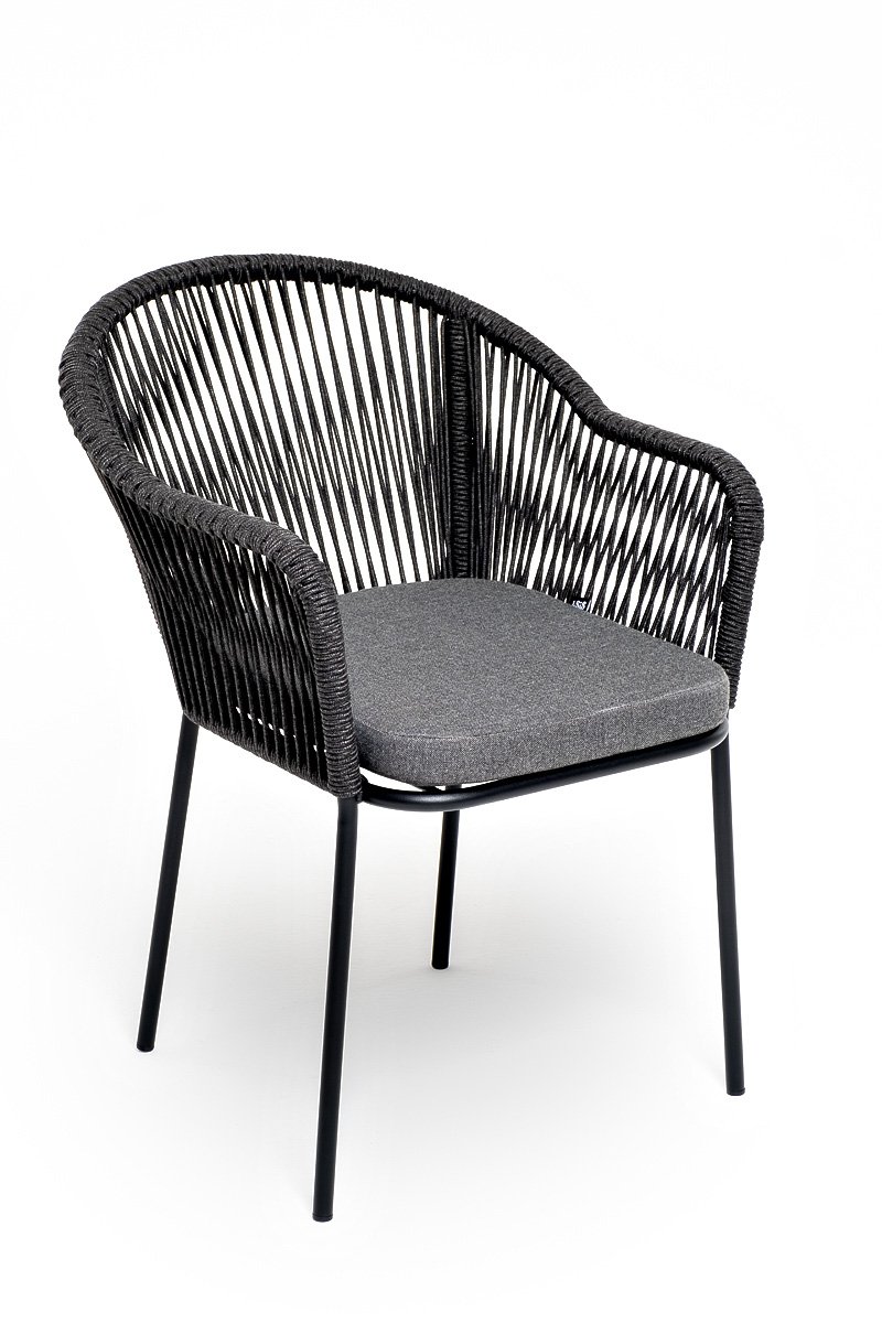 Лион стул плетеный из роупа, каркас из стали темно-серый (RAL7024) муар, роуп темно-серый круглый, ткань темно-серая 027