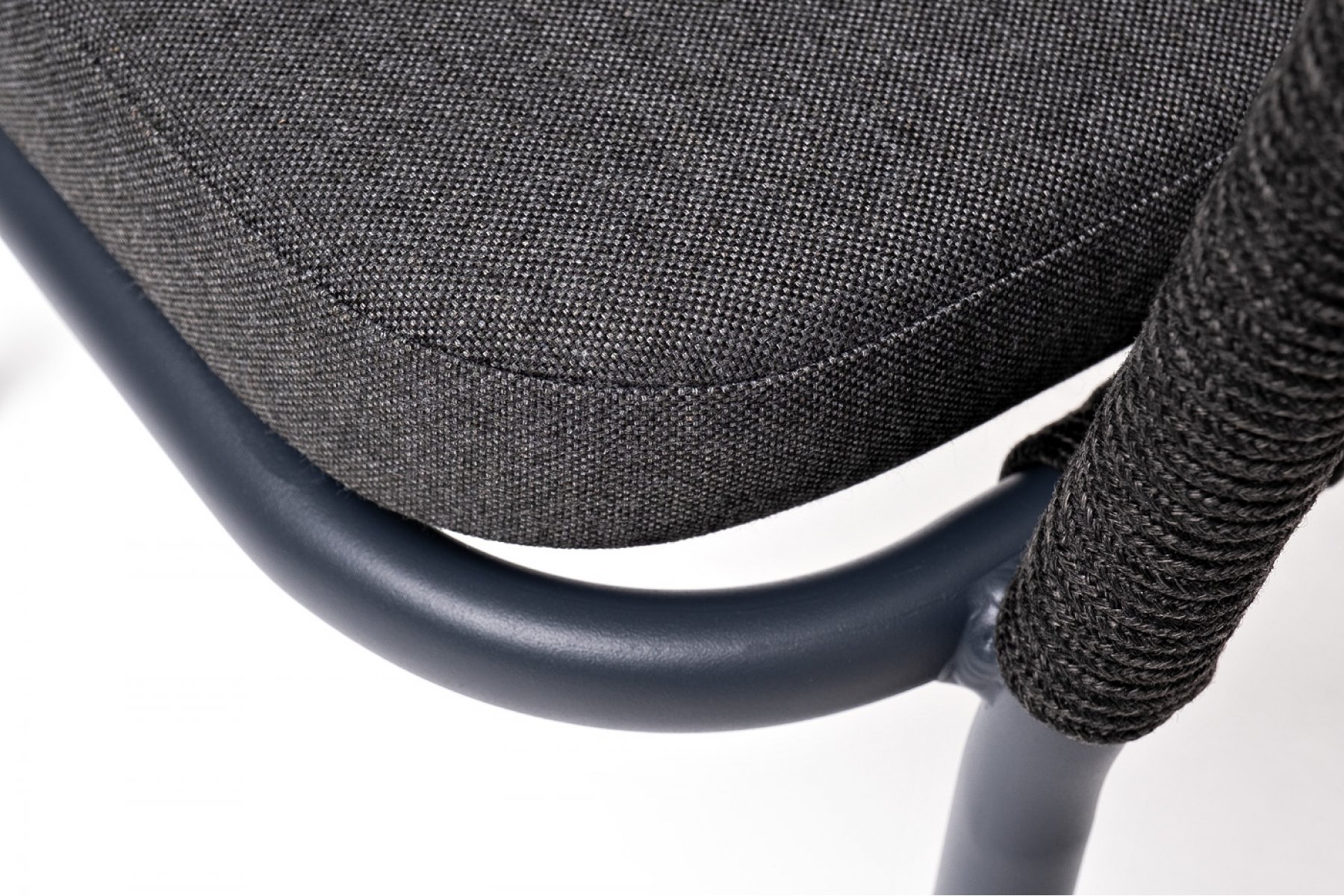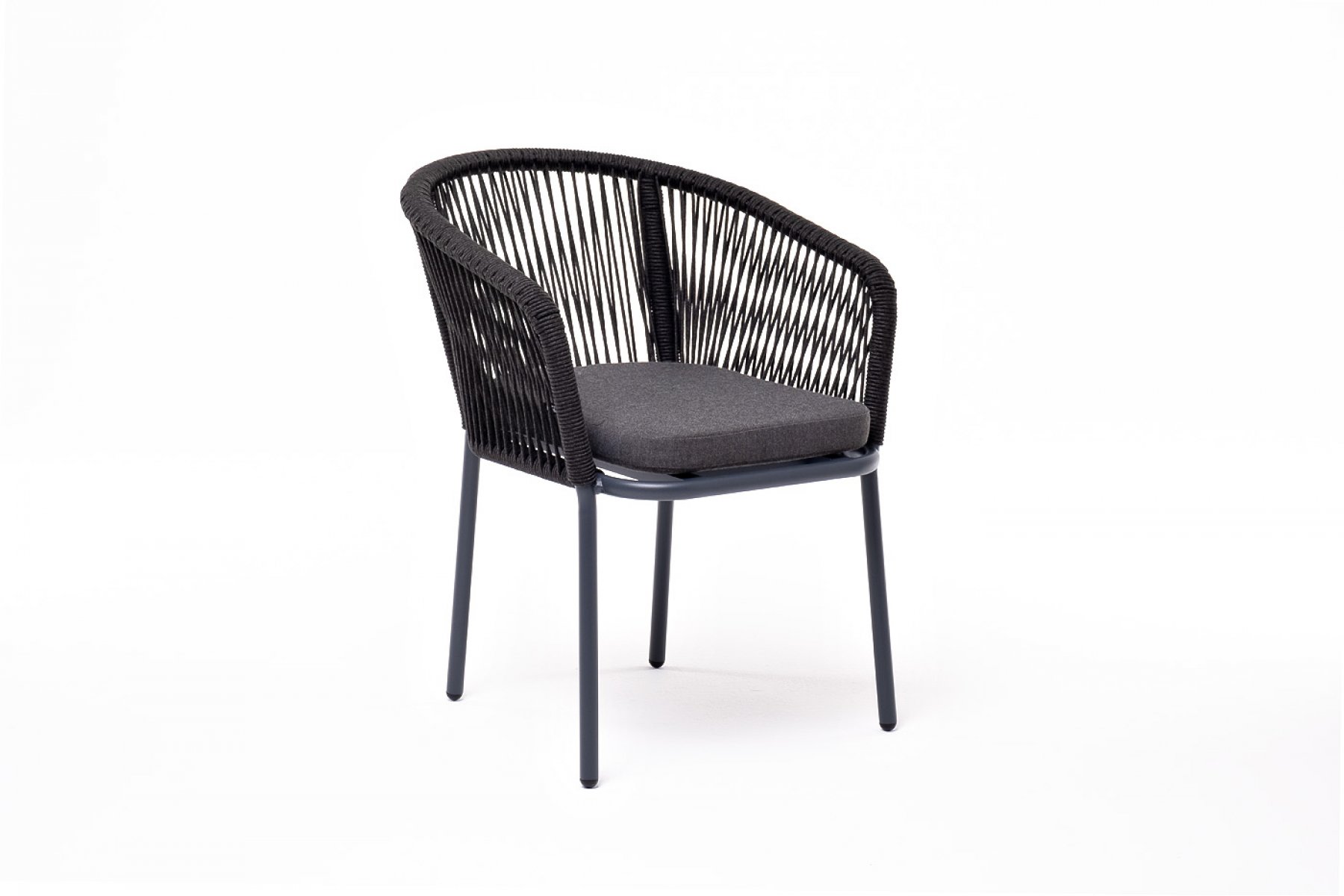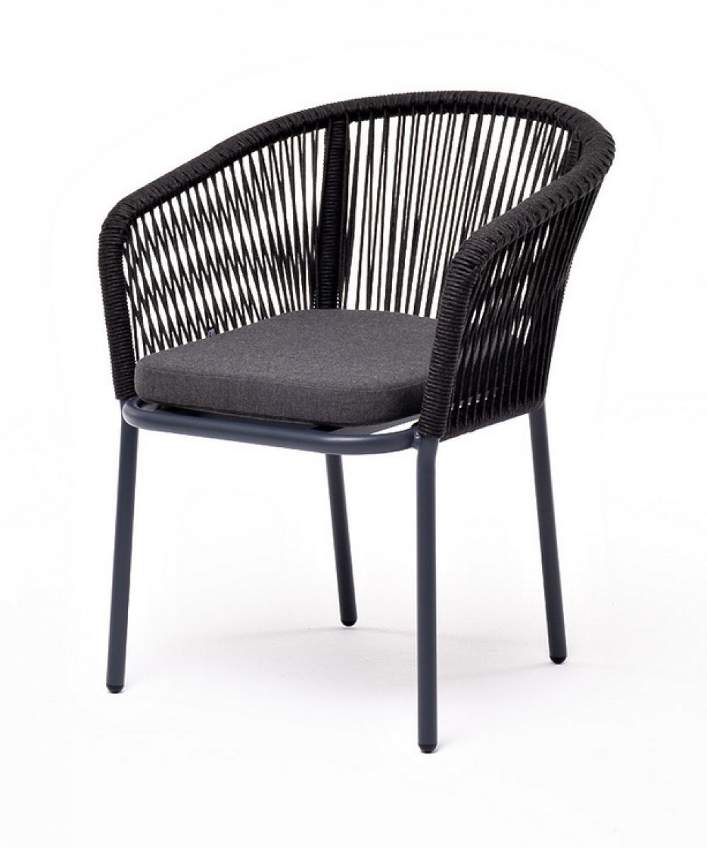 Марсель стул плетеный из роупа, каркас алюминий темно-серый (RAL7024) муар, роуп темно-серый круглый, ткань темно-серая 027