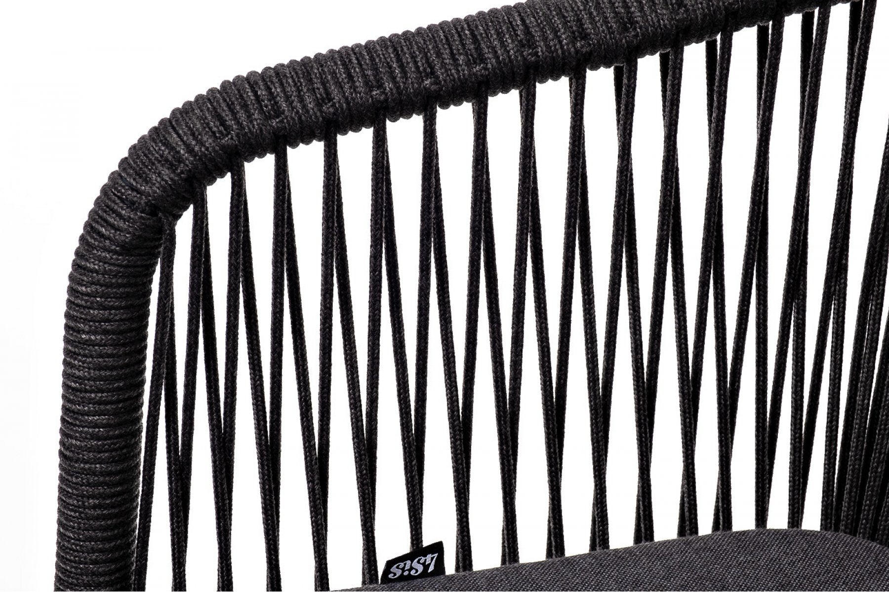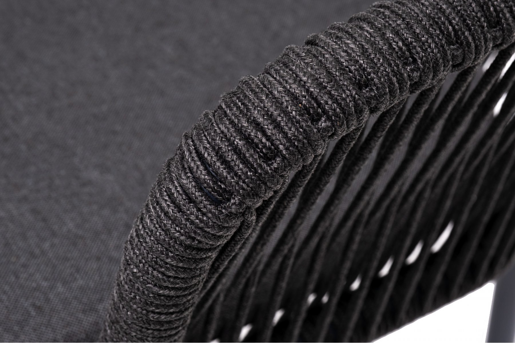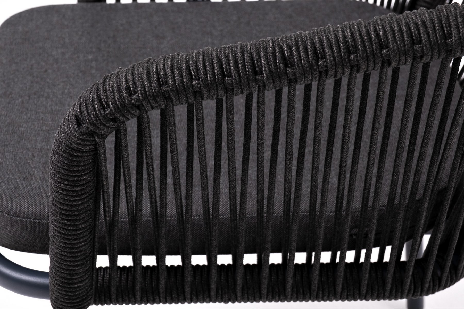 Марсель стул плетеный из роупа, каркас алюминий темно-серый (RAL7024) муар, роуп темно-серый круглый, ткань темно-серая 027