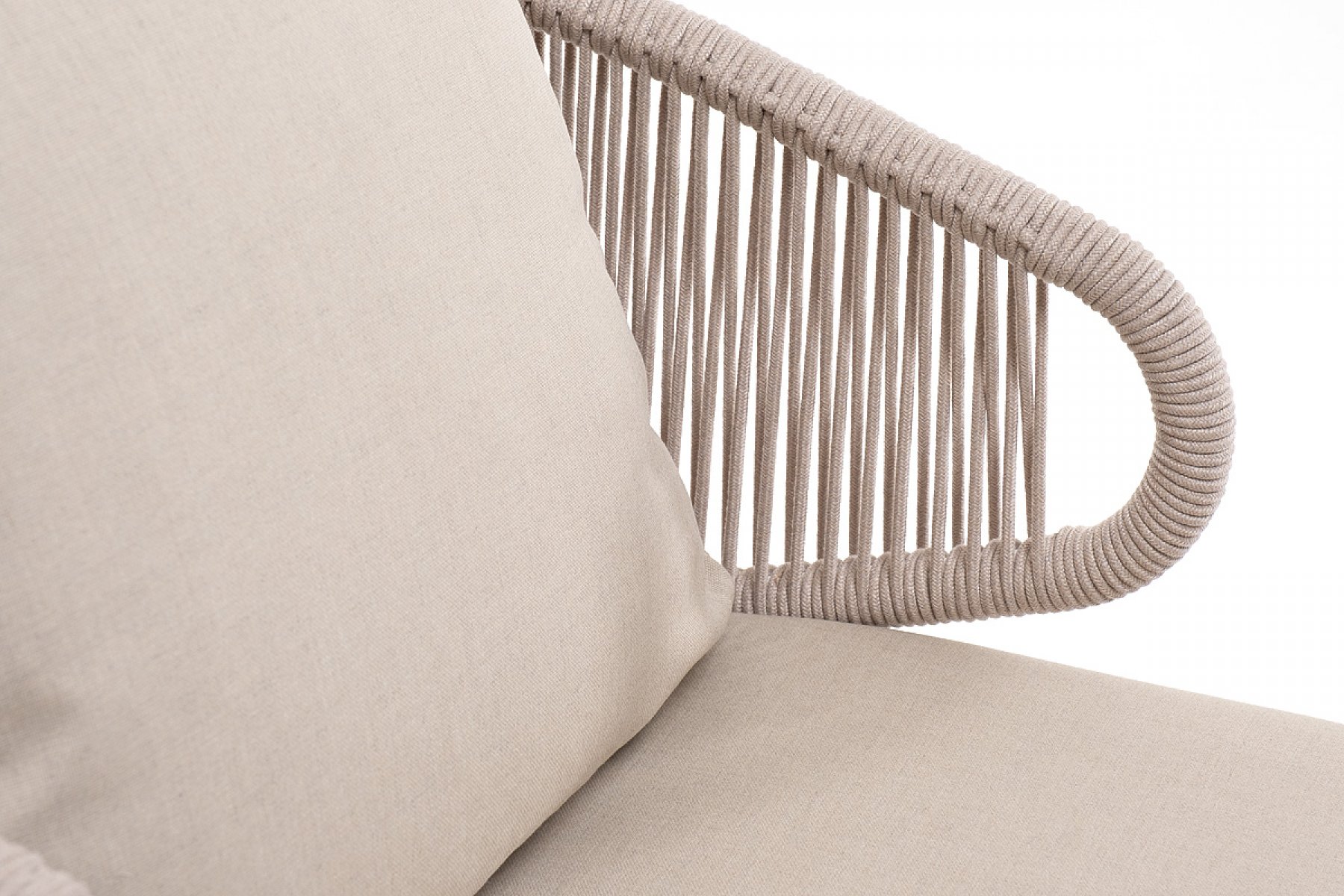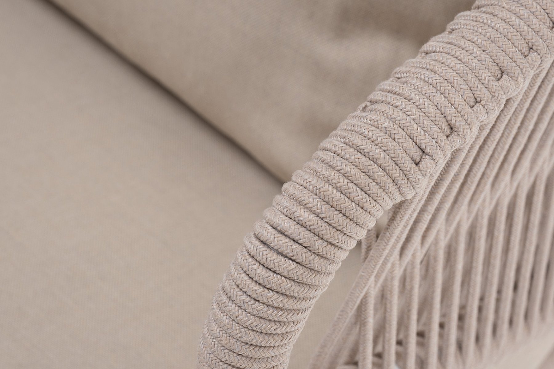 Милан кресло плетеное из роупа, каркас алюминий белый муар, роуп бежевый круглый, ткань бежевая 035