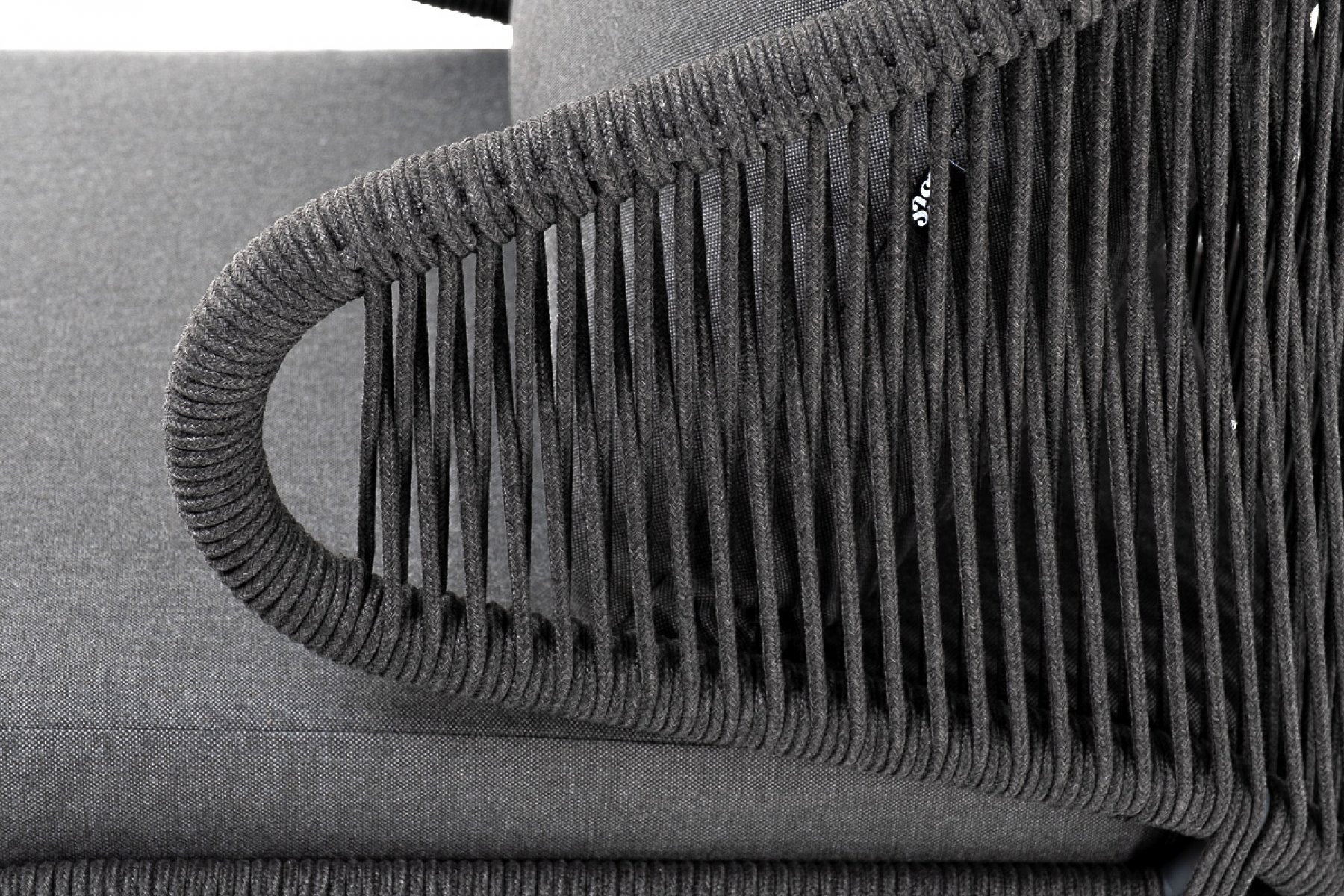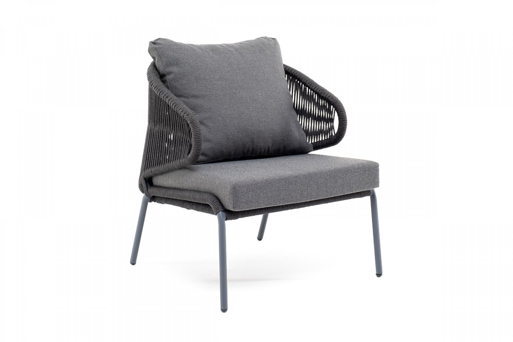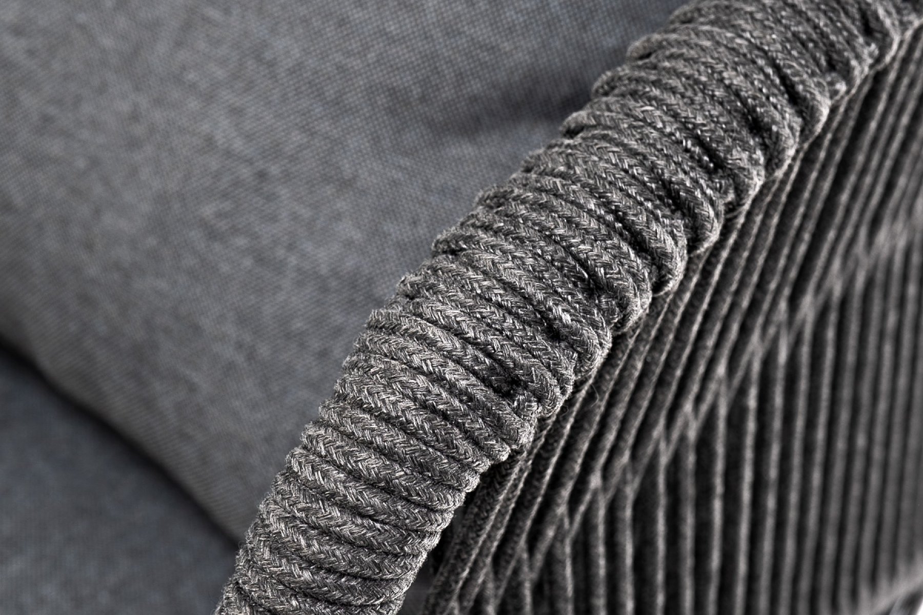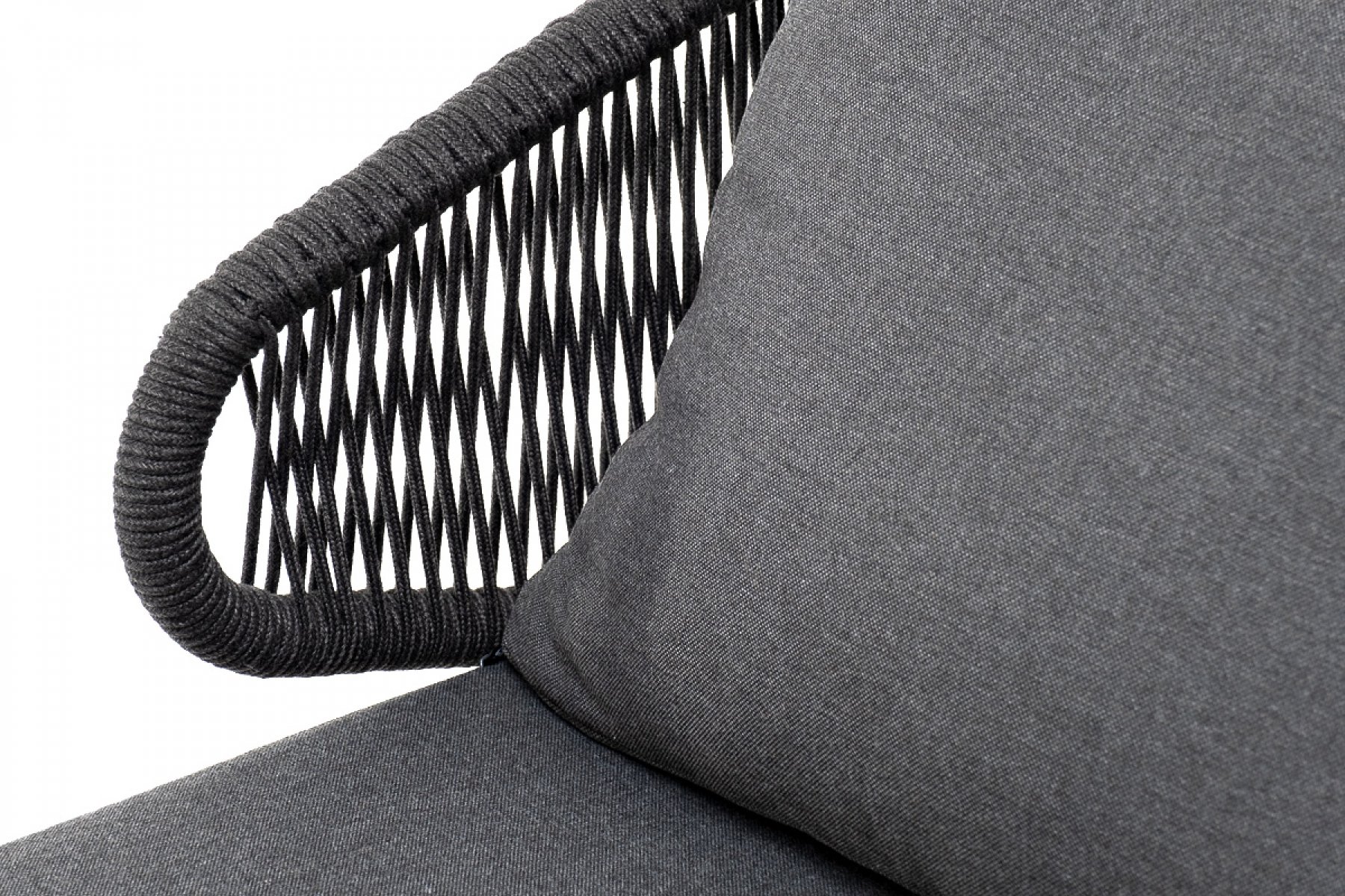 Милан кресло плетеное из роупа, каркас алюминий темно-серый (RAL7024) муар, роуп темно-серый круглый, ткань темно-серая 027