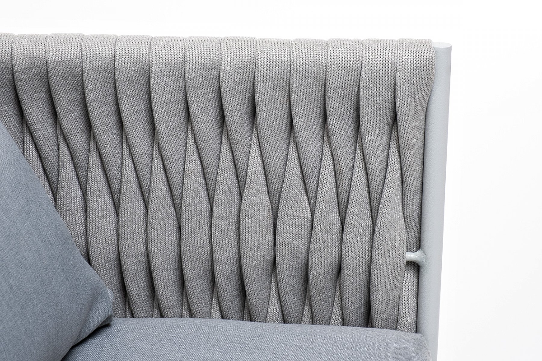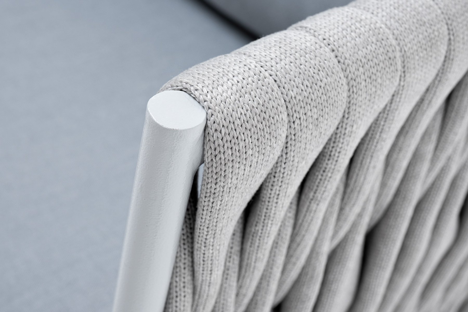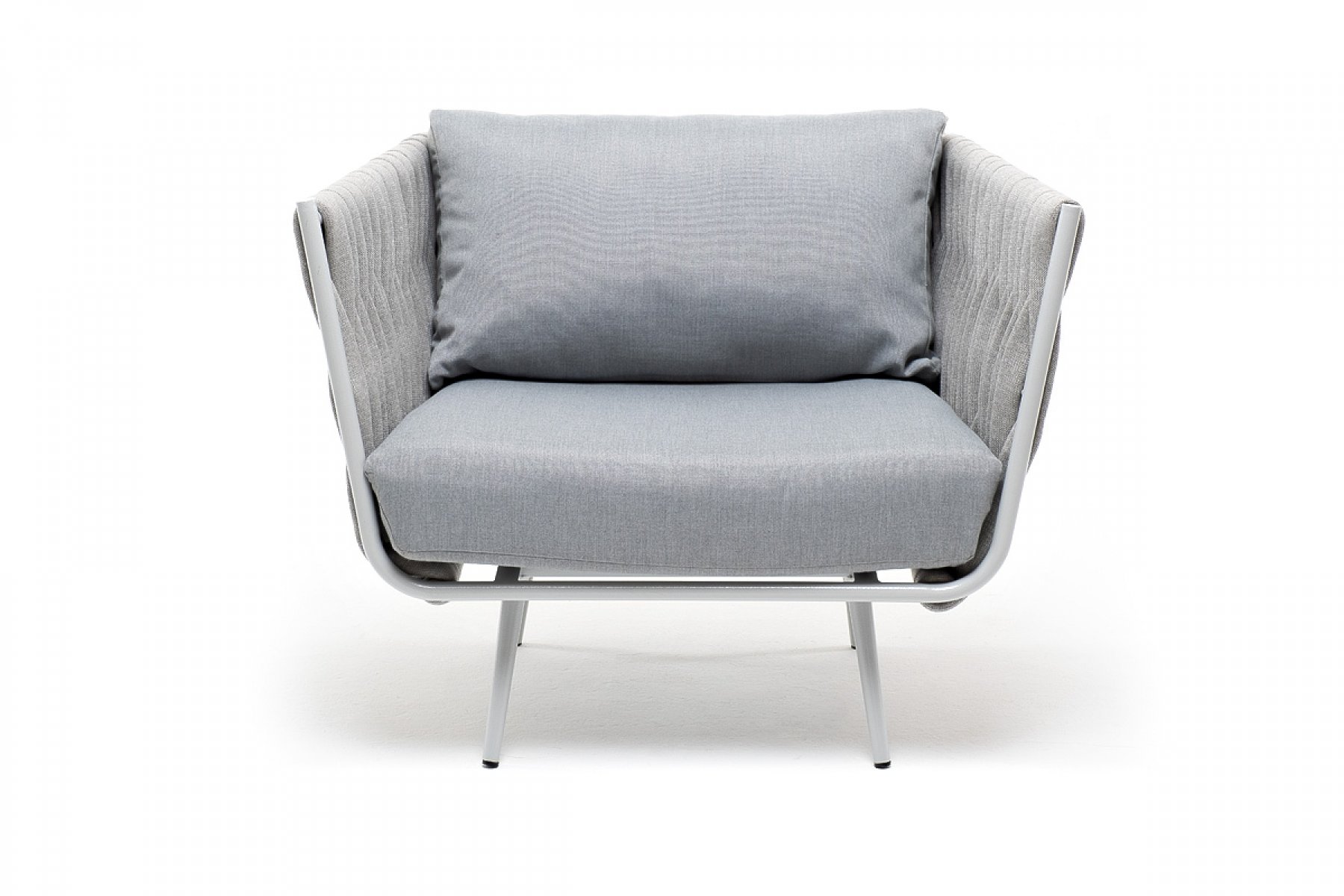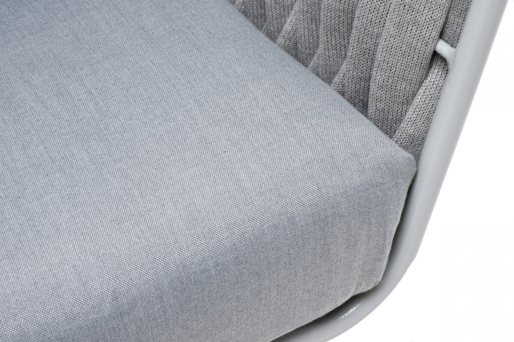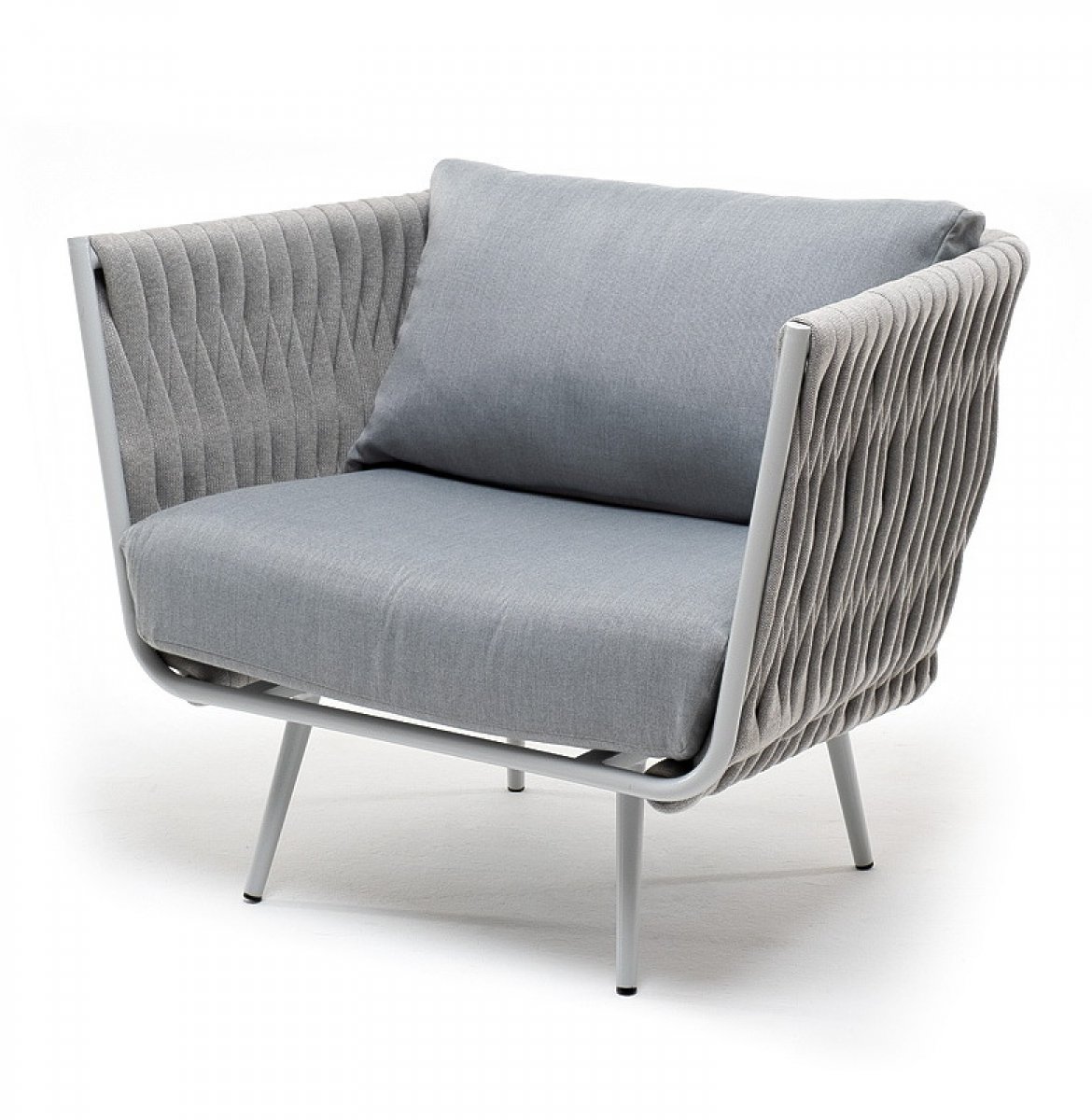 Монако кресло плетеное из роупа, каркас алюминий светло-серый (RAL7035) муар, роуп светло-серый 40 мм, ткань светло-серая