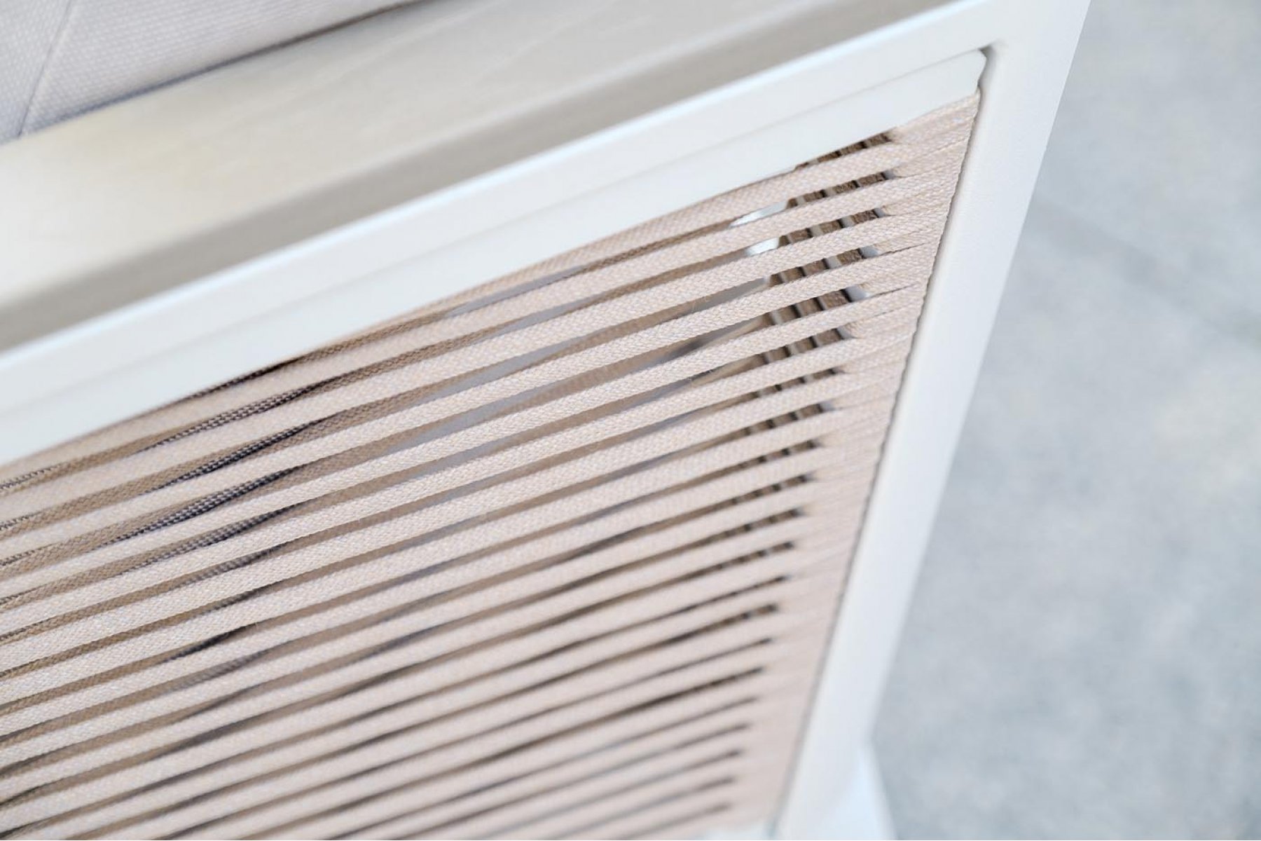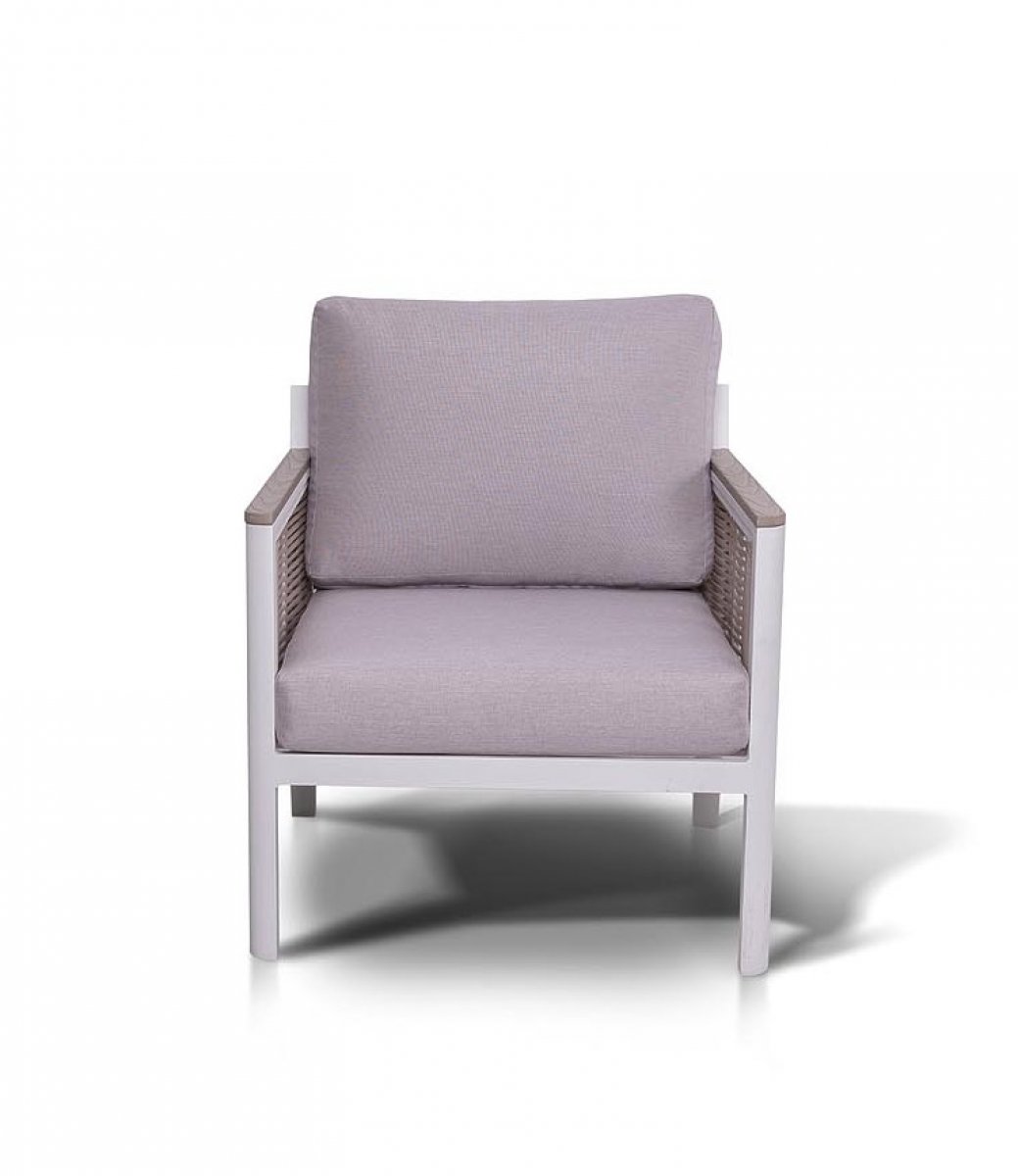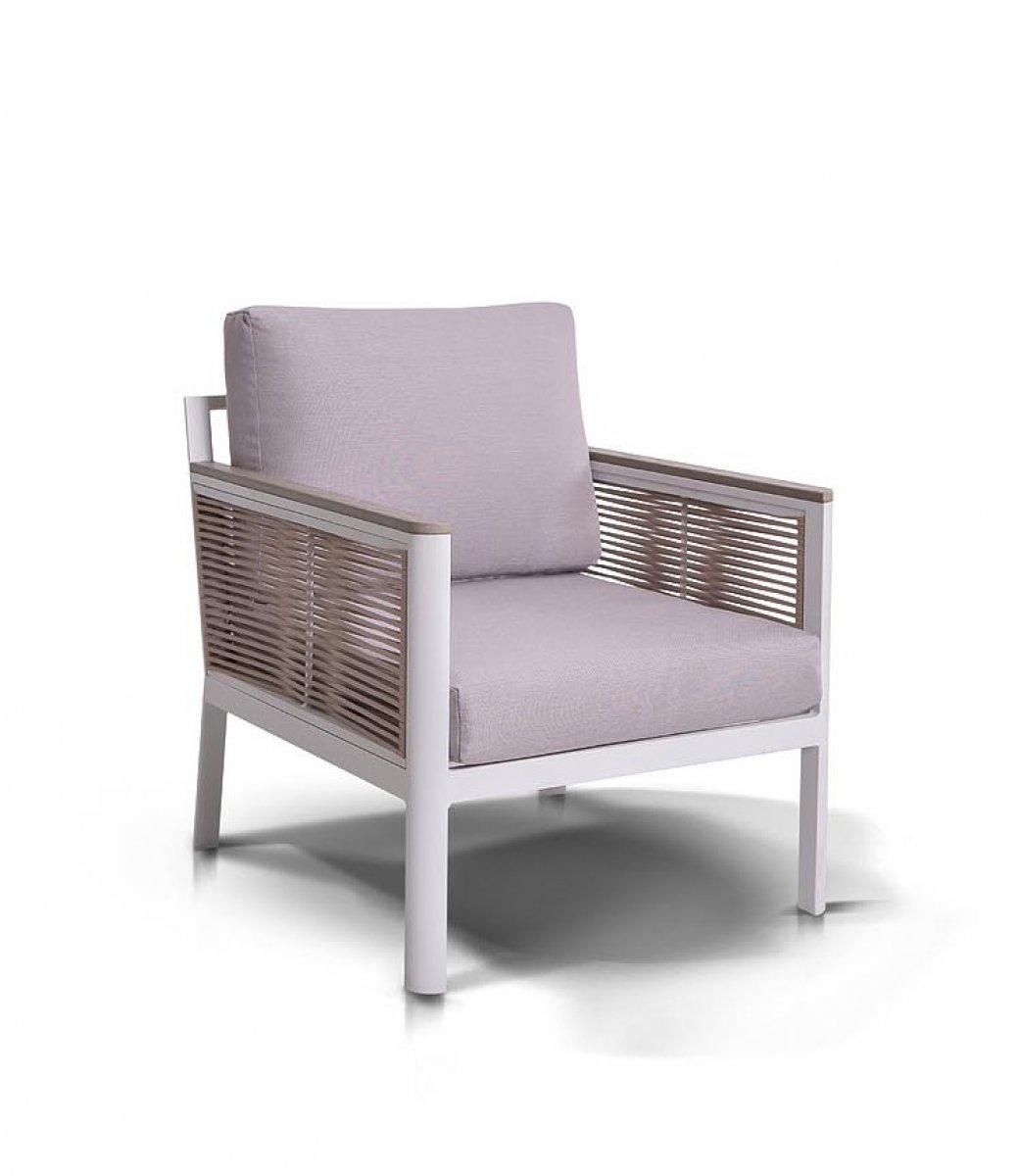Сан Ремо кресло плетеное из роупа садовое, каркас алюминий белый, роуп бежевый, ткань бежевая