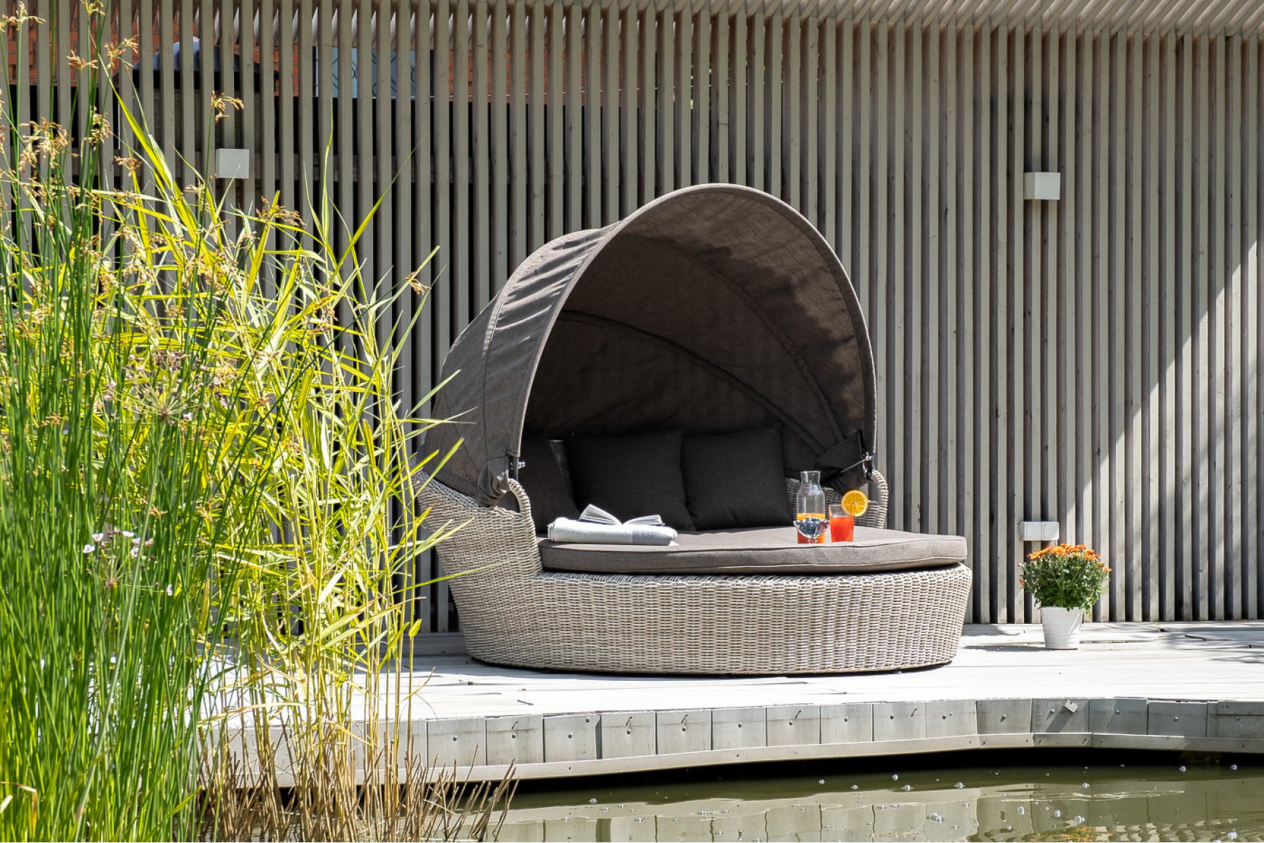 Стильяно плетеная кровать круглая, цвет бежевый