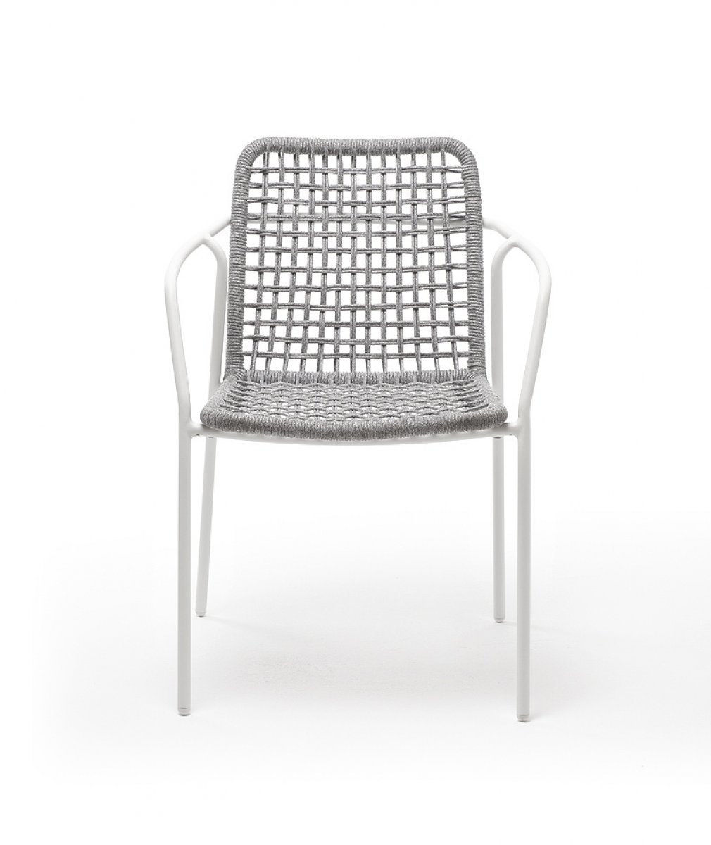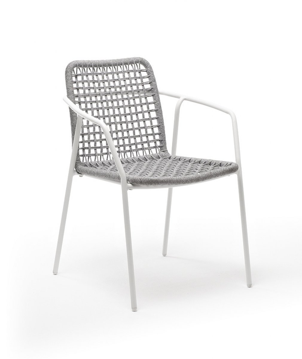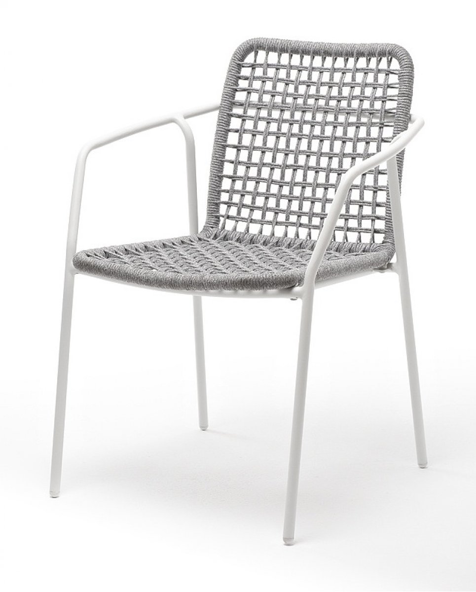 Тунис стул плетенный из роупа, каркас алюминий белый, роуп светло-серый