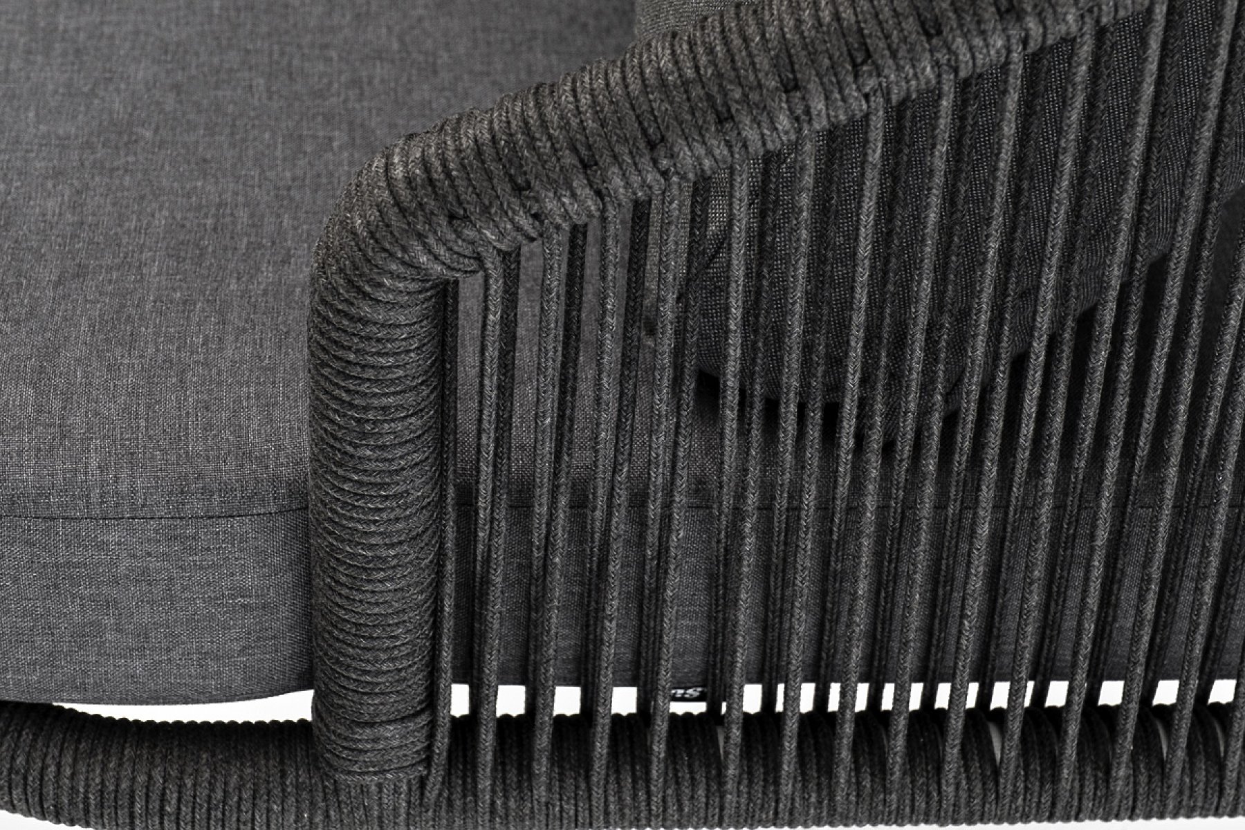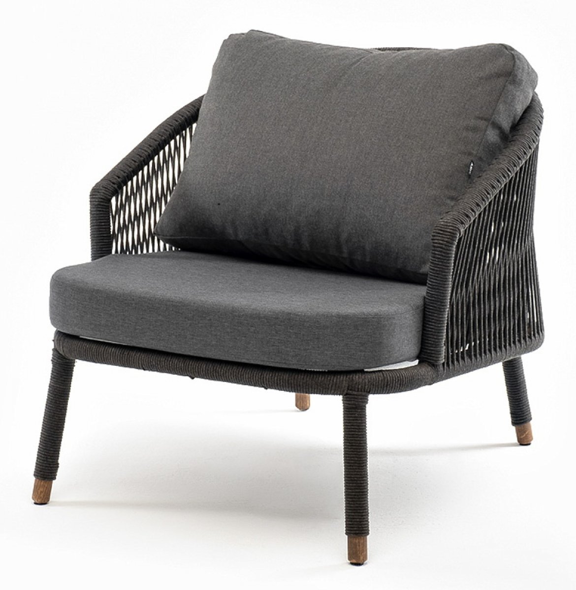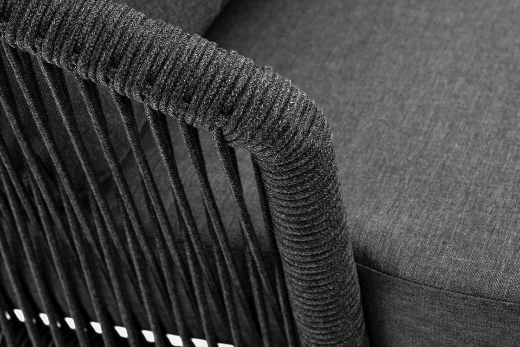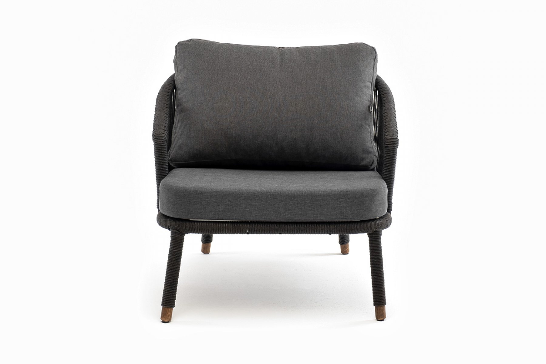 Верона кресло плетеное из роупа, каркас алюминий темно-серый (RAL7024) муар, роуп темно-серый круглый, ткань темно-серая 027