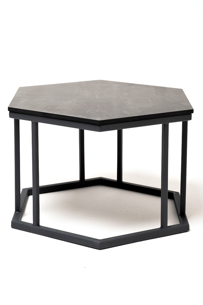 Женева интерьерный стол из HPL шестиугольный, D50, H35, цвет серый гранит