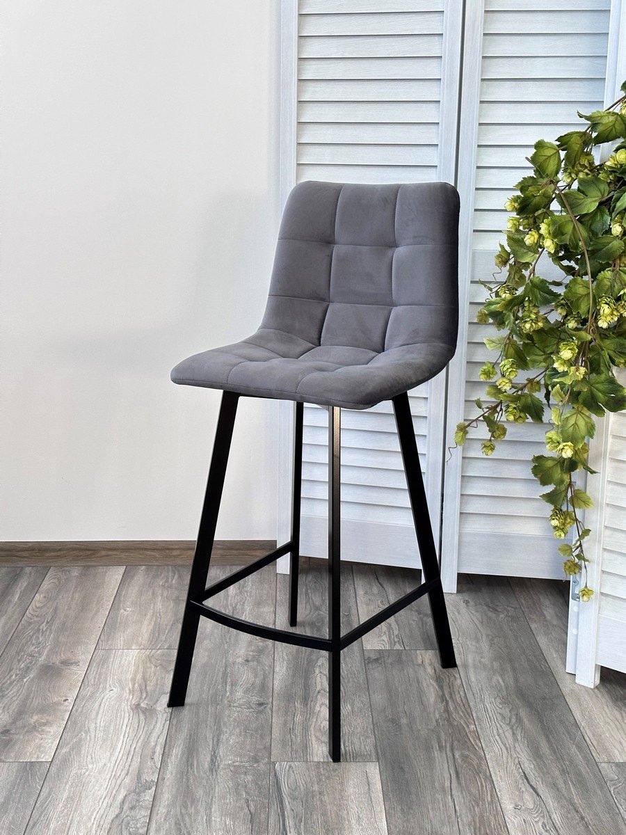 Полубарный стул CHILLI-QB SQUARE серый #27, велюр/ черный каркас (H=66cm) М-City